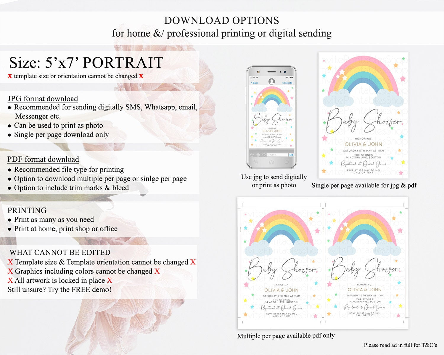 • Template size & orientation cannot be changed. Please use the demo link to confirm this product suits your needs.