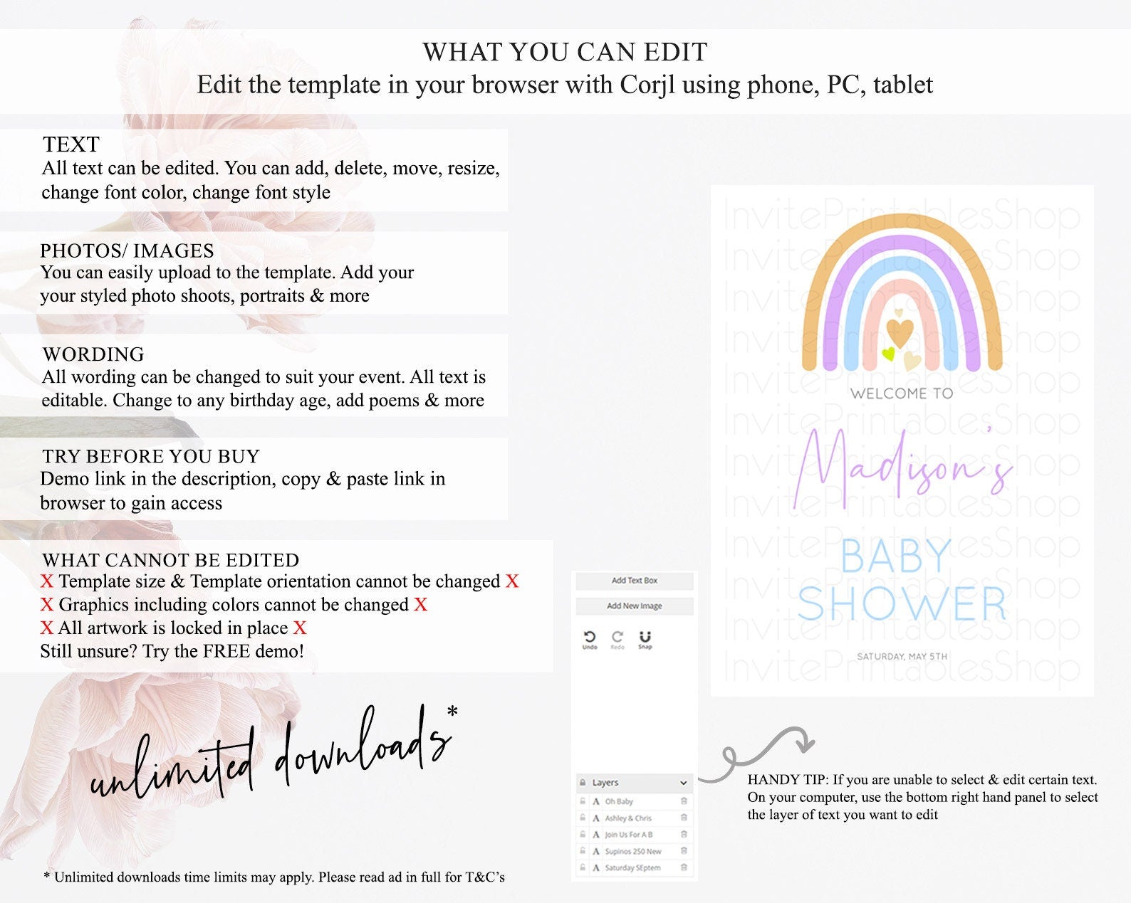 Pastel Rainbow Baby Shower Welcome Sign Boho Rainbow Welcome Board Rainbow Welcome Sign Pastel Welcome Decor Rainbow Welcome Sign D10238