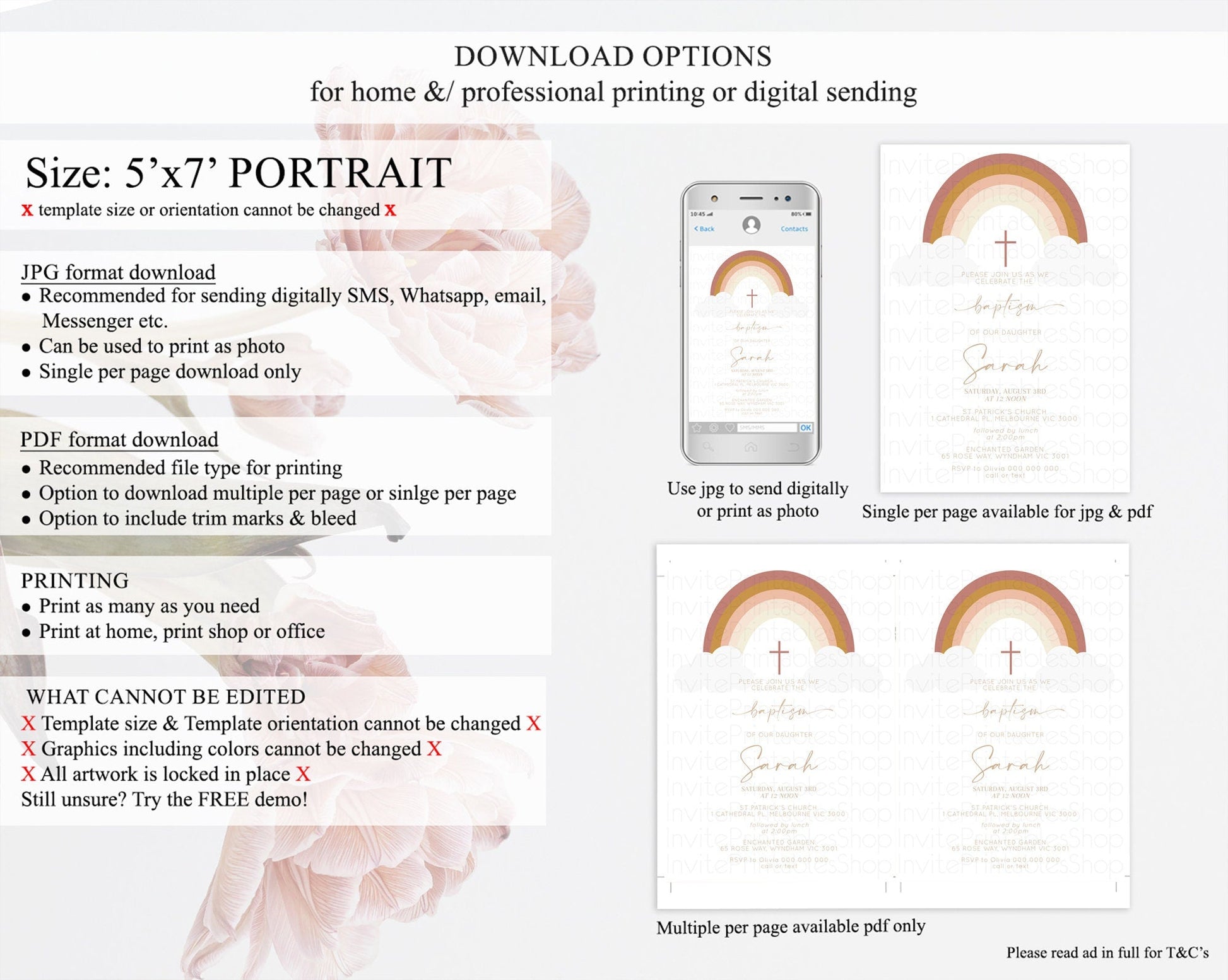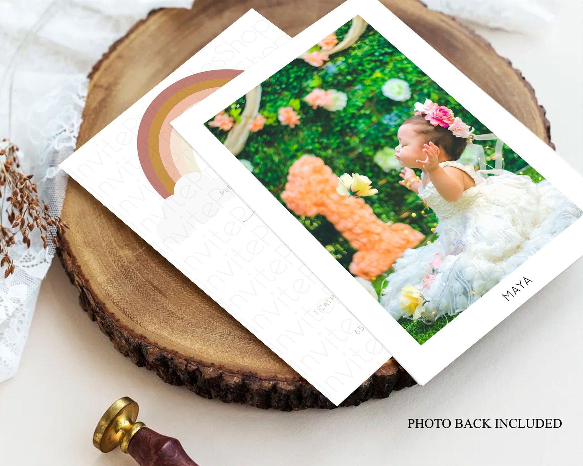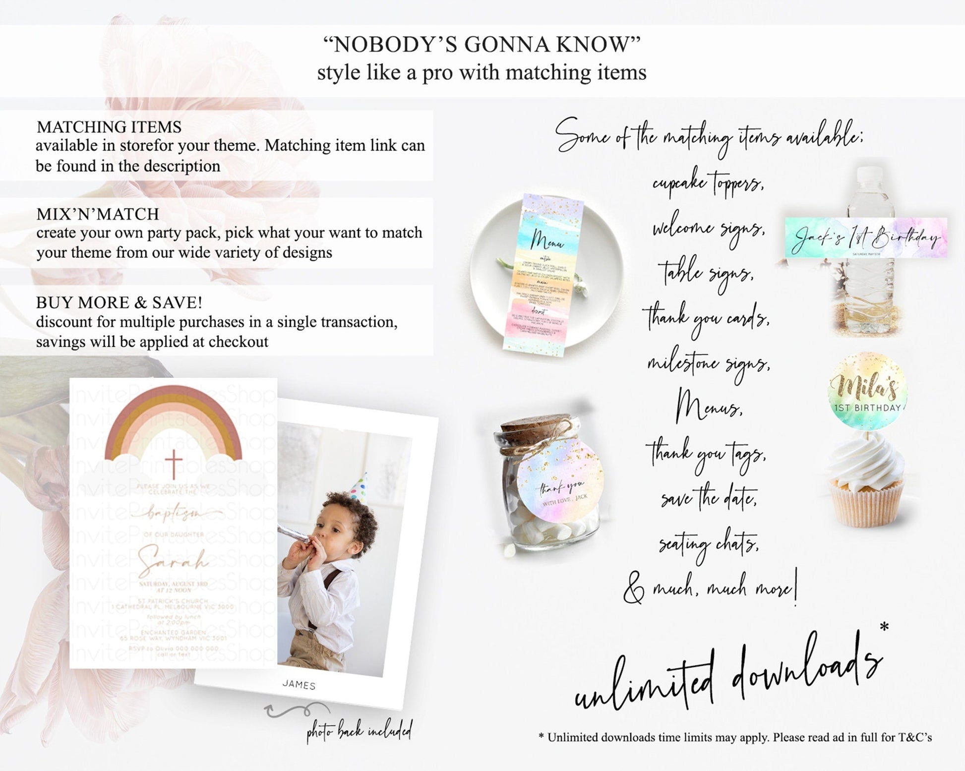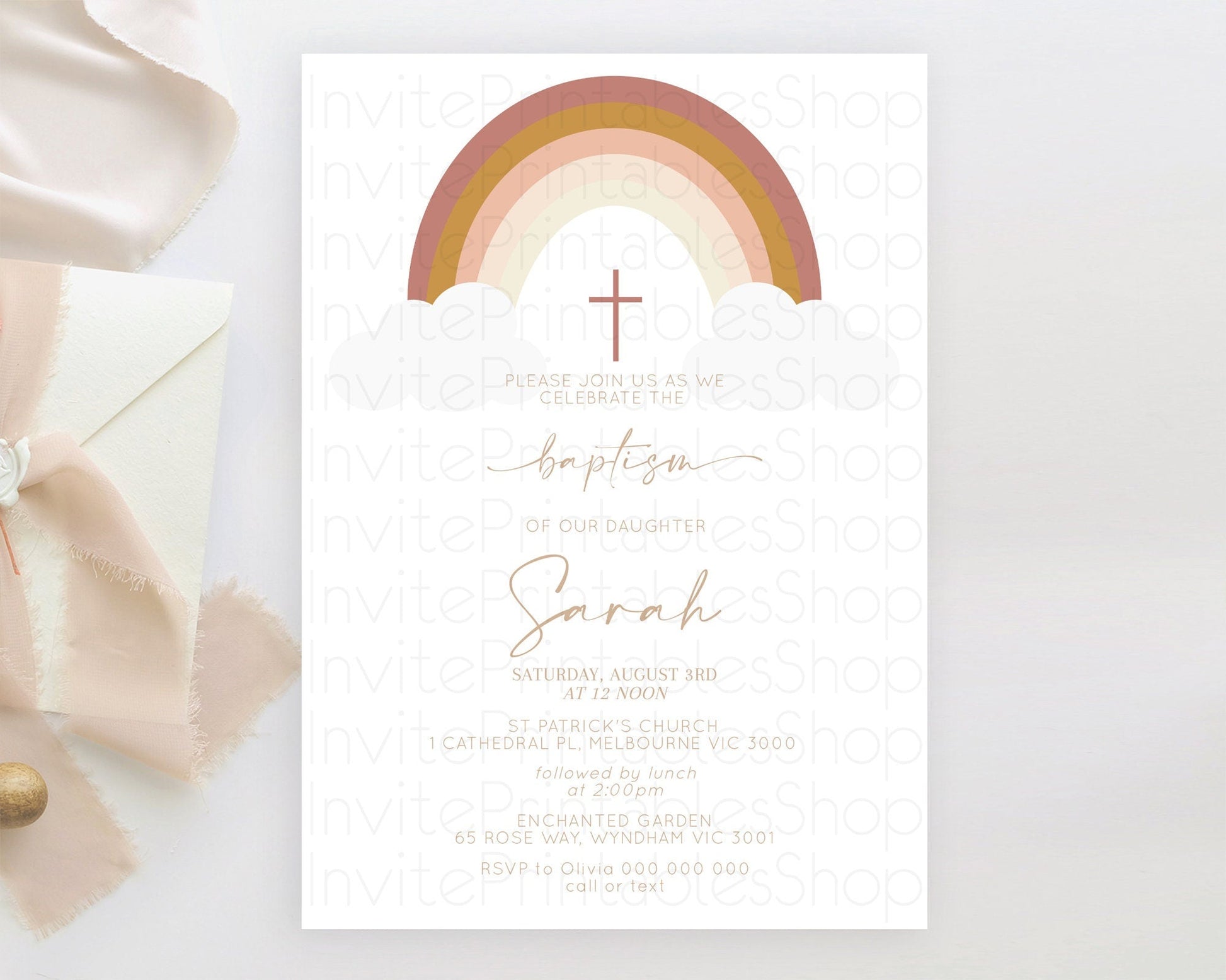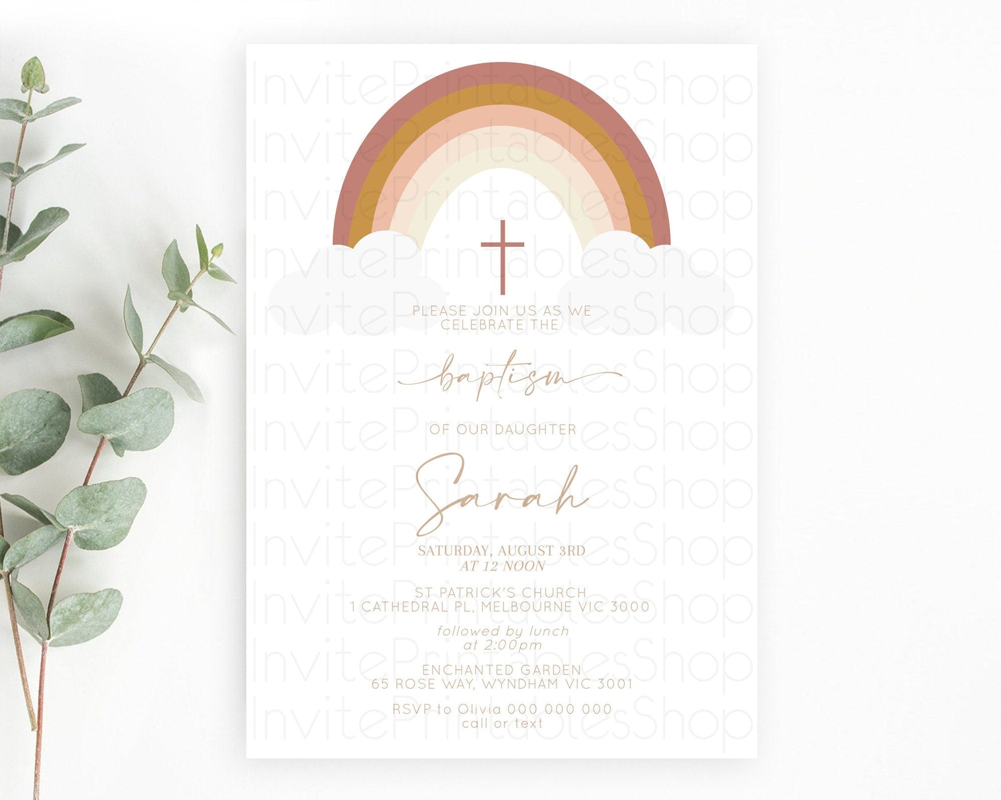 Pastel Rainbow Baptism Invitation Boho Rainbow Baptism 1st Birthday Invitation Rainbow Pastel Watercolor Christening Invitation D10122