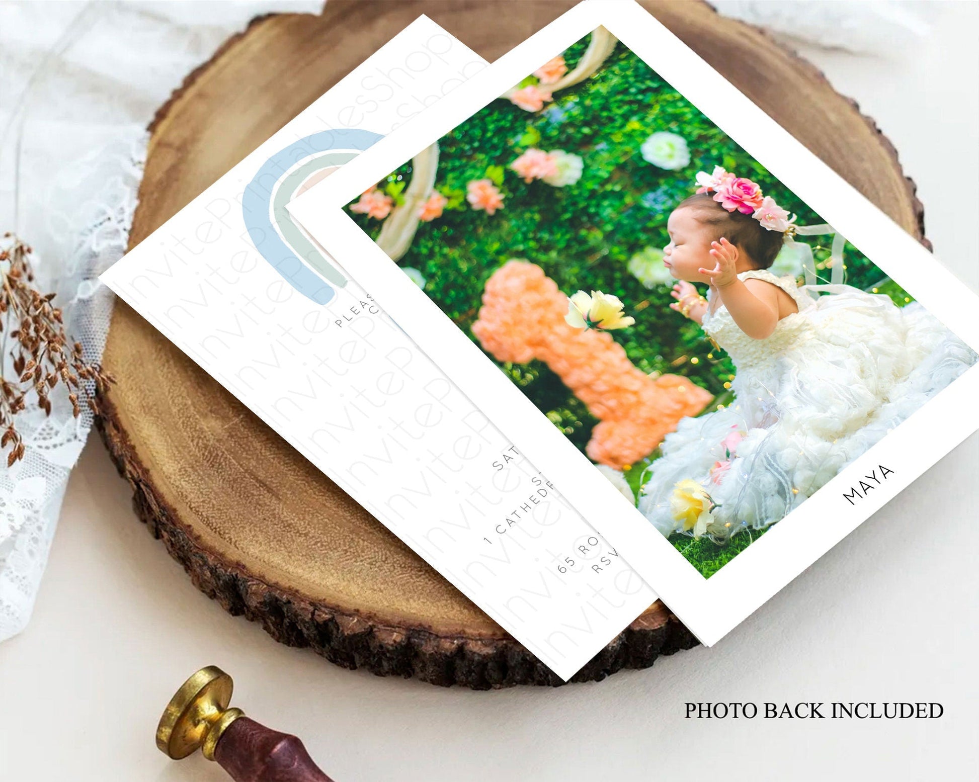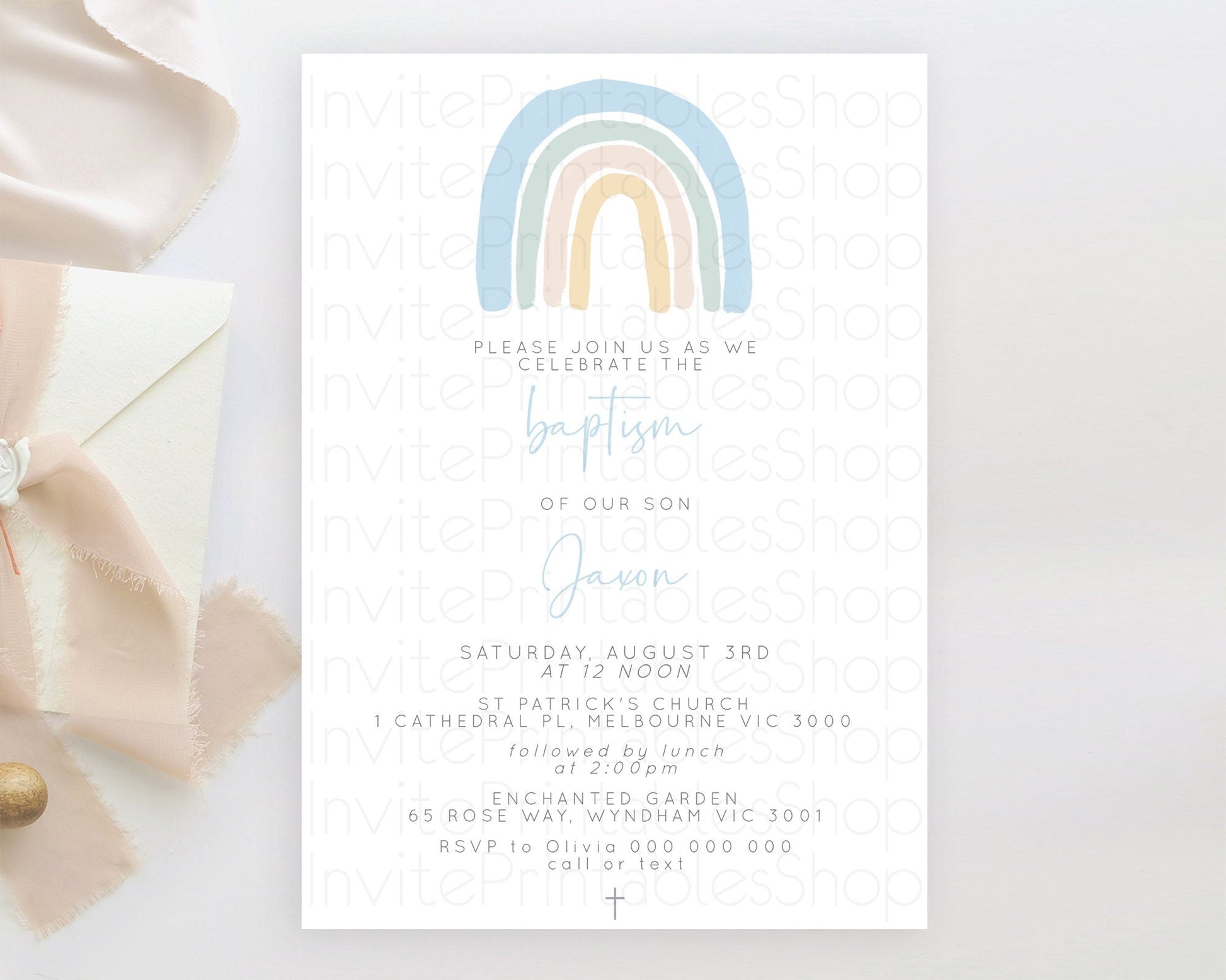 Pastel Rainbow Baptism Invitation Boho Rainbow Baptism 1st Birthday Invitation Rainbow Pastel Watercolor Christening Invitation D10200