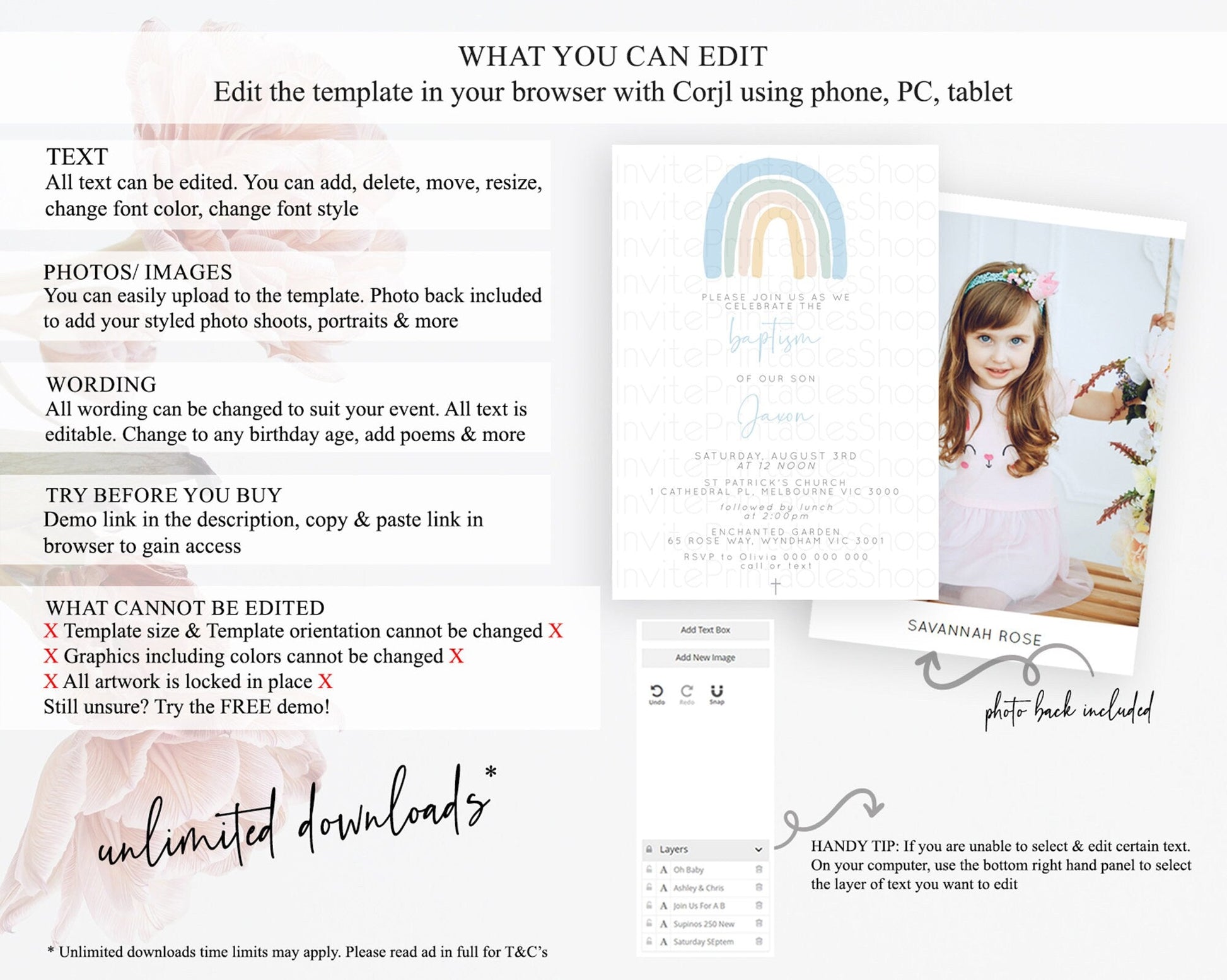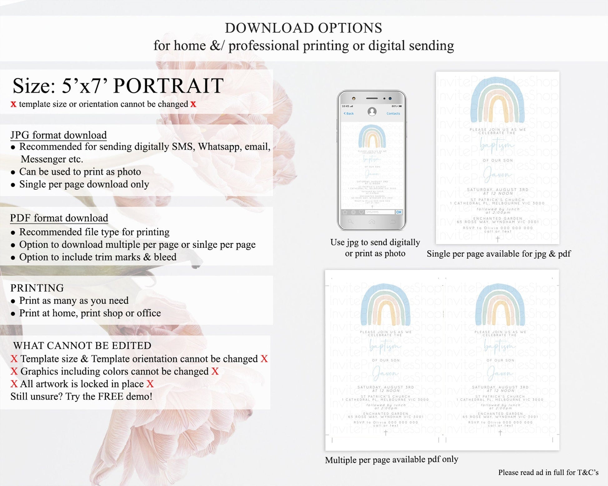 • Template size & orientation cannot be changed. Please use the demo link to confirm this product suits your needs.