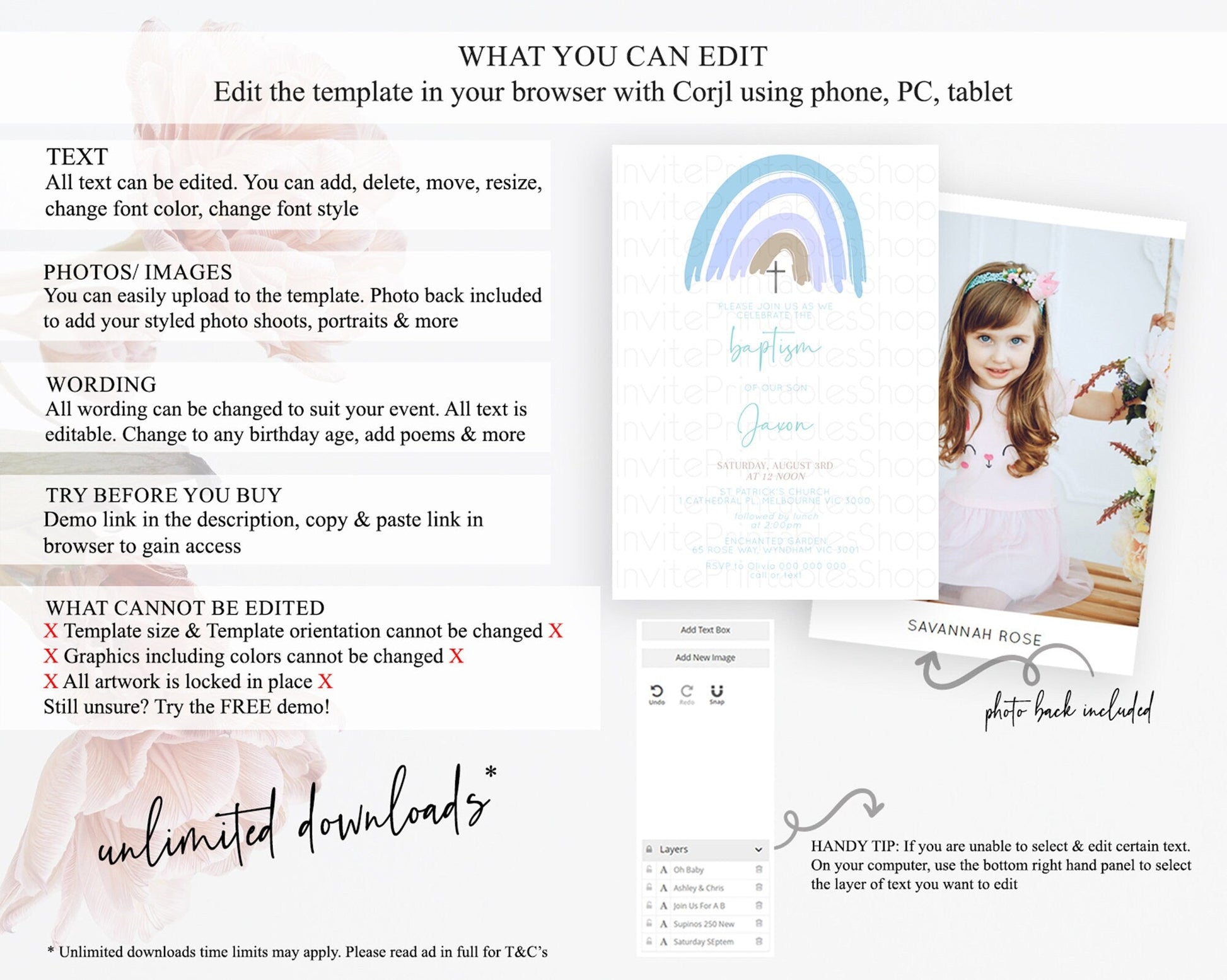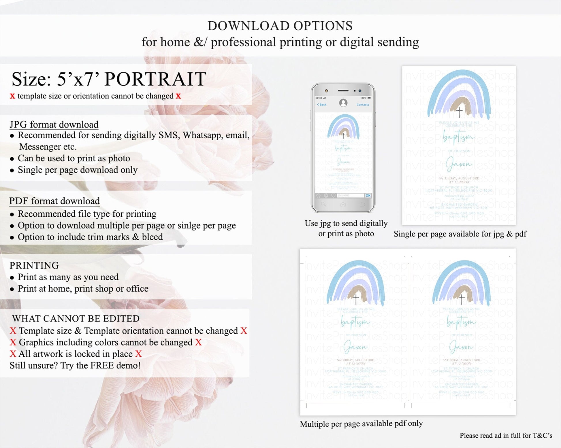 • Template size & orientation cannot be changed. Please use the demo link to confirm this product suits your needs.