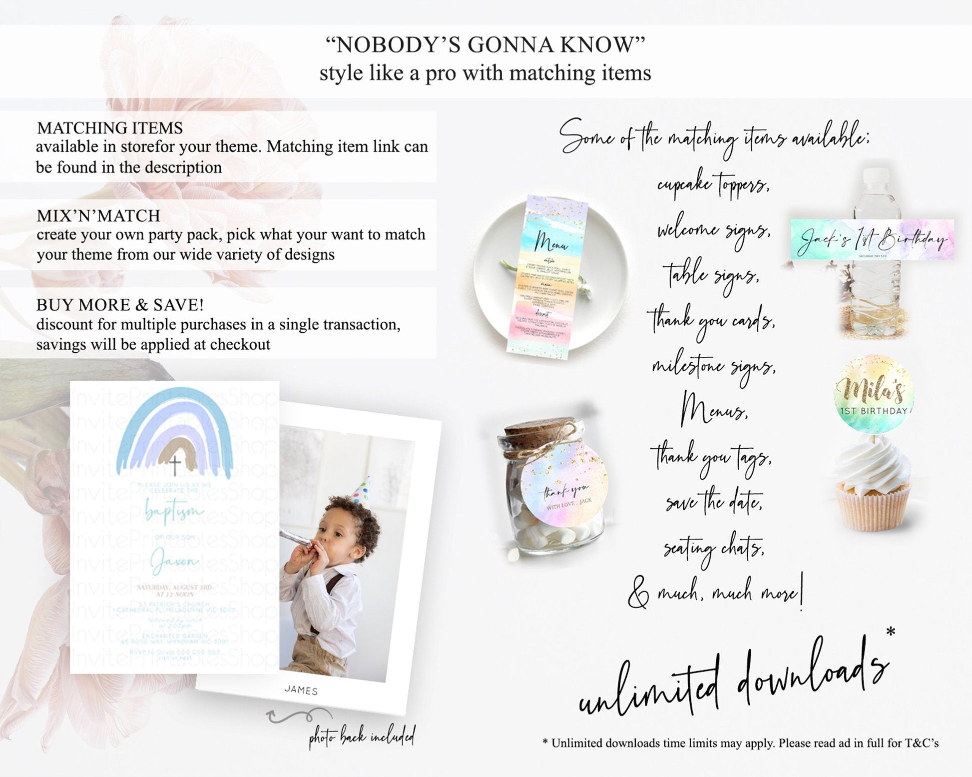 Pastel Rainbow Baptism Invitation Boho Rainbow Baptism 1st Birthday Invitation Rainbow Pastel Watercolor Christening Invitation D10352