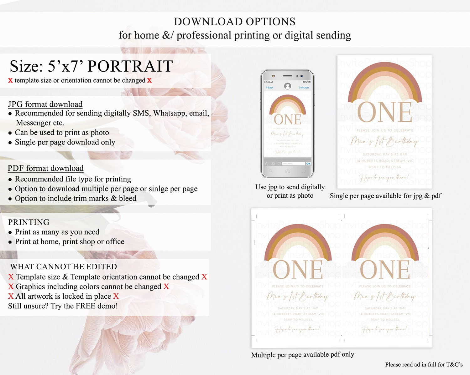Pastel Rainbow Birthday Invitation Pastel Rainbow Invitation Rainbow Invitation Pastel Invitation Boho Rainbow 1st First Birthday D10122