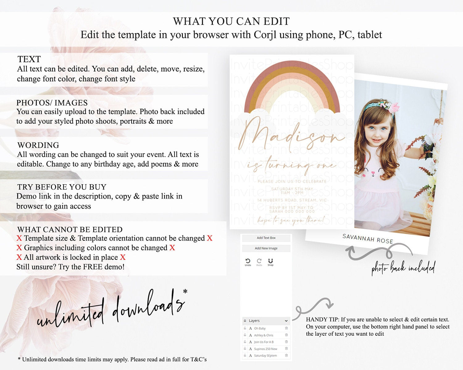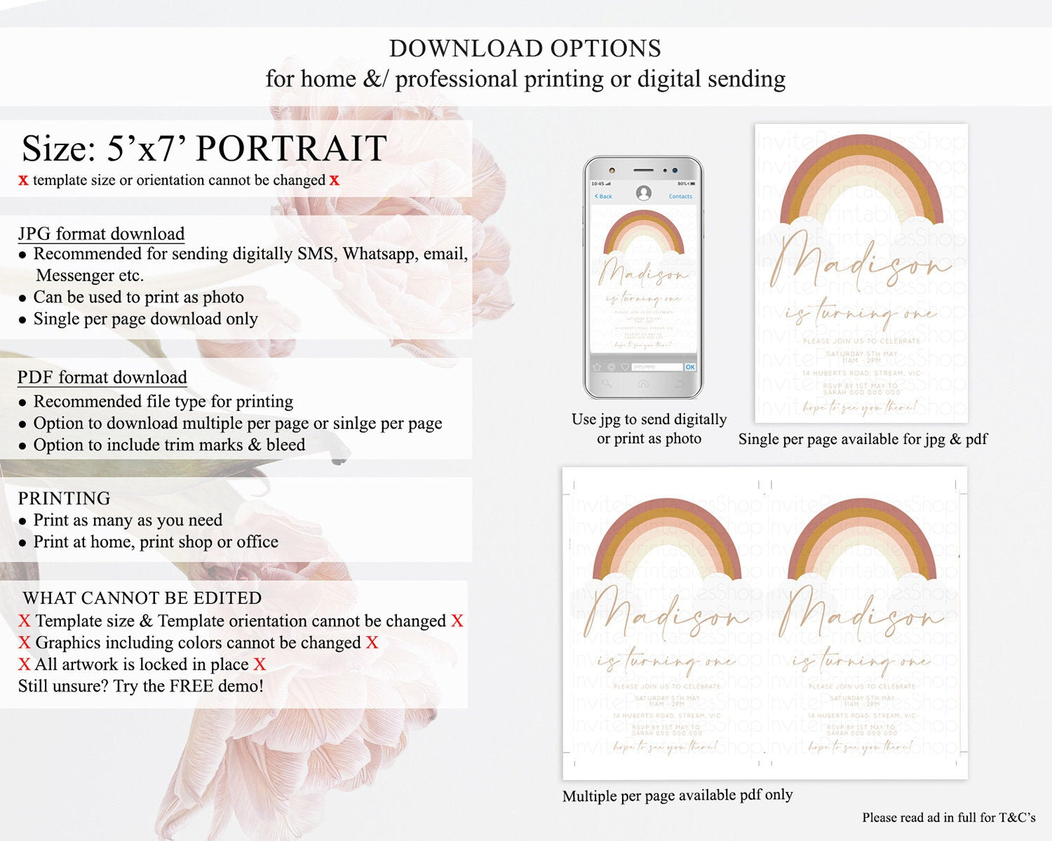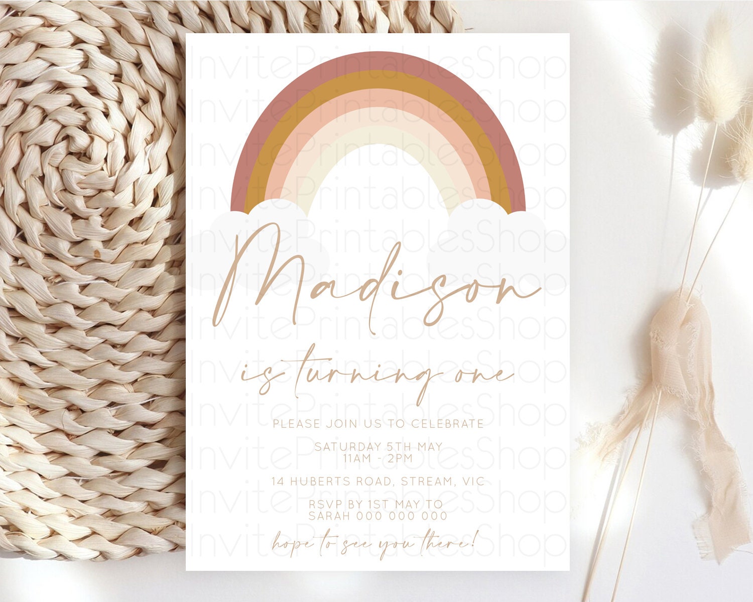 Pastel Rainbow Birthday Invitation Pastel Rainbow Invitation Rainbow Invitation Pastel Invitation Boho Rainbow 1st First Birthday D10122