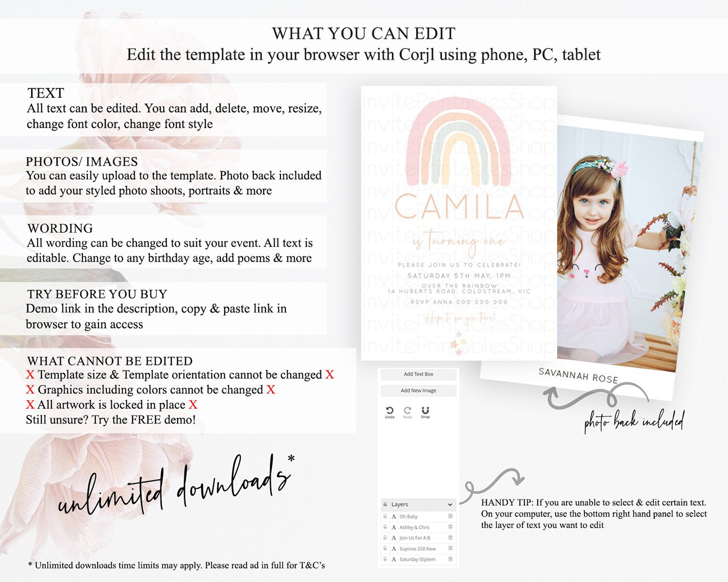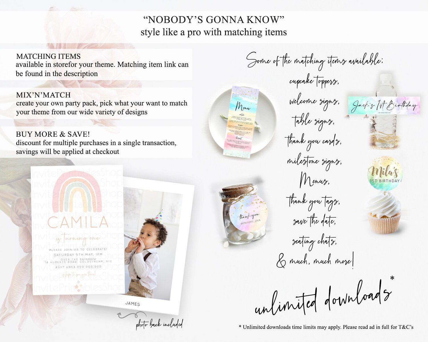 Pastel Rainbow Birthday Invitation Pastel Rainbow Invitation Rainbow Invitation Pastel Invitation Boho Rainbow 1st First Birthday D10162