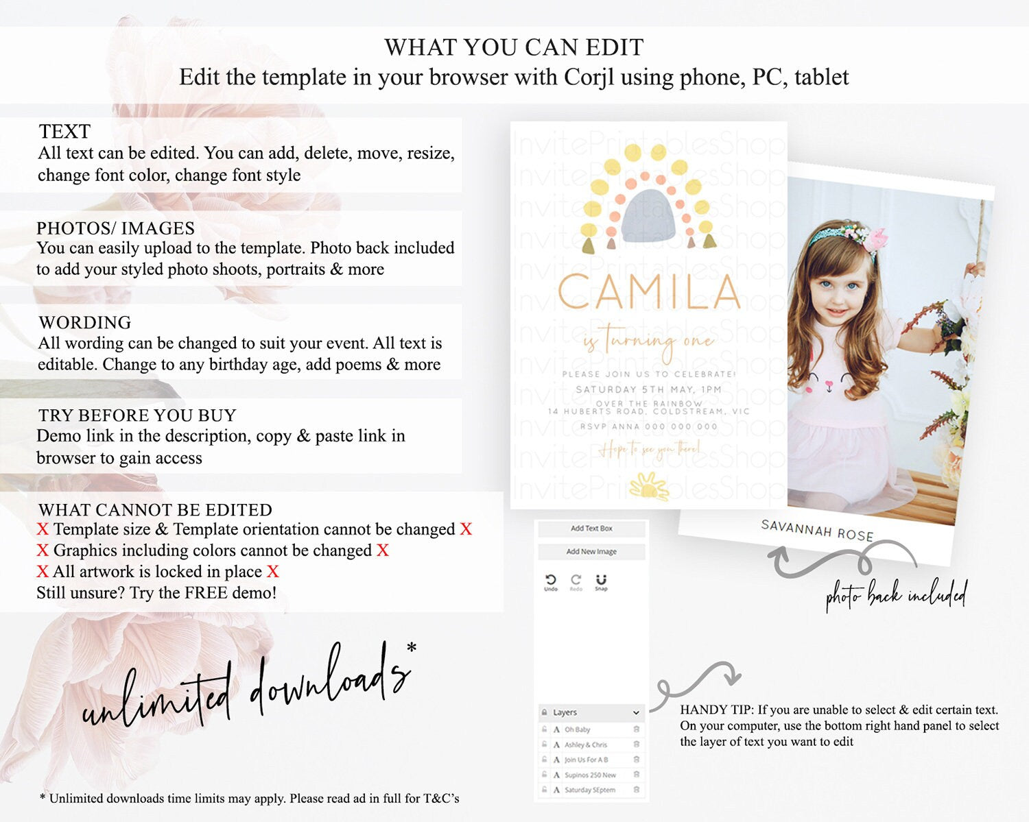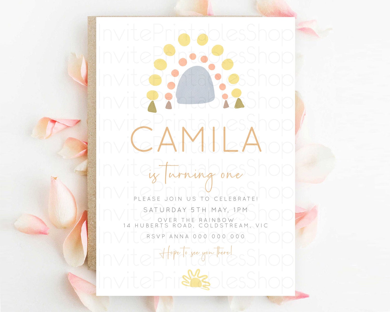 Pastel Rainbow Birthday Invitation Pastel Rainbow Invitation Rainbow Invitation Pastel Invitation Boho Rainbow 1st First Birthday D10688