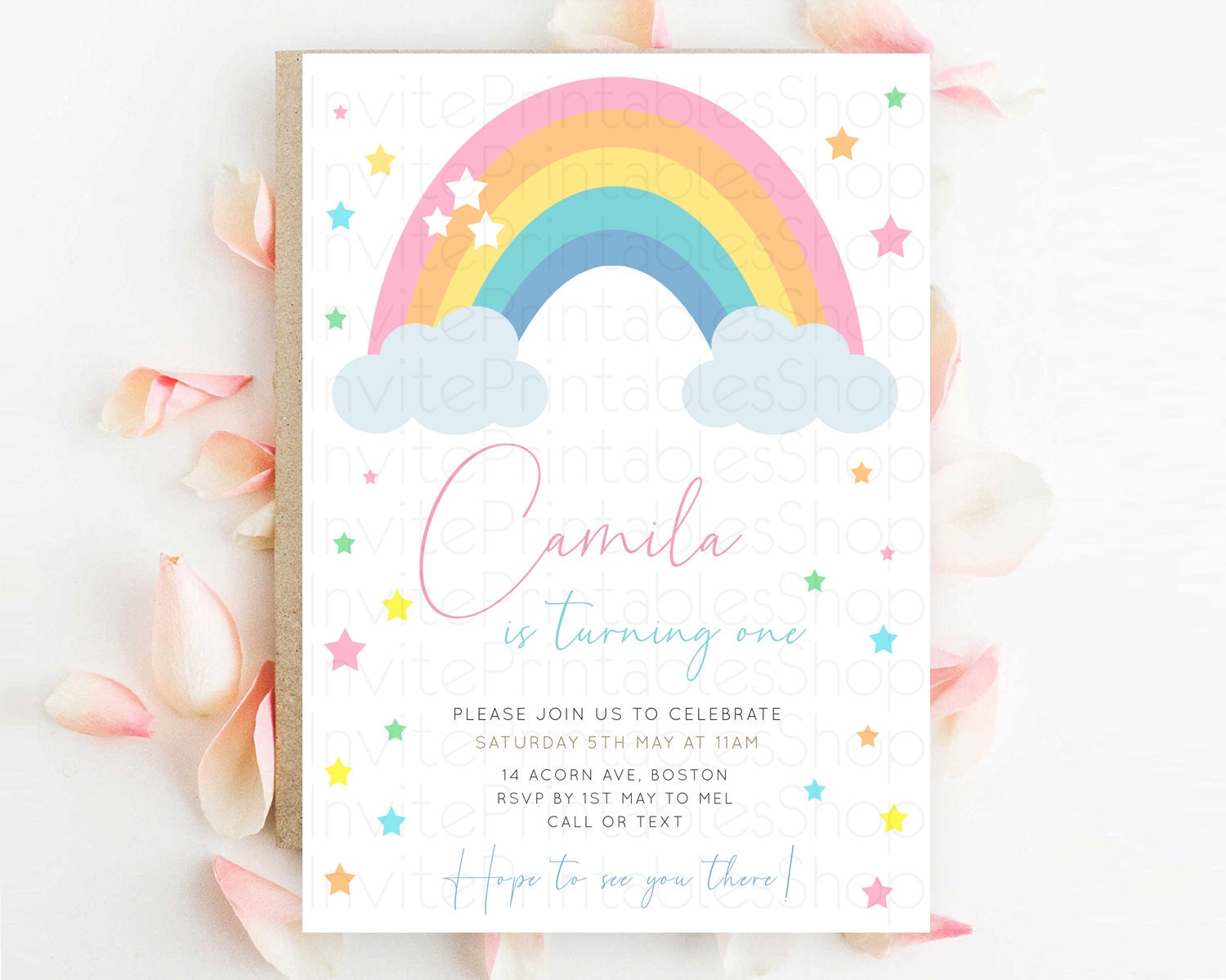 Pastel Rainbow Birthday Invitation Pastel Rainbow Invitation Rainbow Invitation Pastel Invitation Boho Rainbow 1st First Birthday D11023