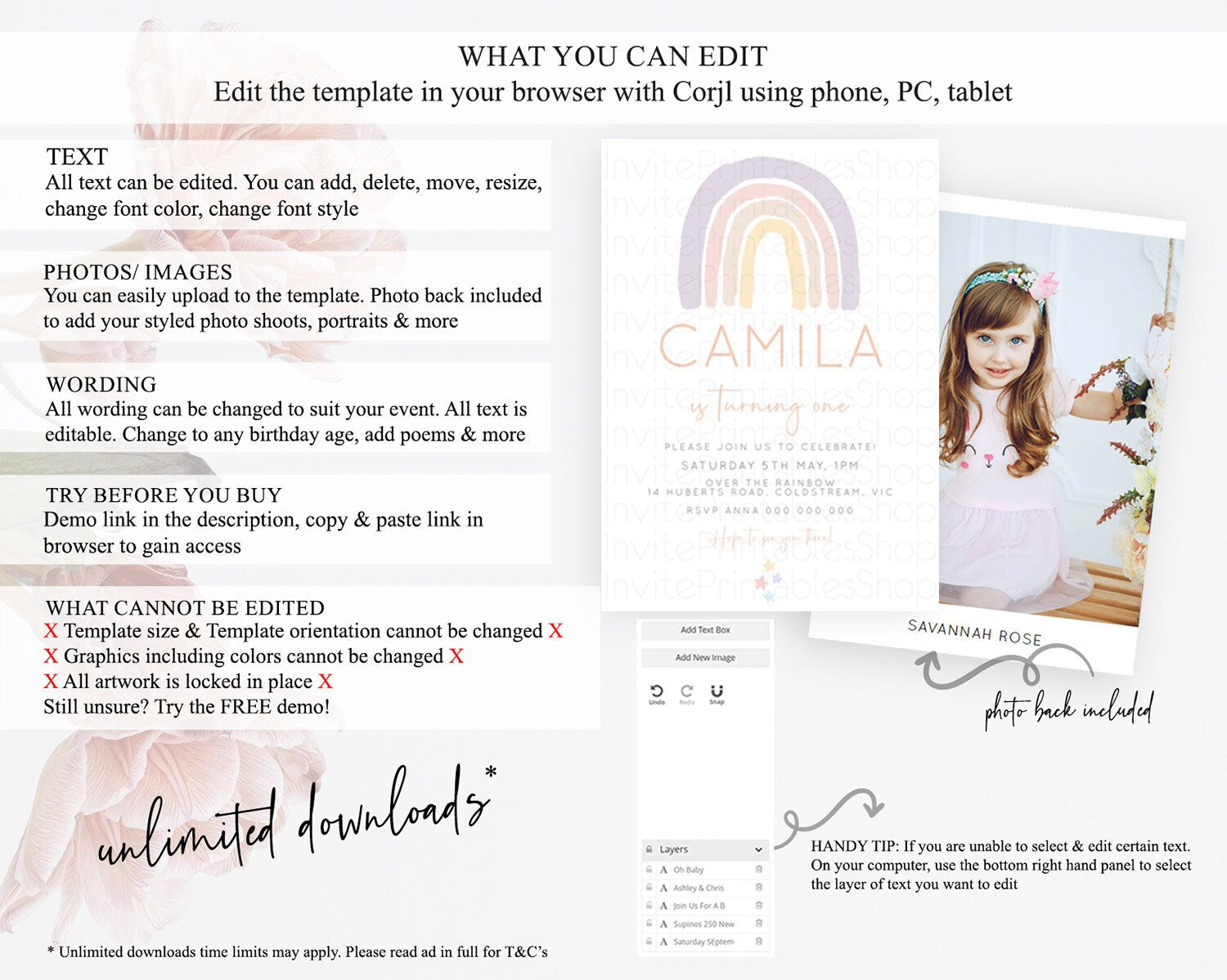 Pastel Rainbow Birthday Invitation Pastel Rainbow Invitation Rainbow Invitation Pastel Invitation Boho Rainbow 1st First Birthday D23096