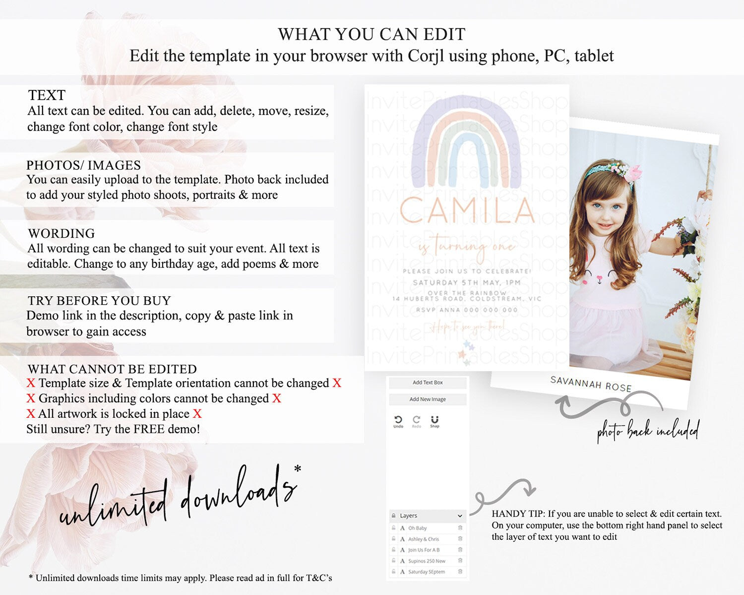 • Template size & orientation cannot be changed. Please use the demo link to confirm this product suits your needs.