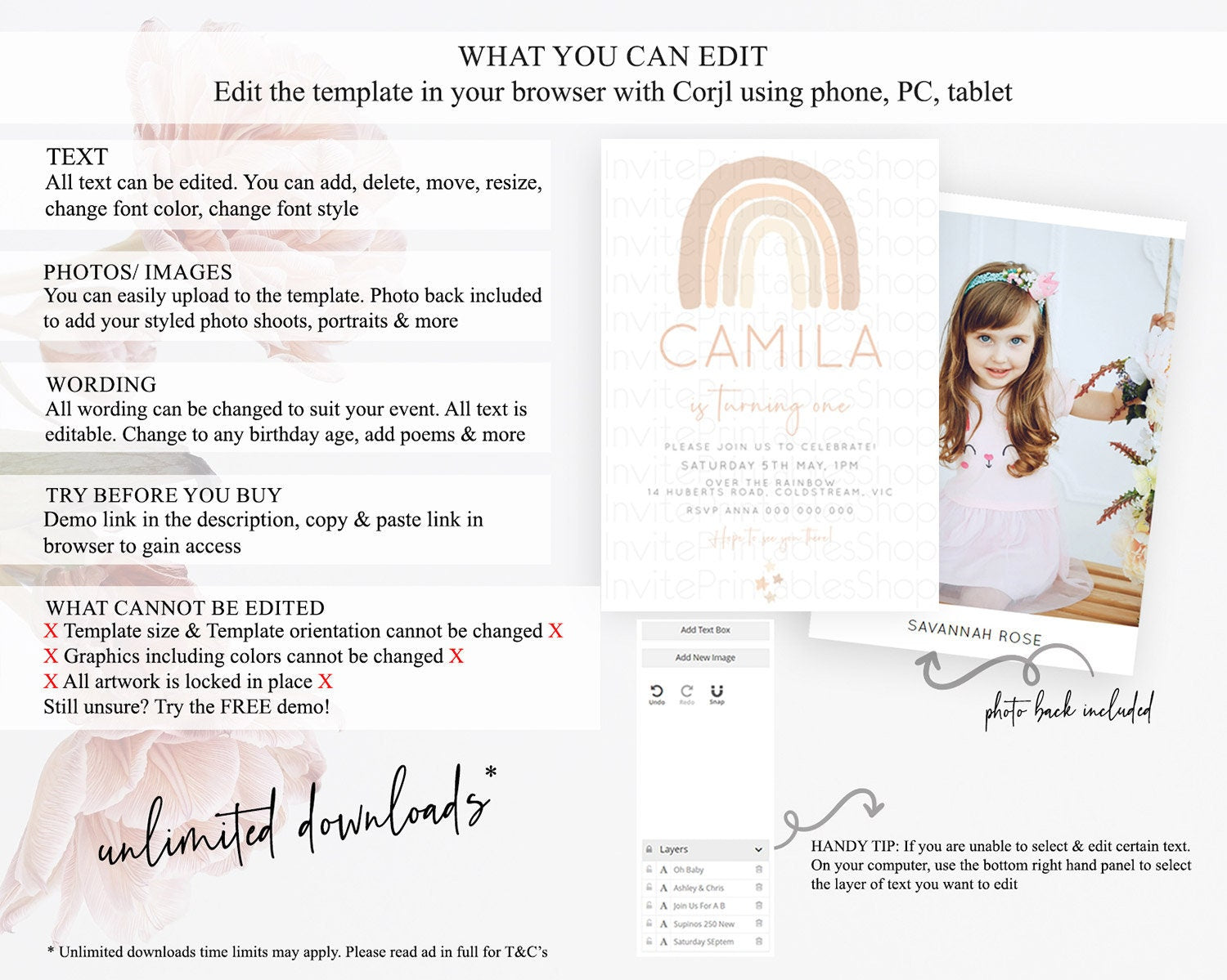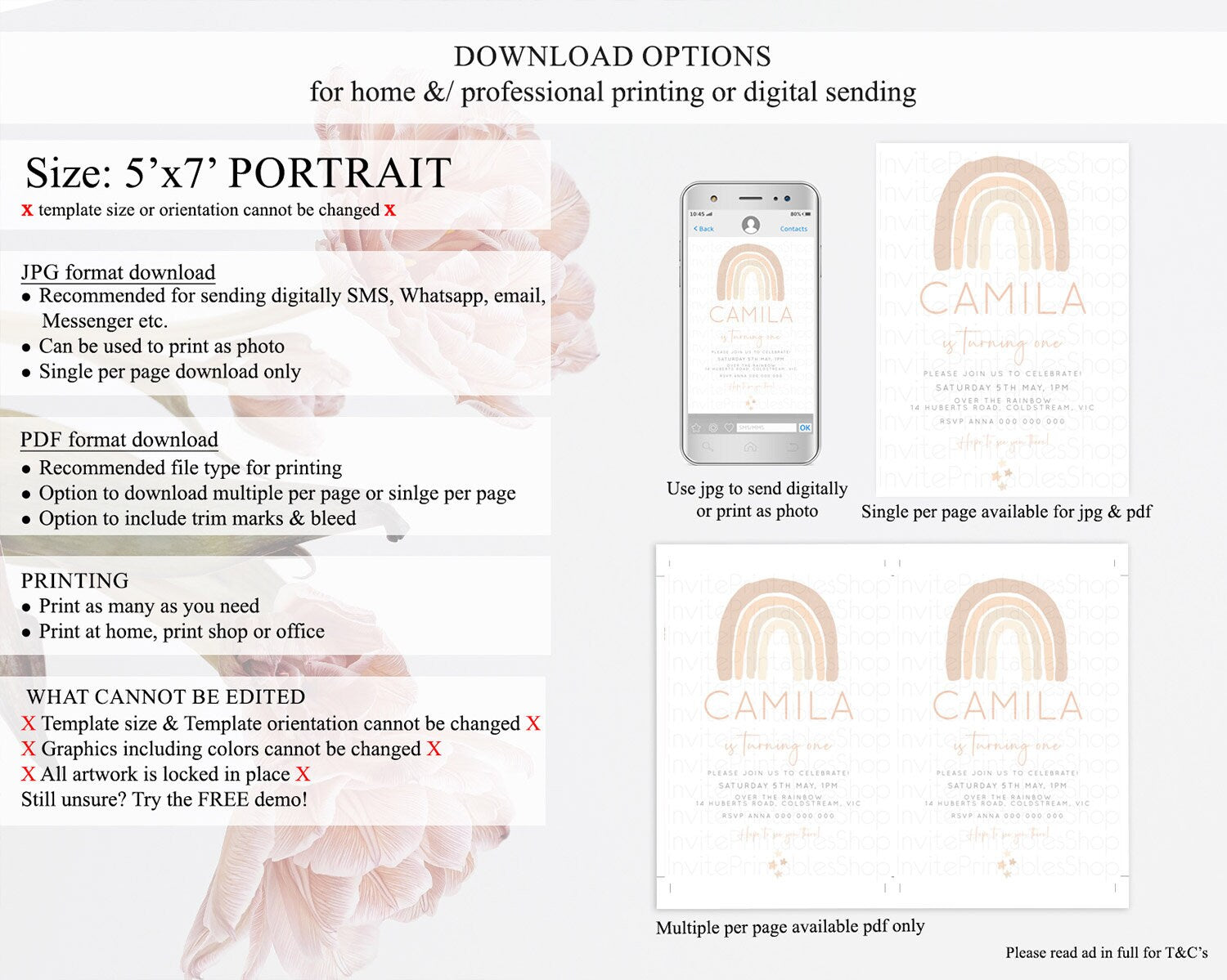 Pastel Rainbow Birthday Invitation Pastel Rainbow Invitation Rainbow Invitation Pastel Invitation Boho Rainbow 1st First Birthday D23104