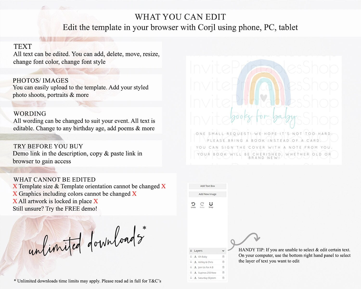 Pastel Rainbow Books For Baby Card Boho Rainbow Book Insert Boho Rainbow Book Card Pastel Watercolor Baby Shower Book Poem Request D10214