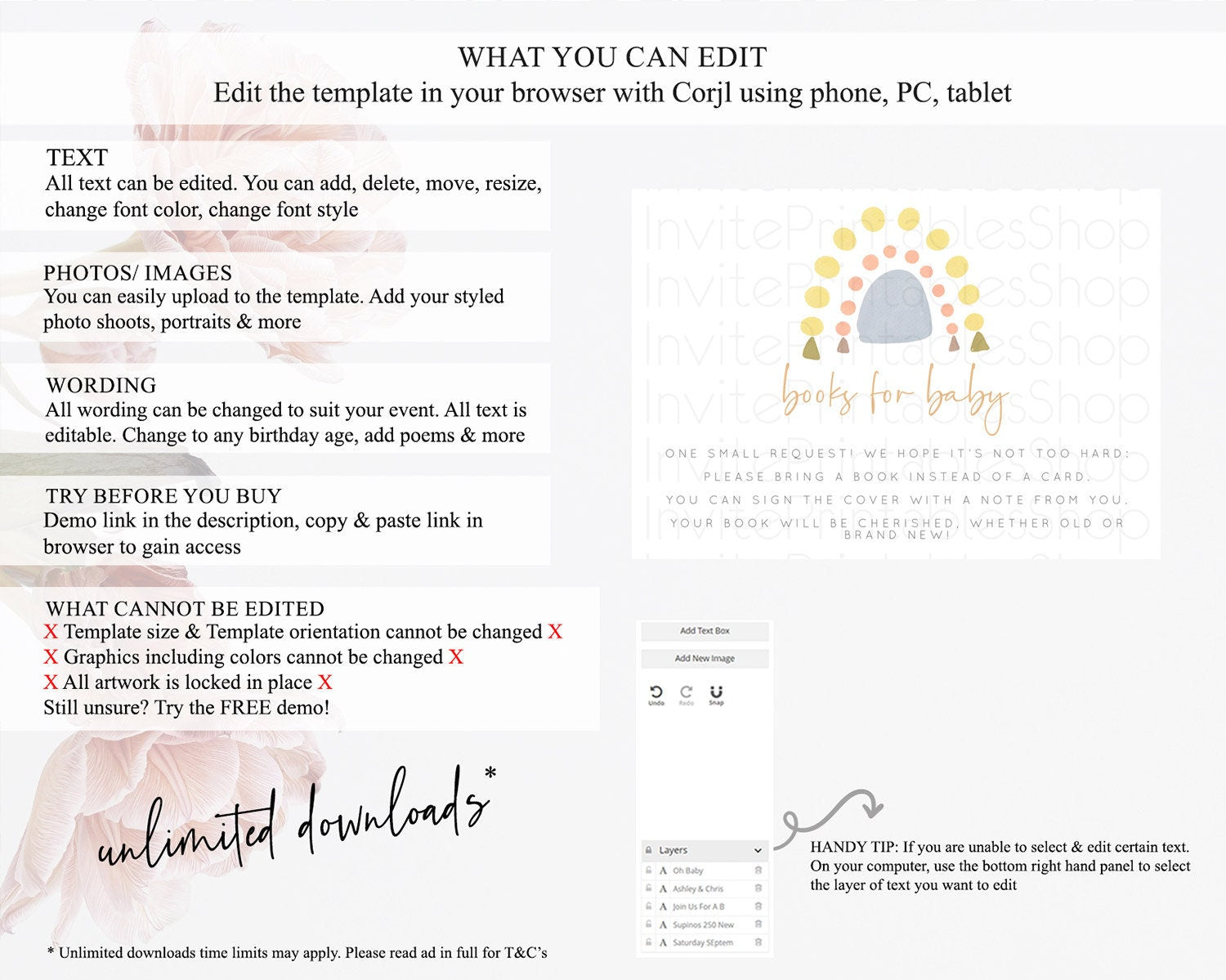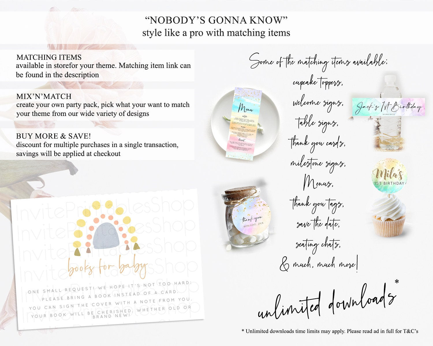 Pastel Rainbow Books For Baby Card Boho Rainbow Book Insert Boho Rainbow Book Card Pastel Watercolor Baby Shower Book Poem Request D10688