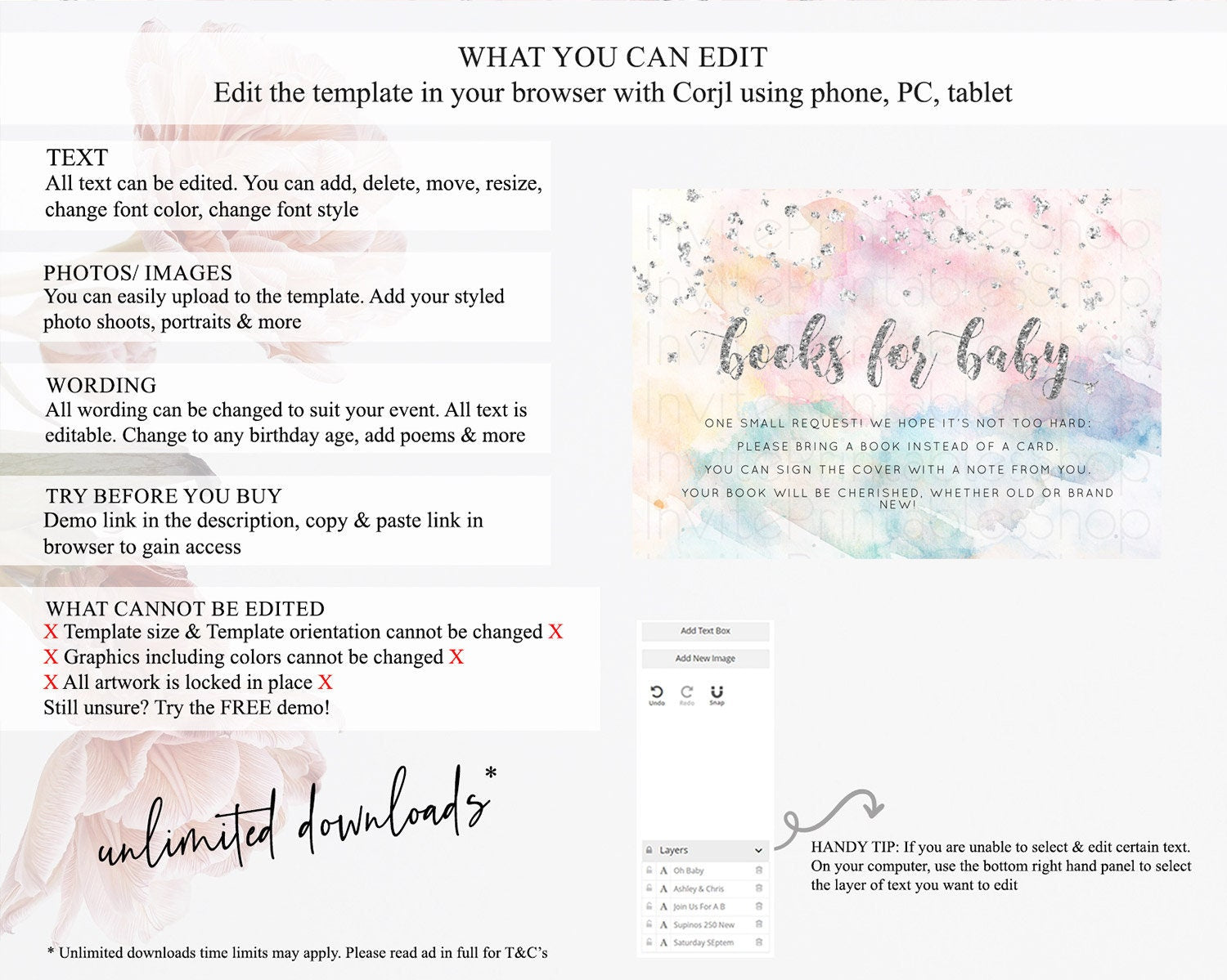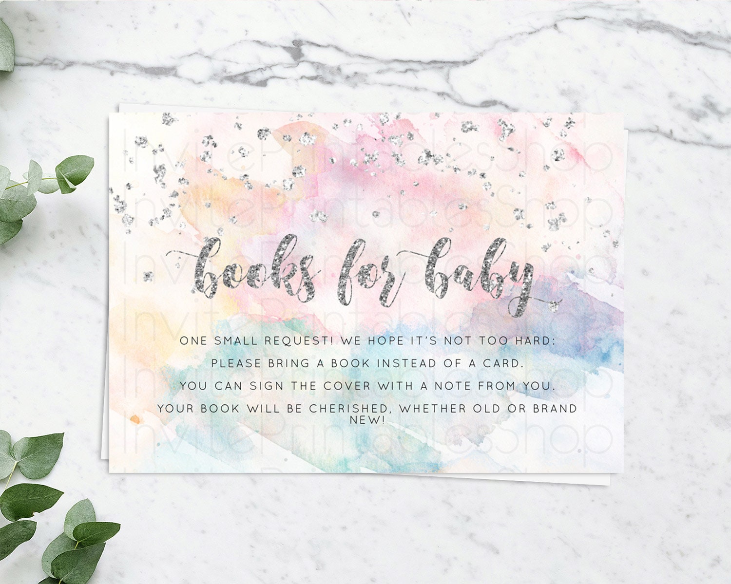 Pastel Rainbow Books For Baby Card Pastel Book Insert Pastel Colorful Book Card Confetti Watercolor Silver Guests Book Poem Request D10944