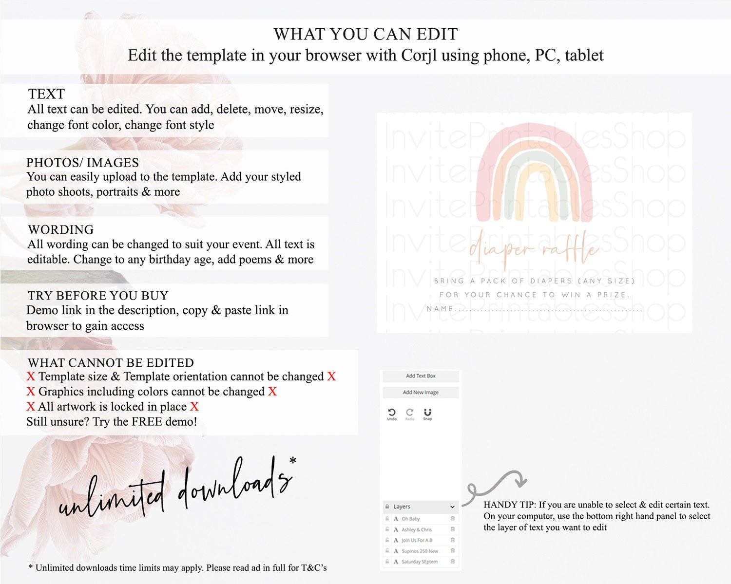 • After purchase, Corjl emails your editing link. Allow up to 15 minutes for delivery.