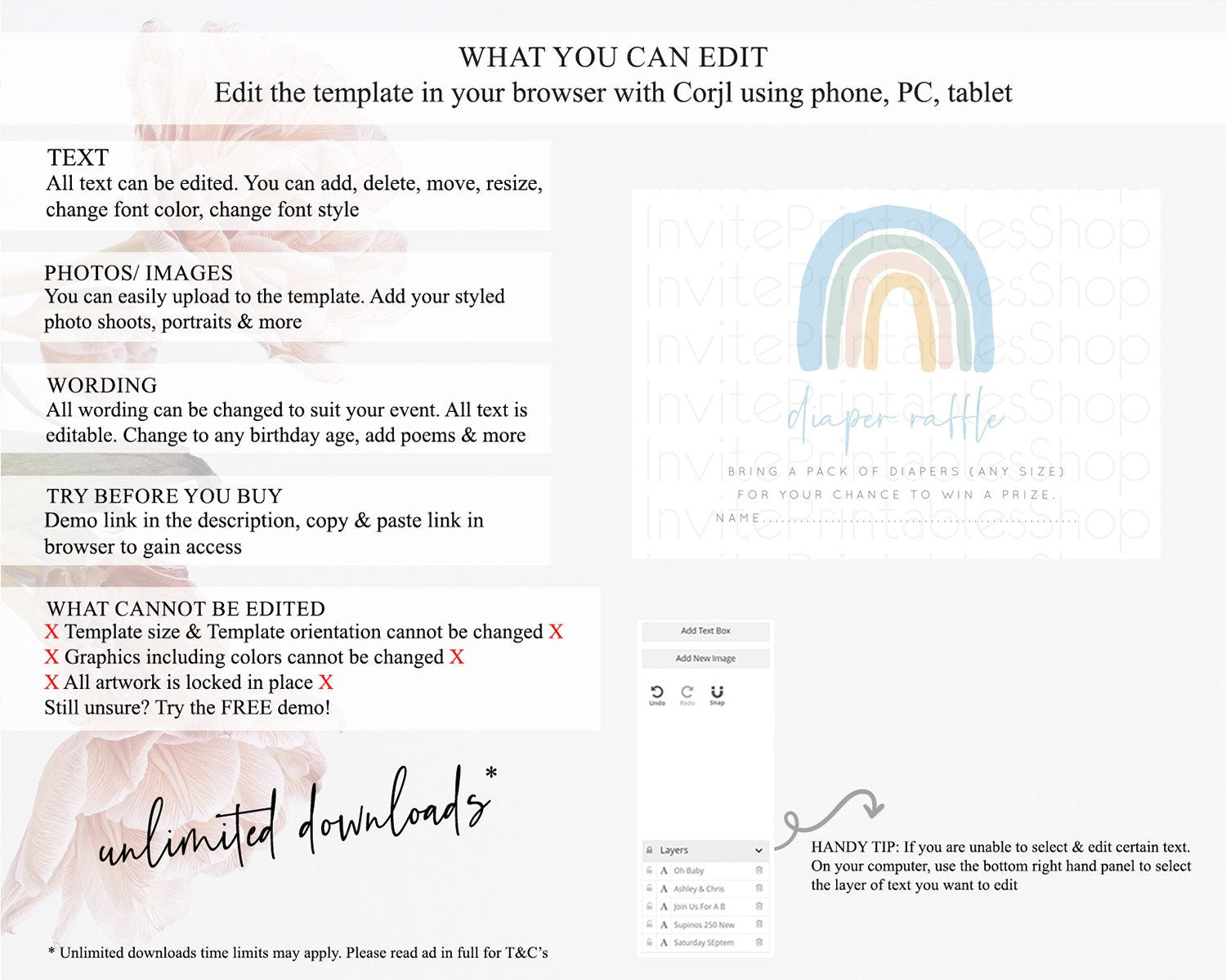 • After purchase, Corjl emails your editing link. Allow up to 15 minutes for delivery.