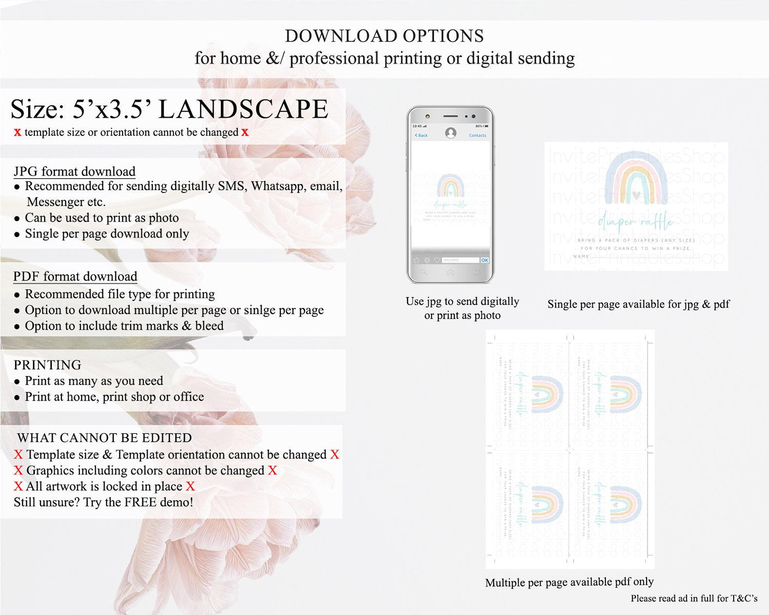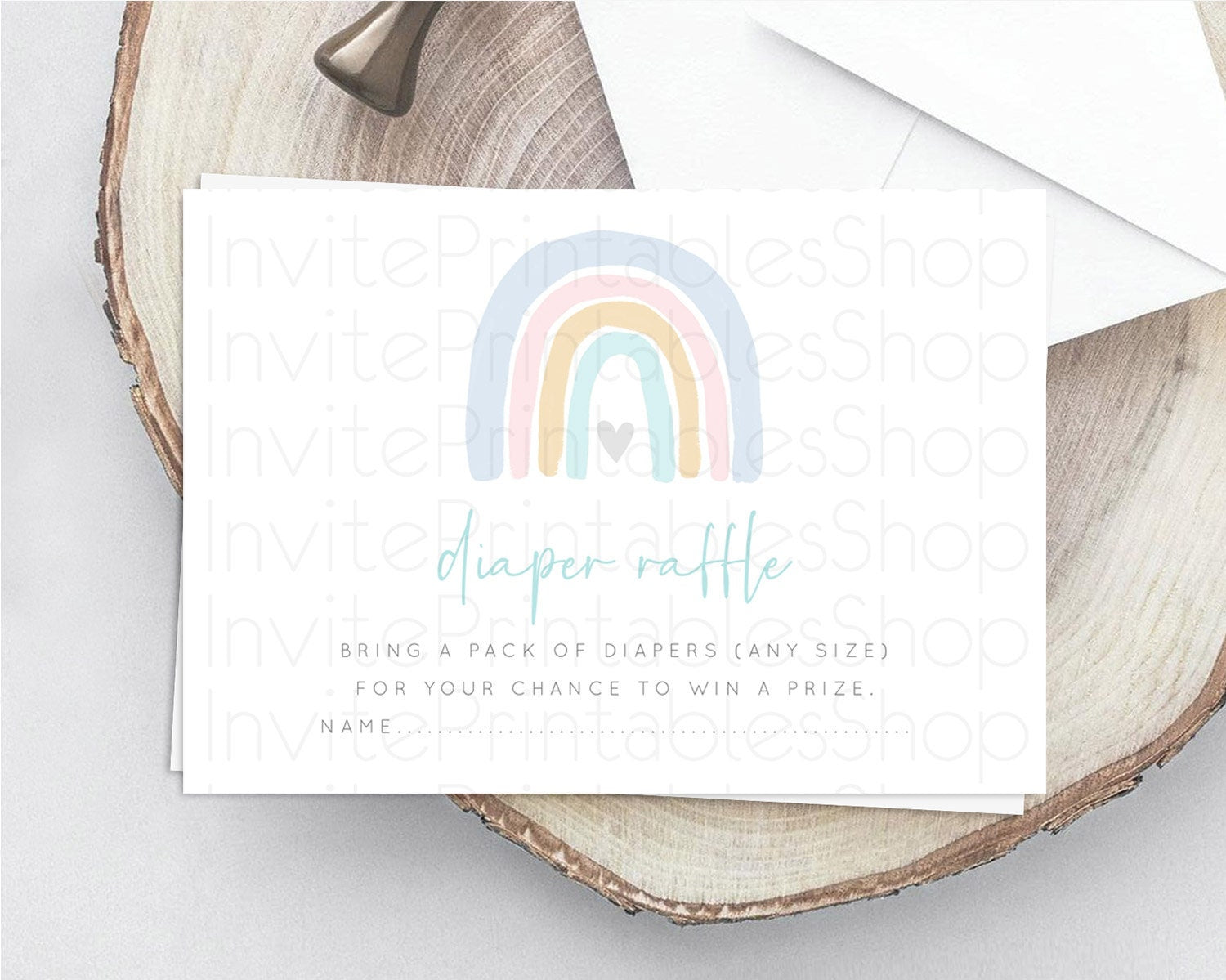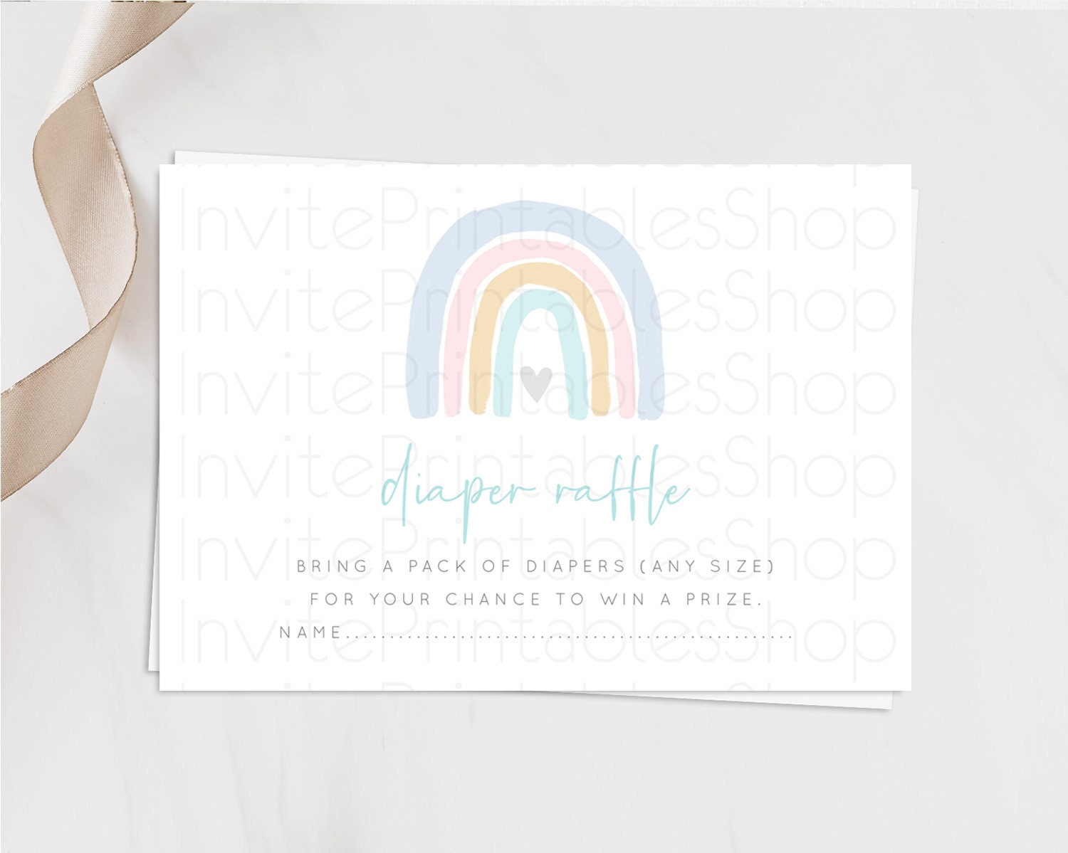 Pastel Rainbow Diaper Raffle Card Boho Rainbow Diaper Insert Boho Rainbow Diaper Ticket Pastel Watercolor Baby Shower Raffle Game D10214