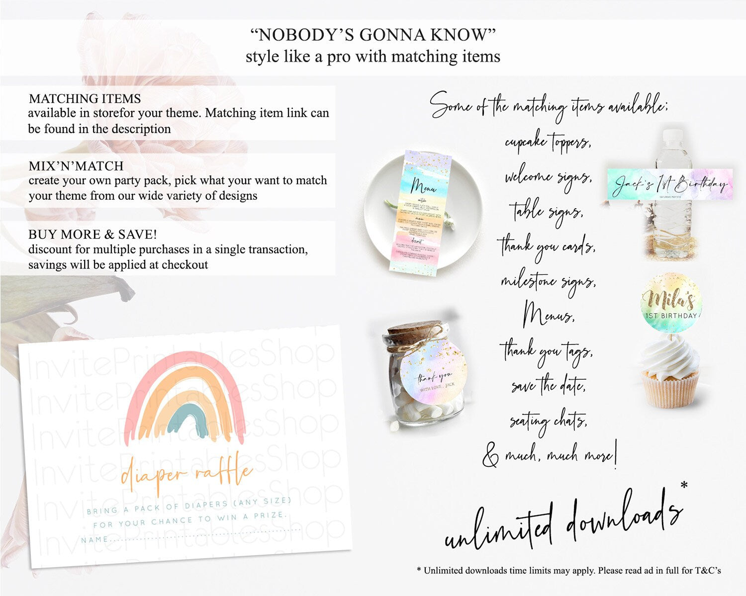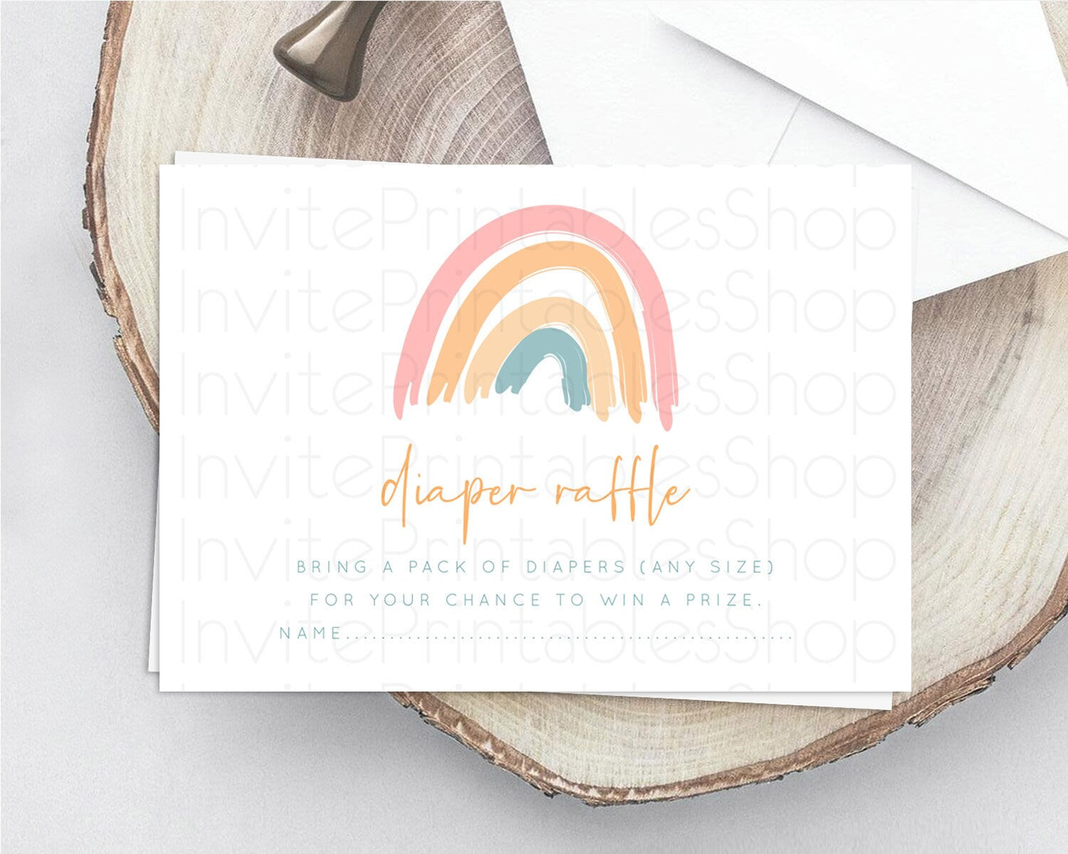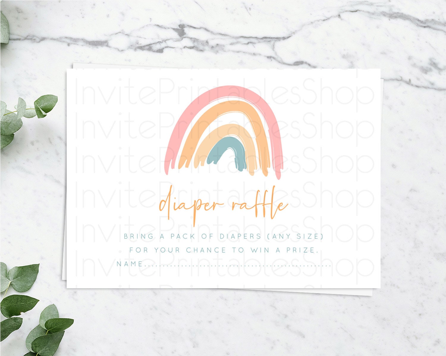 Pastel Rainbow Diaper Raffle Card Boho Rainbow Diaper Insert Boho Rainbow Diaper Ticket Pastel Watercolor Baby Shower Raffle Game D10351