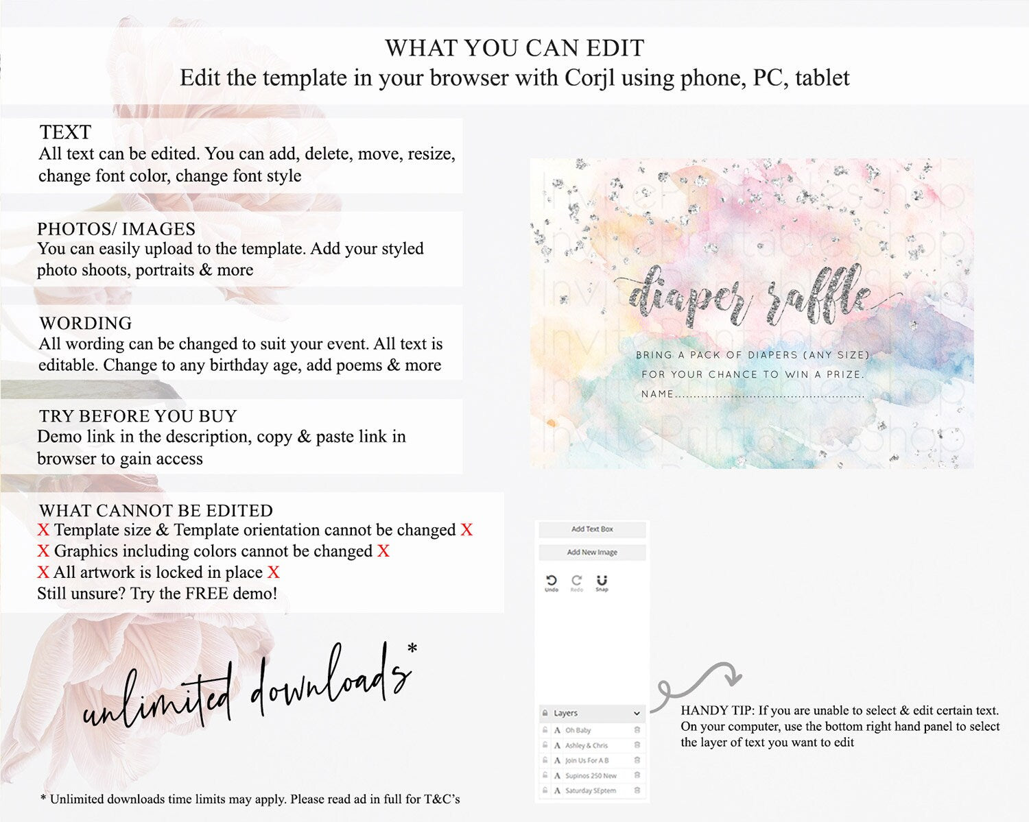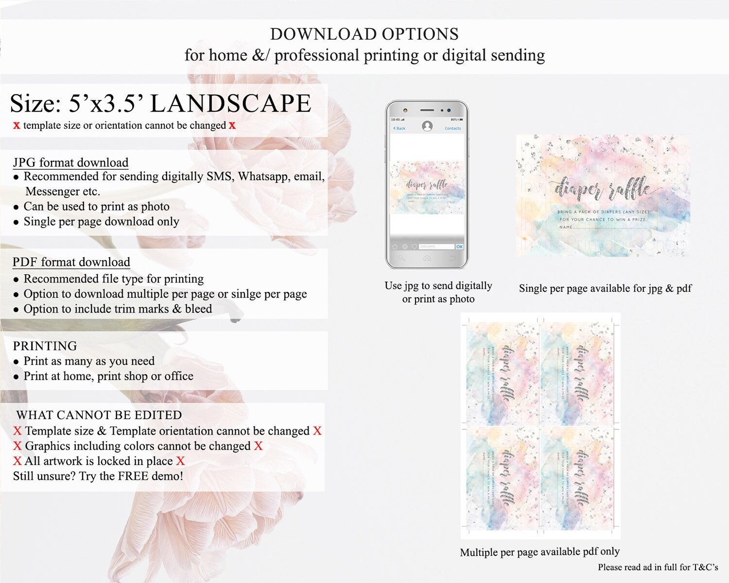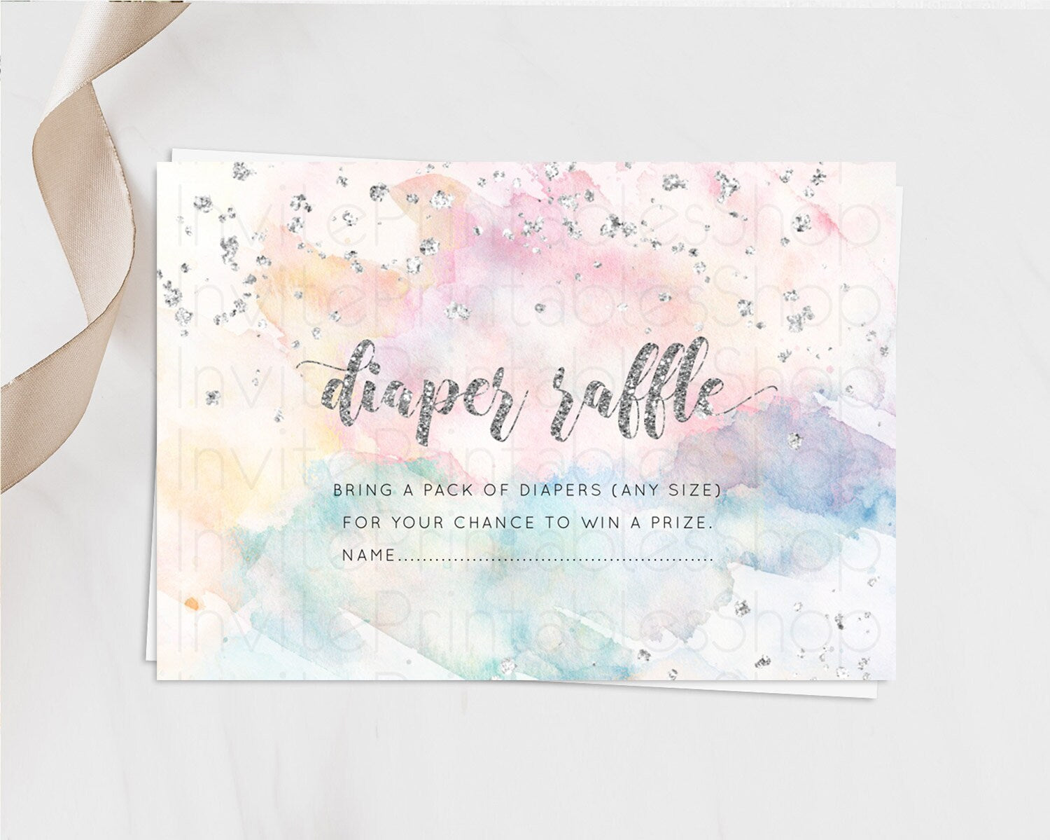 Pastel Rainbow Diaper Raffle Card Pastel Diaper Raffle Insert Pastel Colorful Diaper Ticket Confetti Watercolor Silver Raffle Game D10944