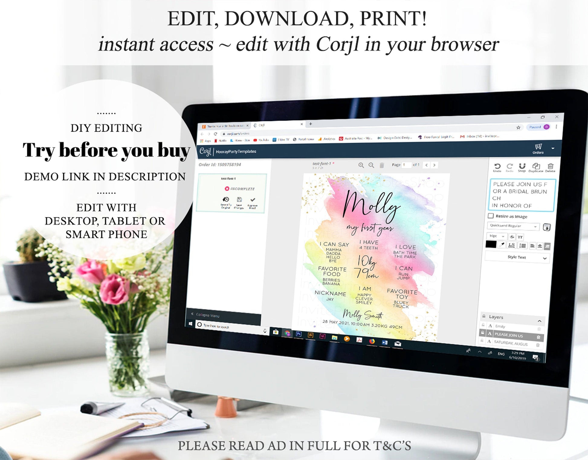 • After purchase, Corjl emails your editing link. Allow up to 15 minutes for delivery.