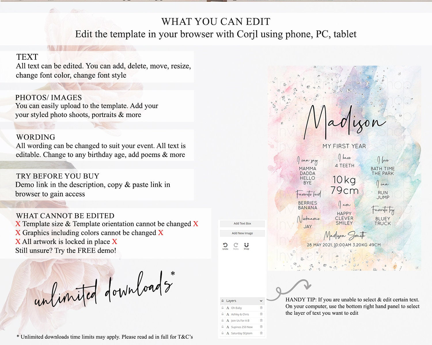 • After purchase, Corjl emails your editing link. Allow up to 15 minutes for delivery.