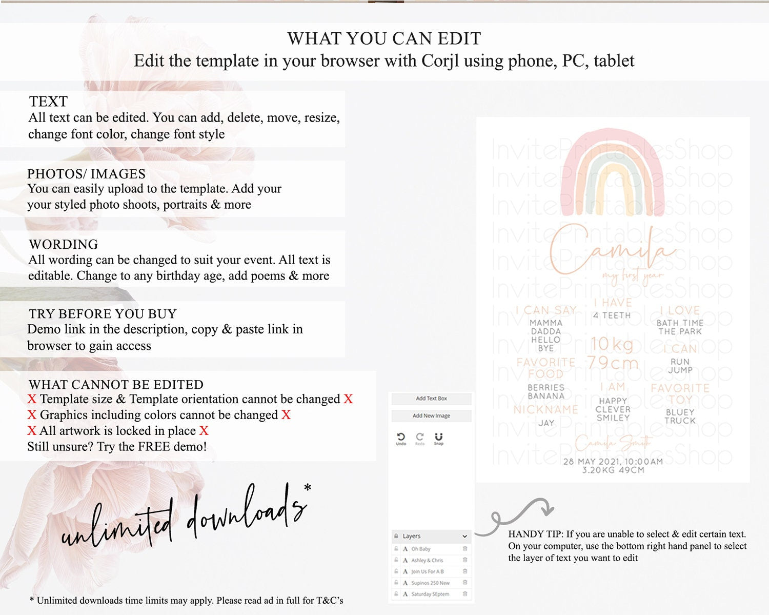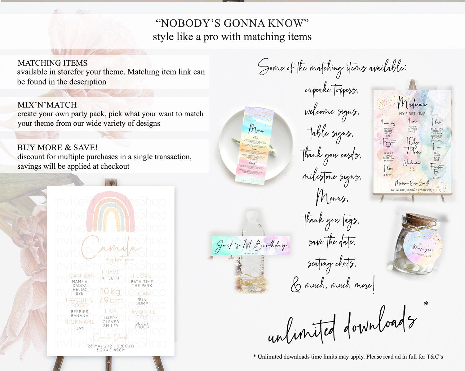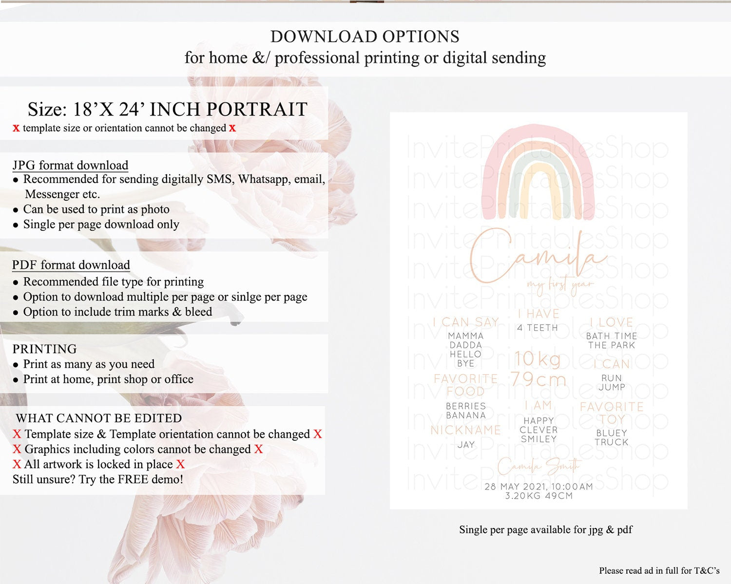 Pastel Rainbow First Birthday Milestone Poster Boho Rainbow Milestone Board Rainbow Milestone Pastel Milestone Rainbow 1st Birthday D10162