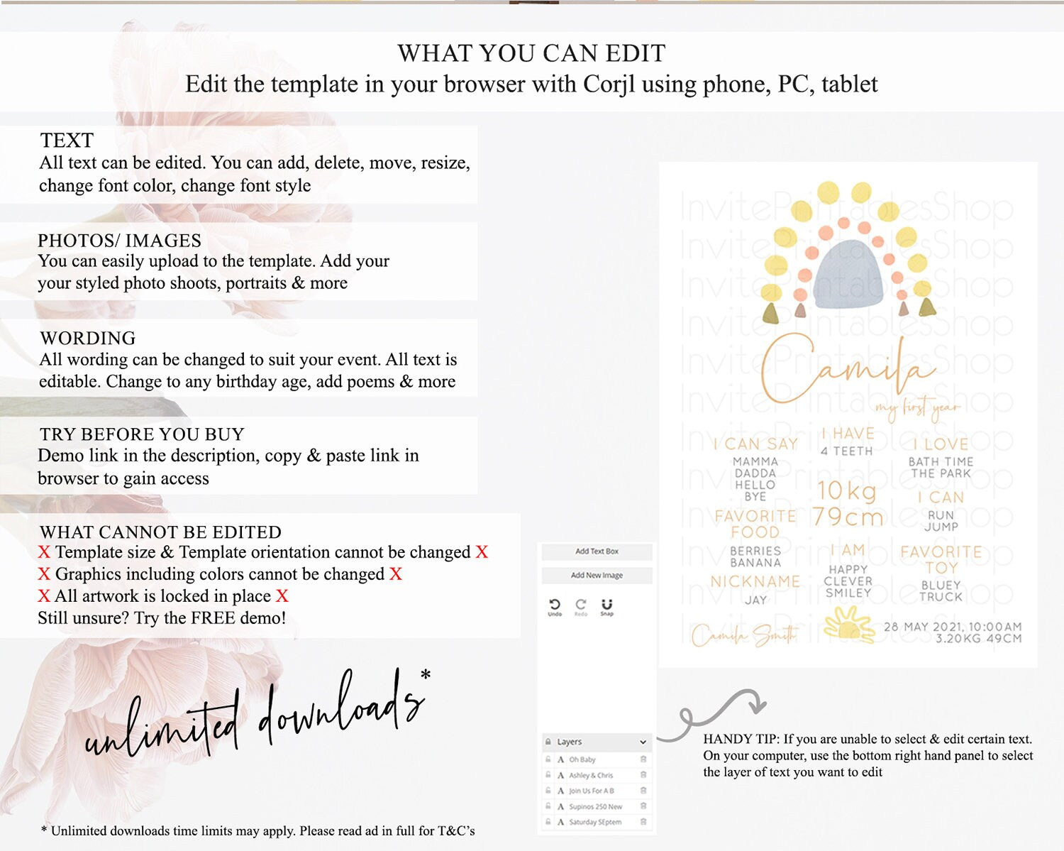 • After purchase, Corjl emails your editing link. Allow up to 15 minutes for delivery.