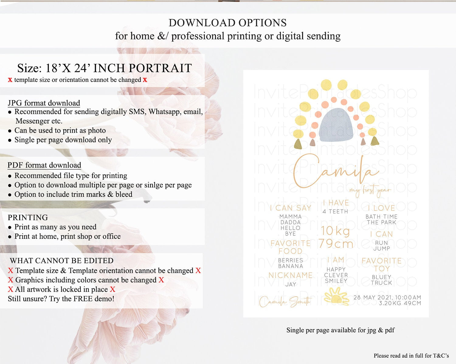 • Template size & orientation cannot be changed. Please use the demo link to confirm this product suits your needs.