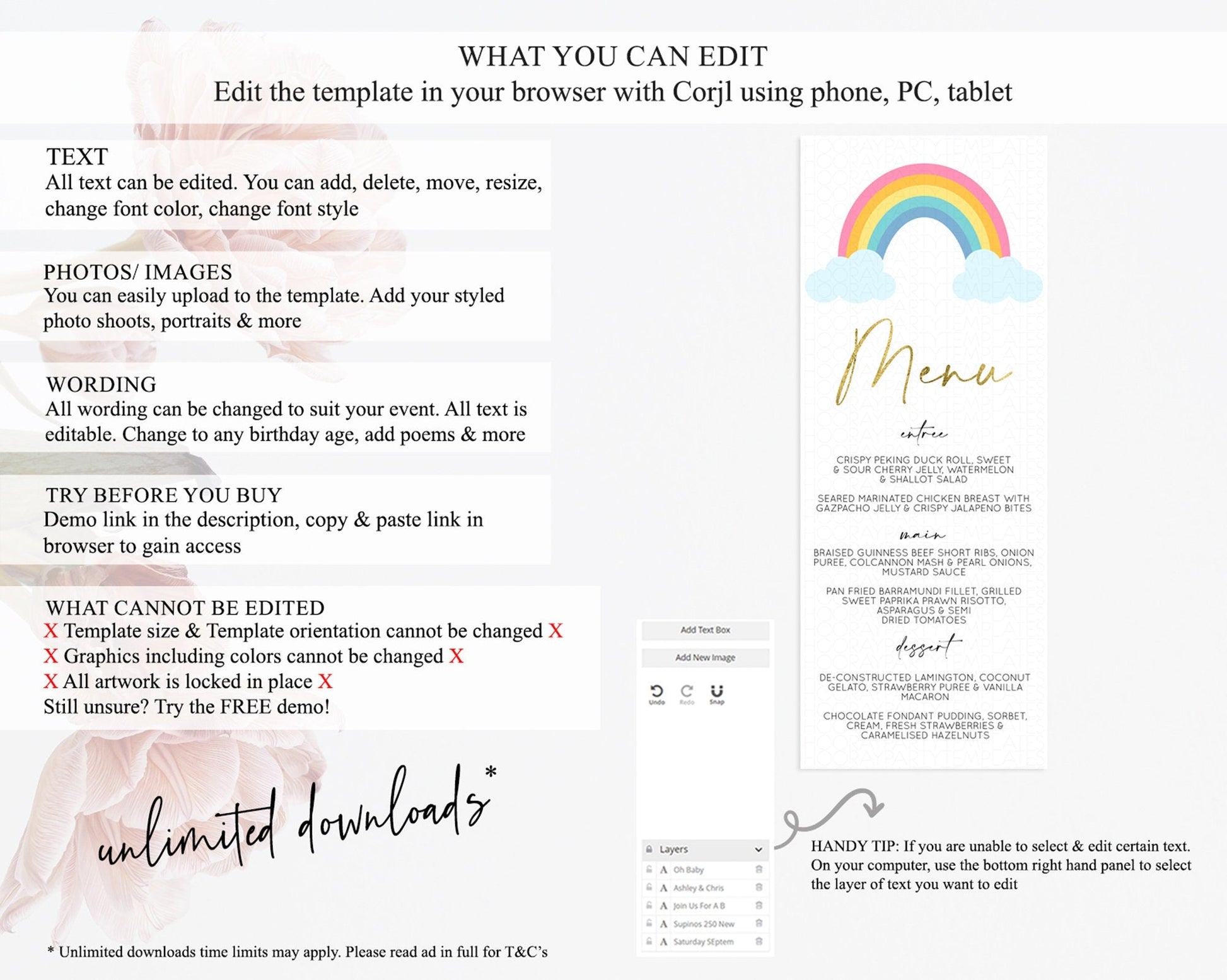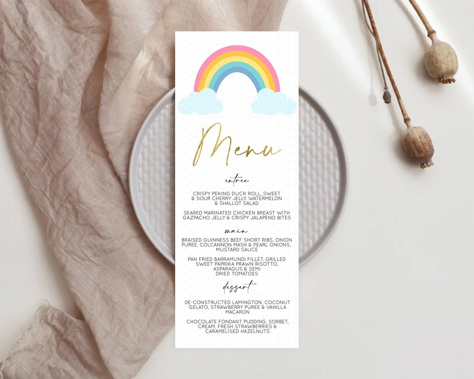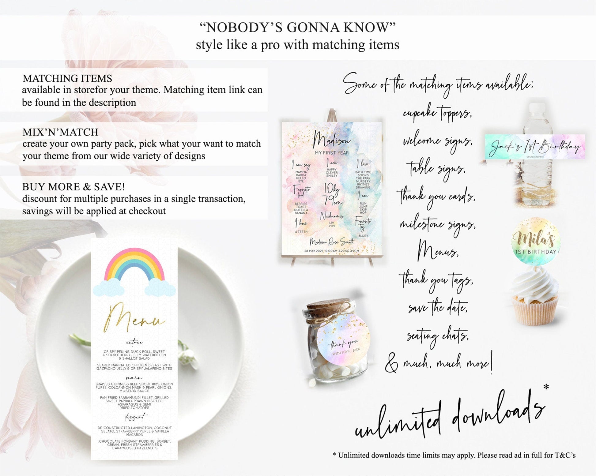 Pastel Rainbow Menu Boho Rainbow Menu Template Rainbow Boho Table Decor Pastel Rainbow Dinner Dessert Menu Rainbow Party Food Menu D10123