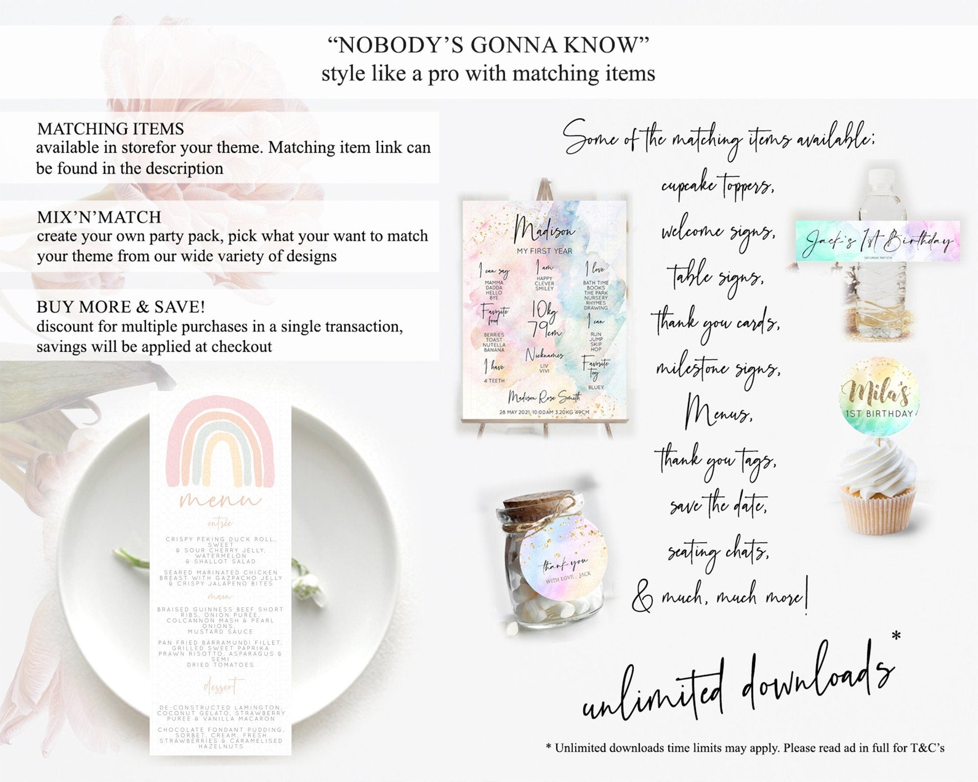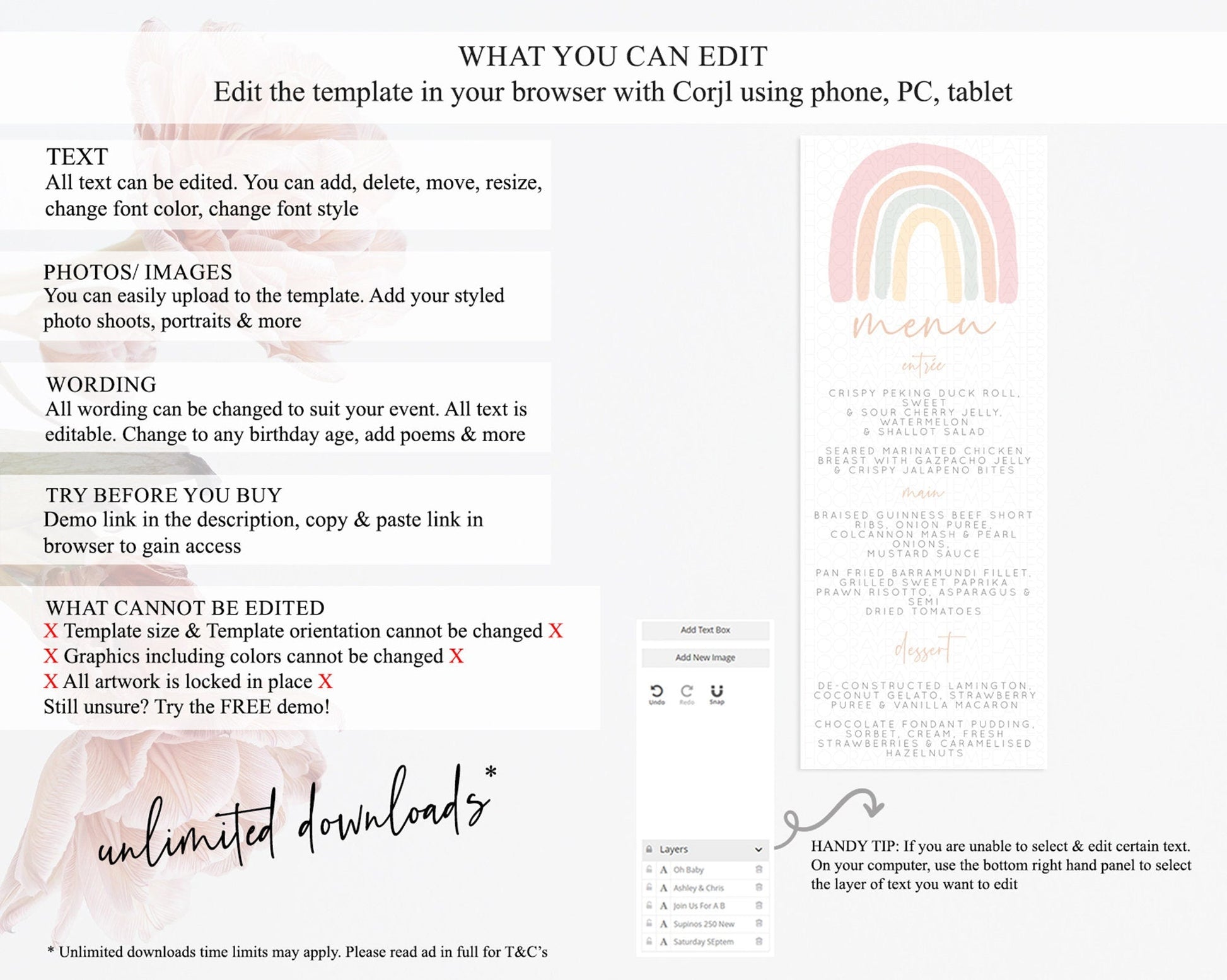 Pastel Rainbow Menu Boho Rainbow Menu Template Rainbow Boho Table Decor Pastel Rainbow Dinner Dessert Menu Rainbow Party Food Menu D10162