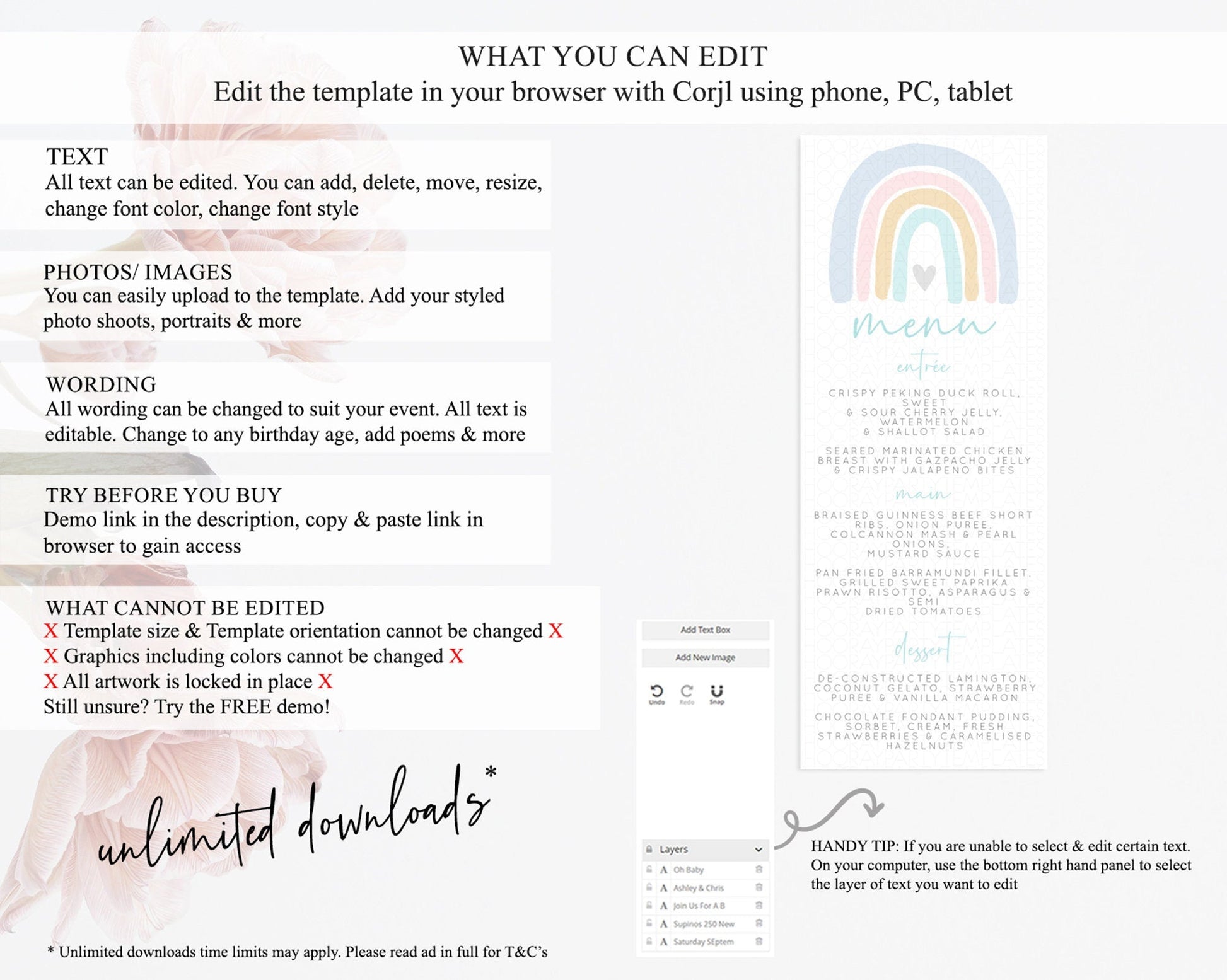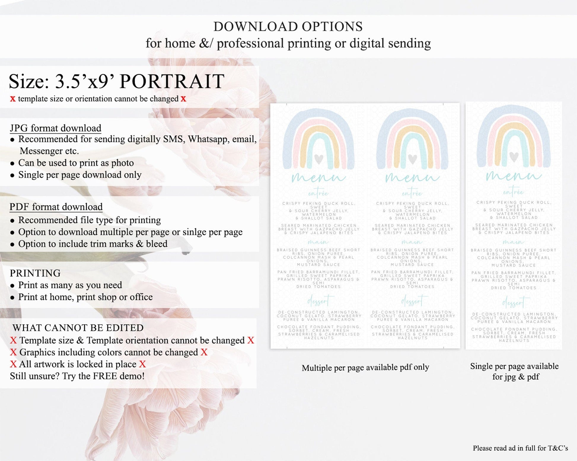 • Template size & orientation cannot be changed. Please use the demo link to confirm this product suits your needs.