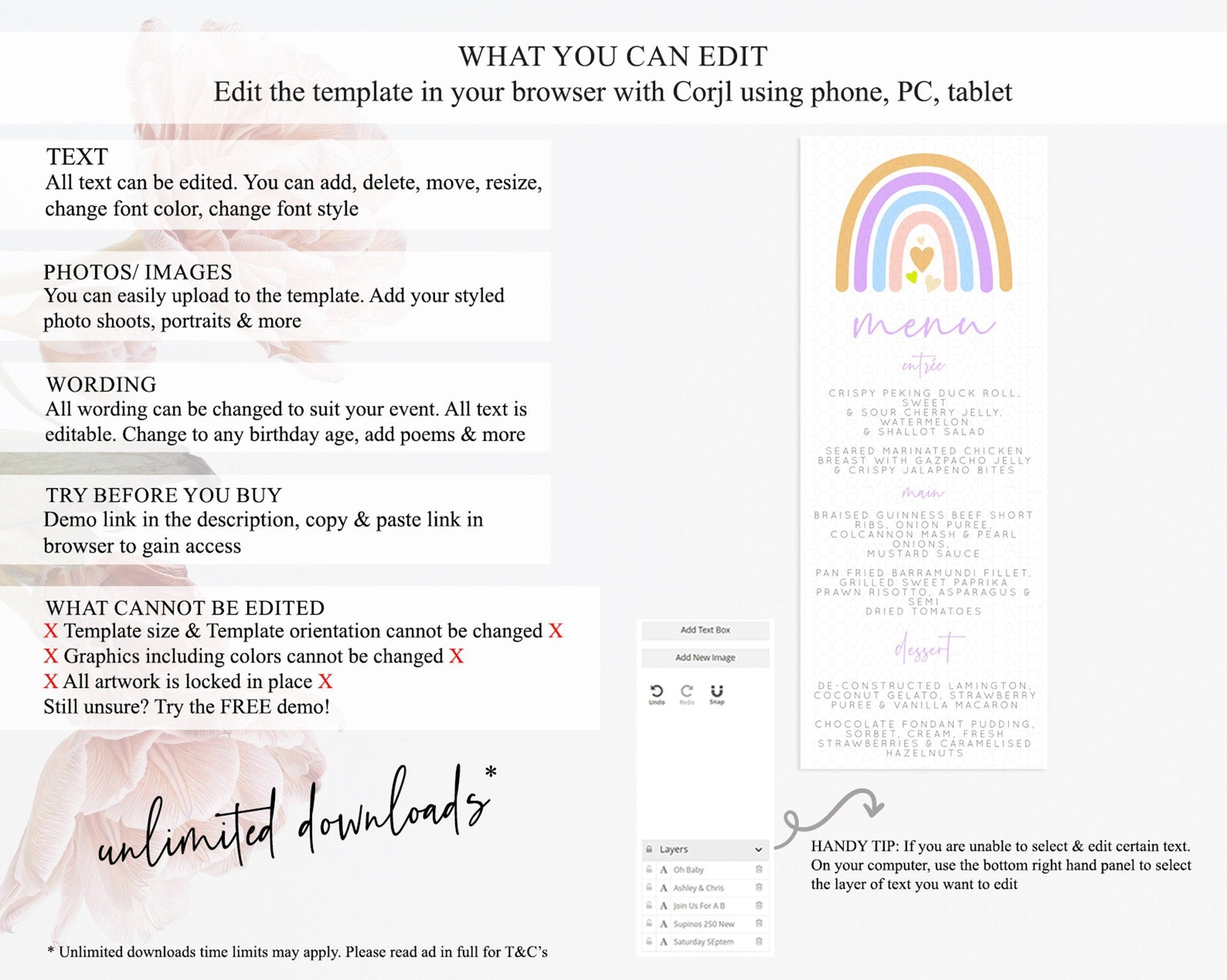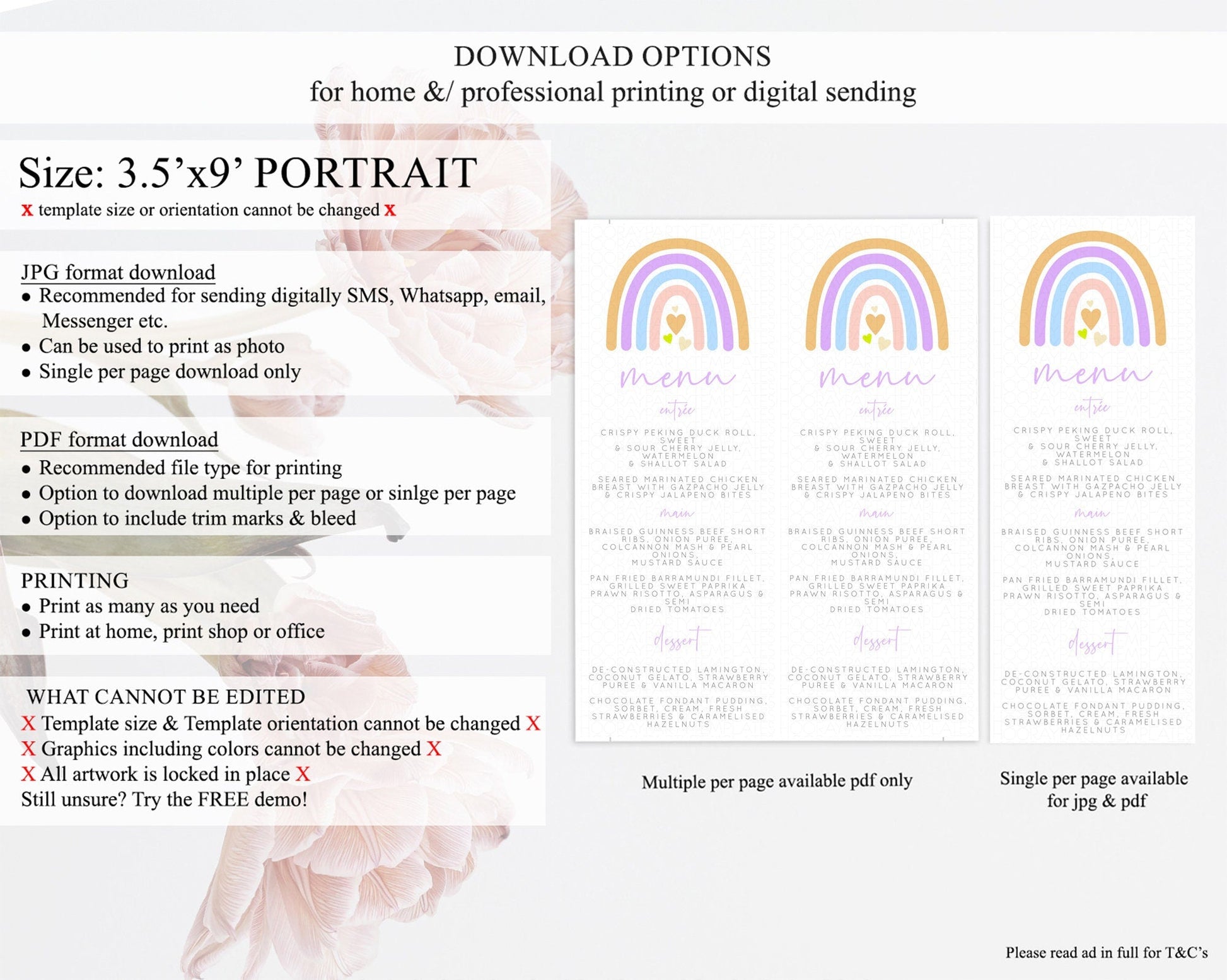 • Template size & orientation cannot be changed. Please use the demo link to confirm this product suits your needs.