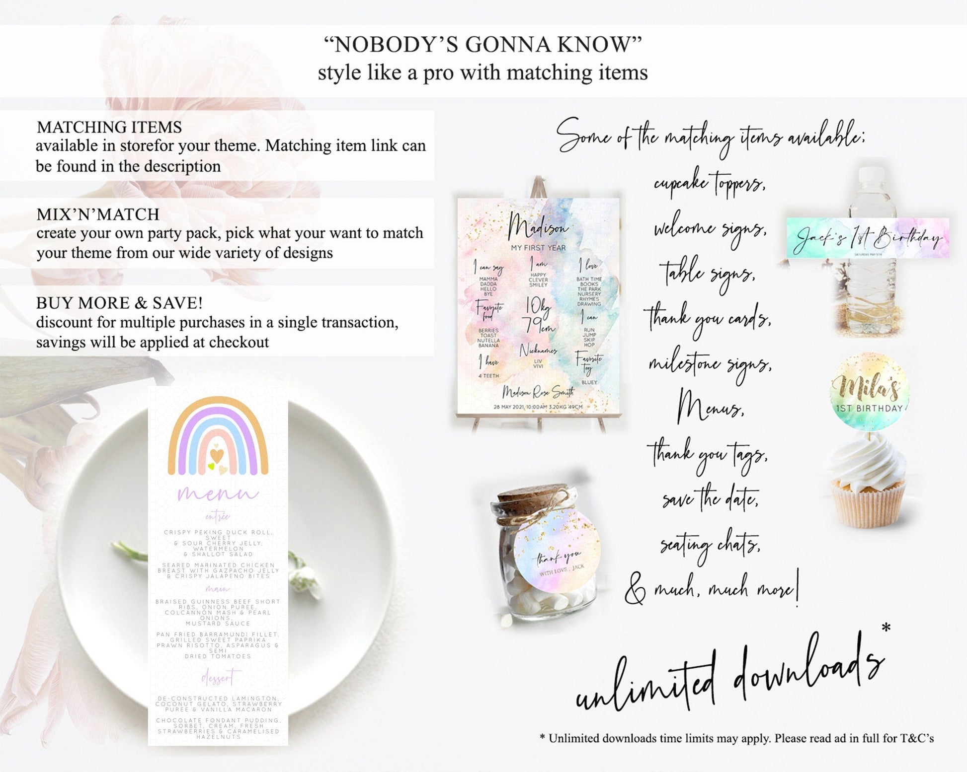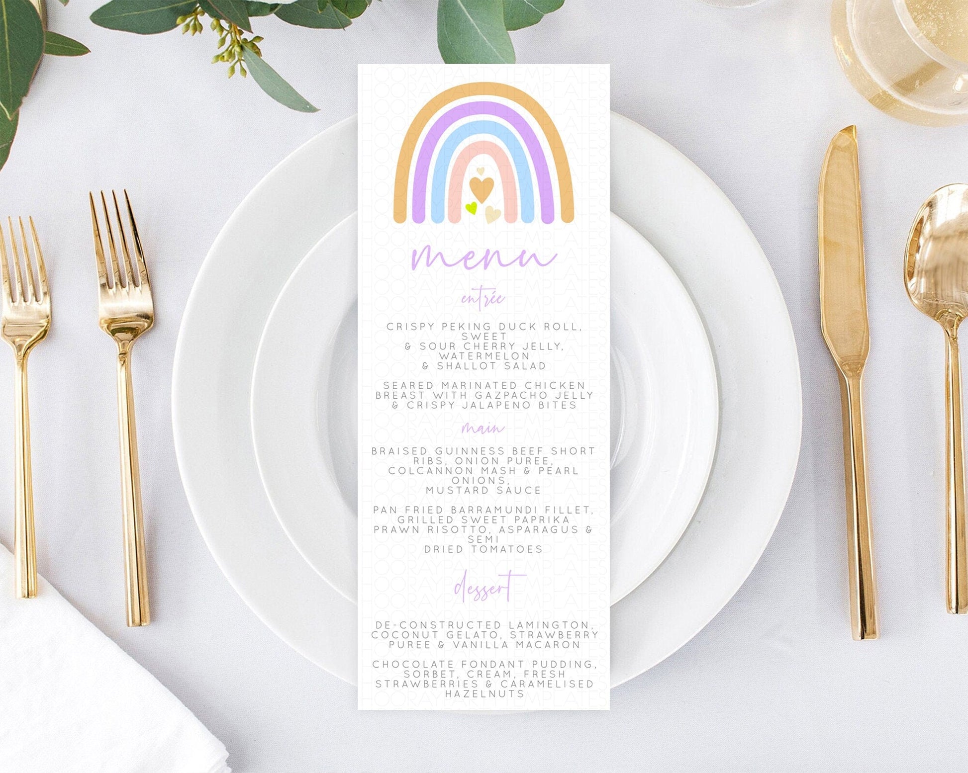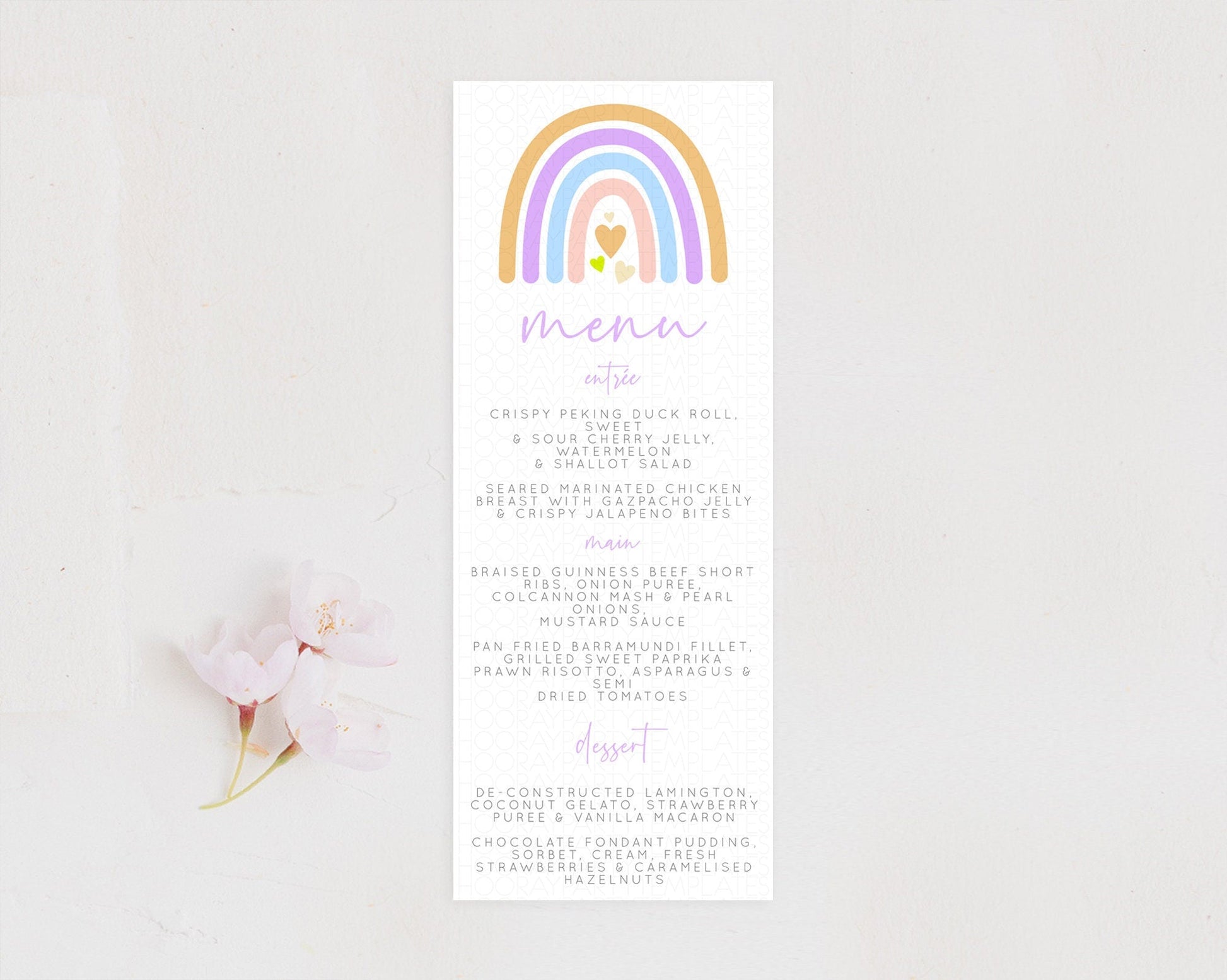 Pastel Rainbow Menu Boho Rainbow Menu Template Rainbow Boho Table Decor Pastel Rainbow Dinner Dessert Menu Rainbow Party Food Menu D10238