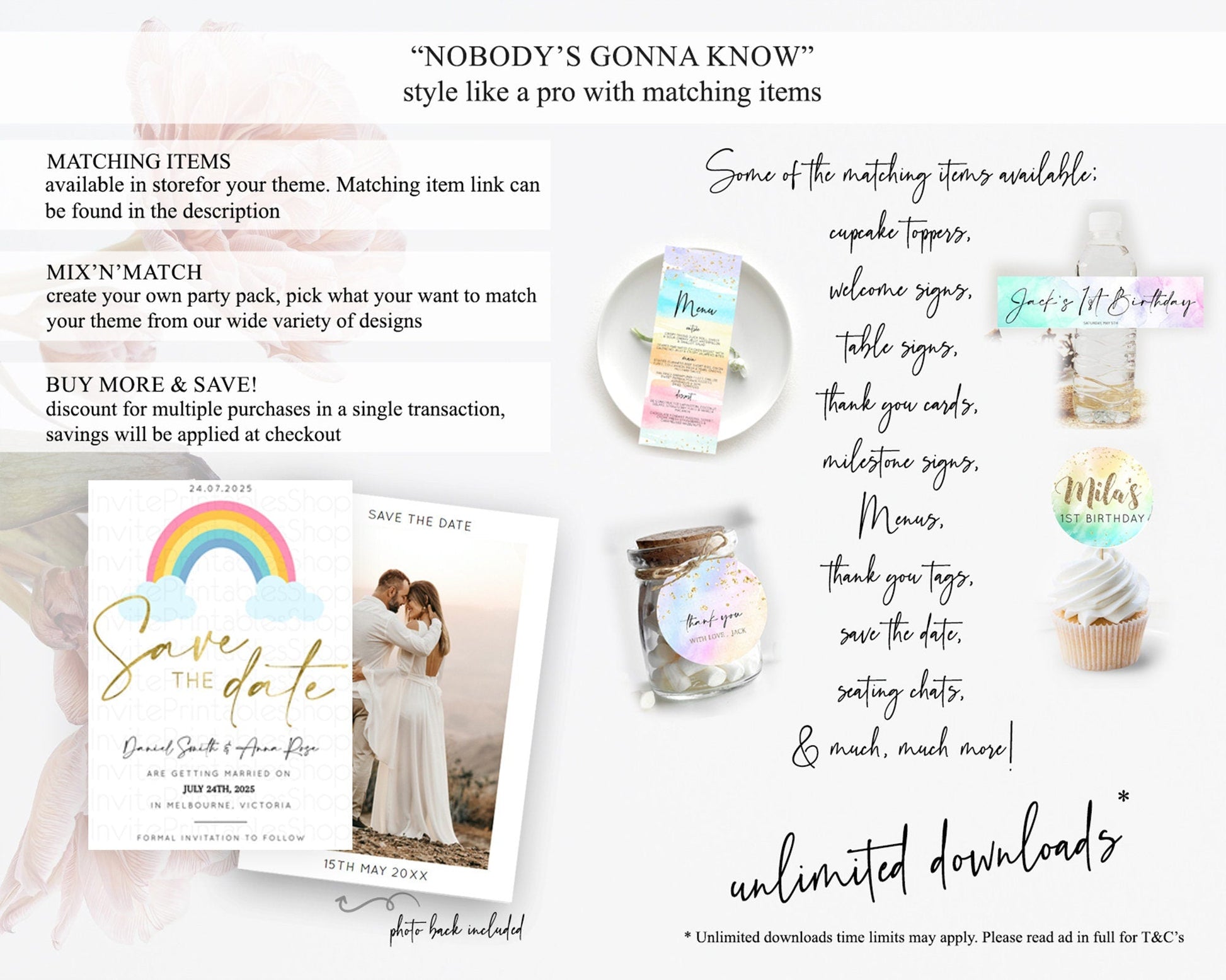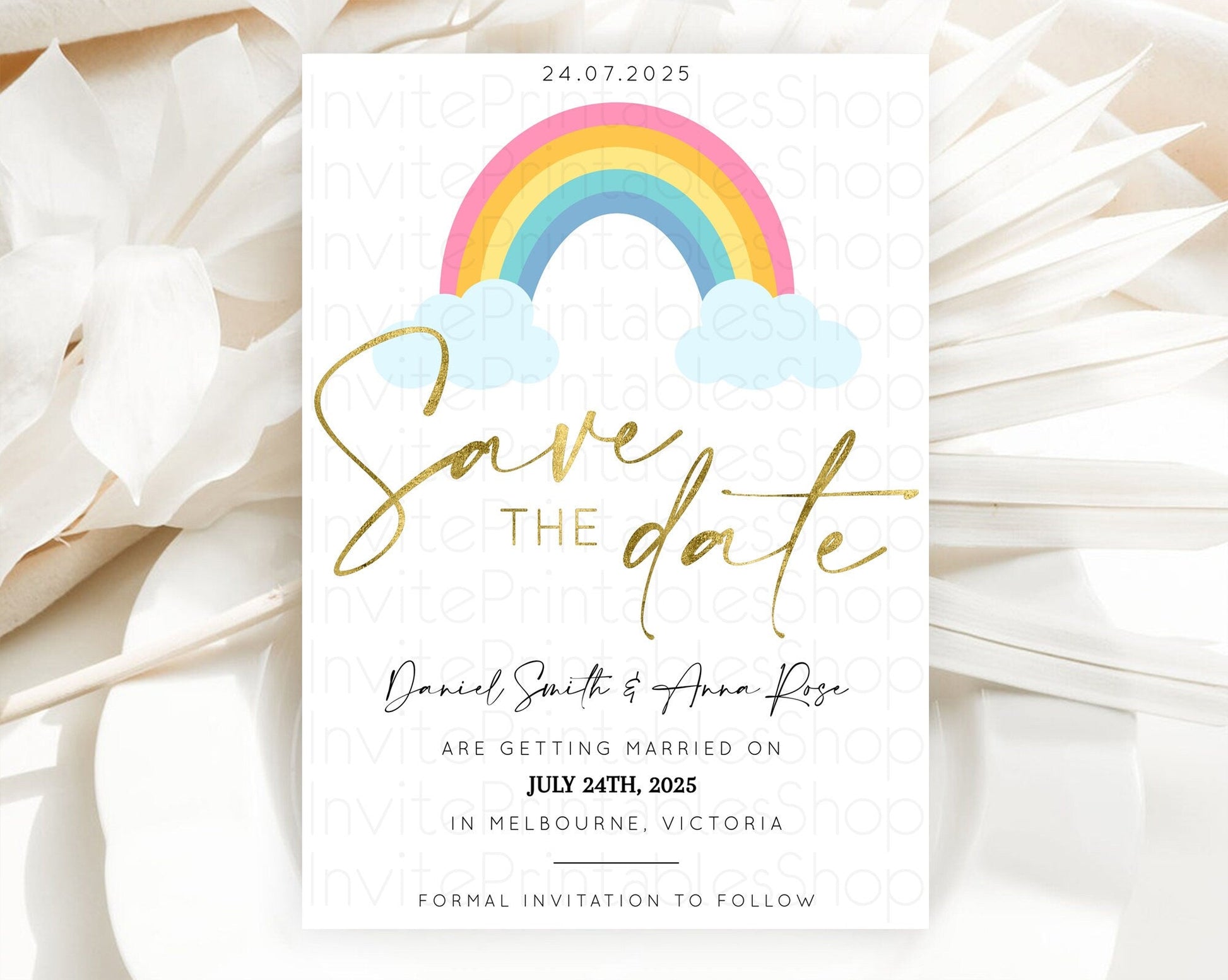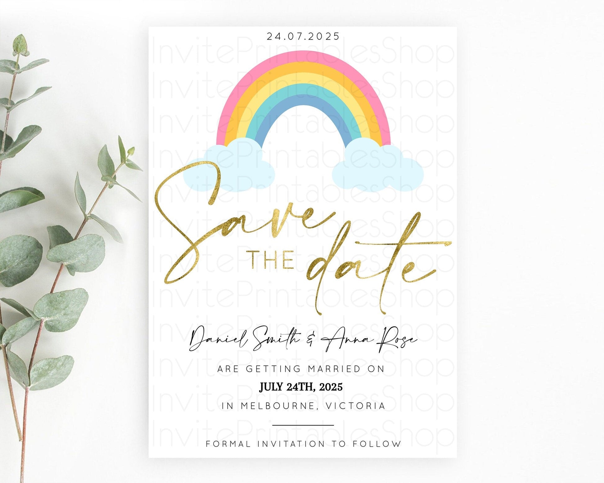 Pastel Rainbow Save The Date Template Boho Colorful Rainbow Party Rainbow Baby Theme For 1st Birthday Baptism Baby Shower Wedding D10123