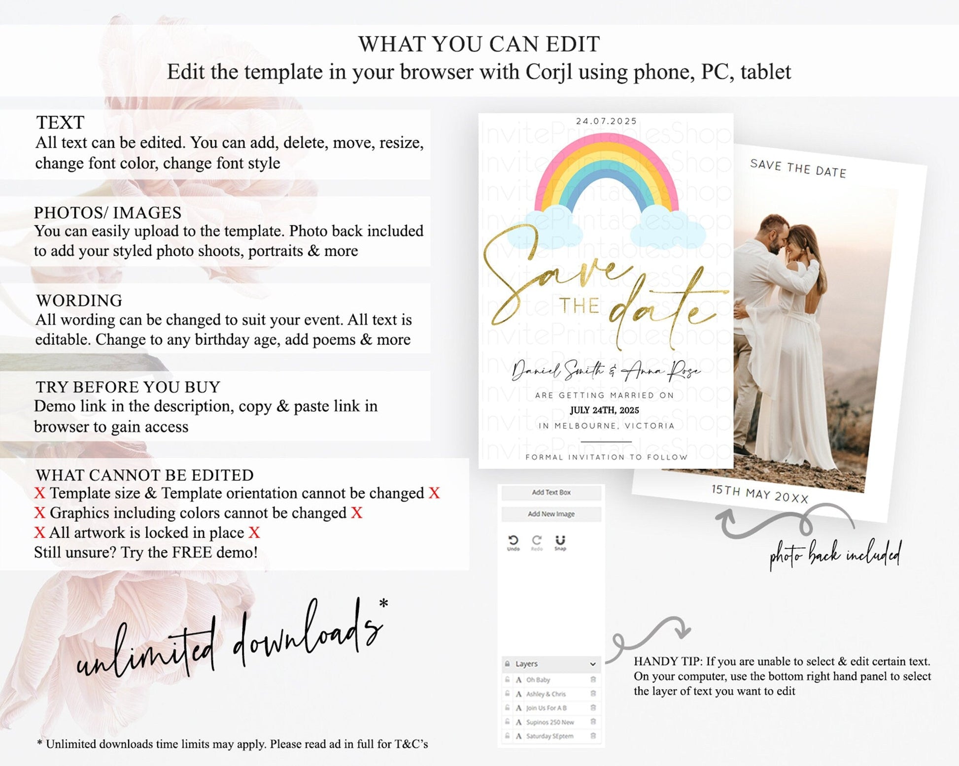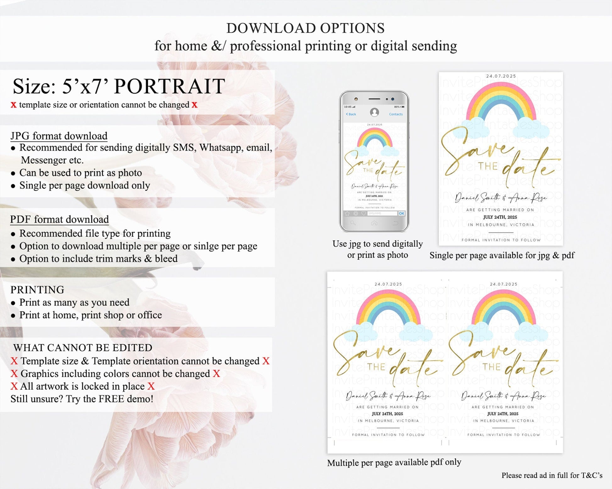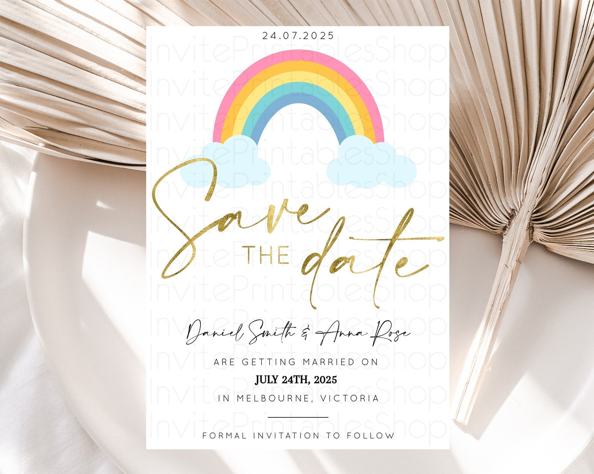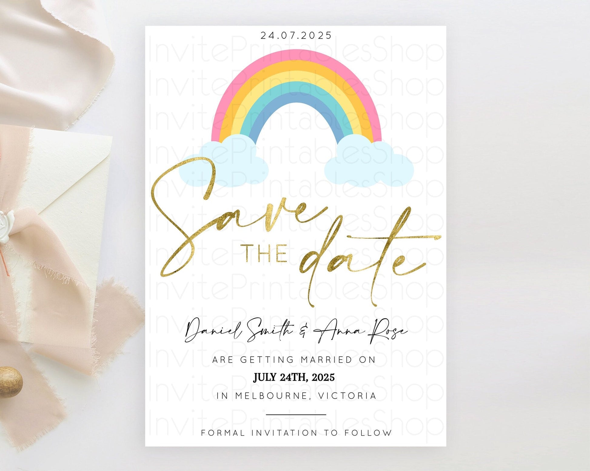 Pastel Rainbow Save The Date Template Boho Colorful Rainbow Party Rainbow Baby Theme For 1st Birthday Baptism Baby Shower Wedding D10123