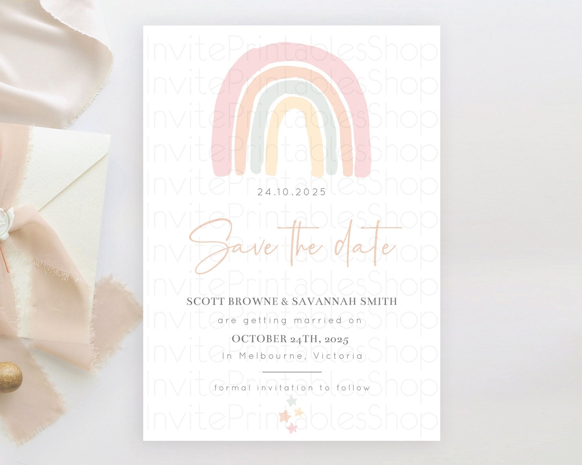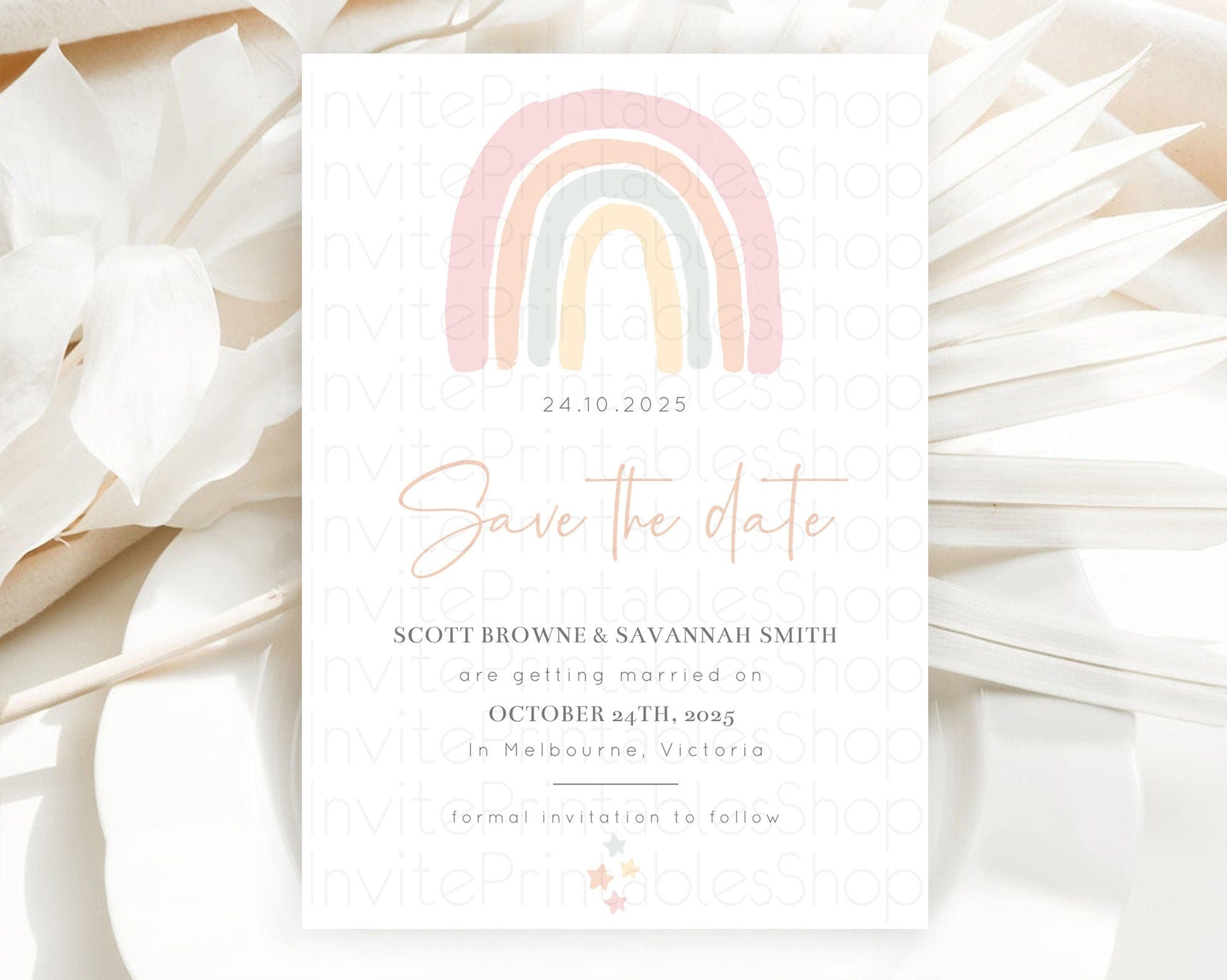 Pastel Rainbow Save The Date Template Boho Colorful Rainbow Party Rainbow Baby Theme For 1st Birthday Baptism Baby Shower Wedding D10162