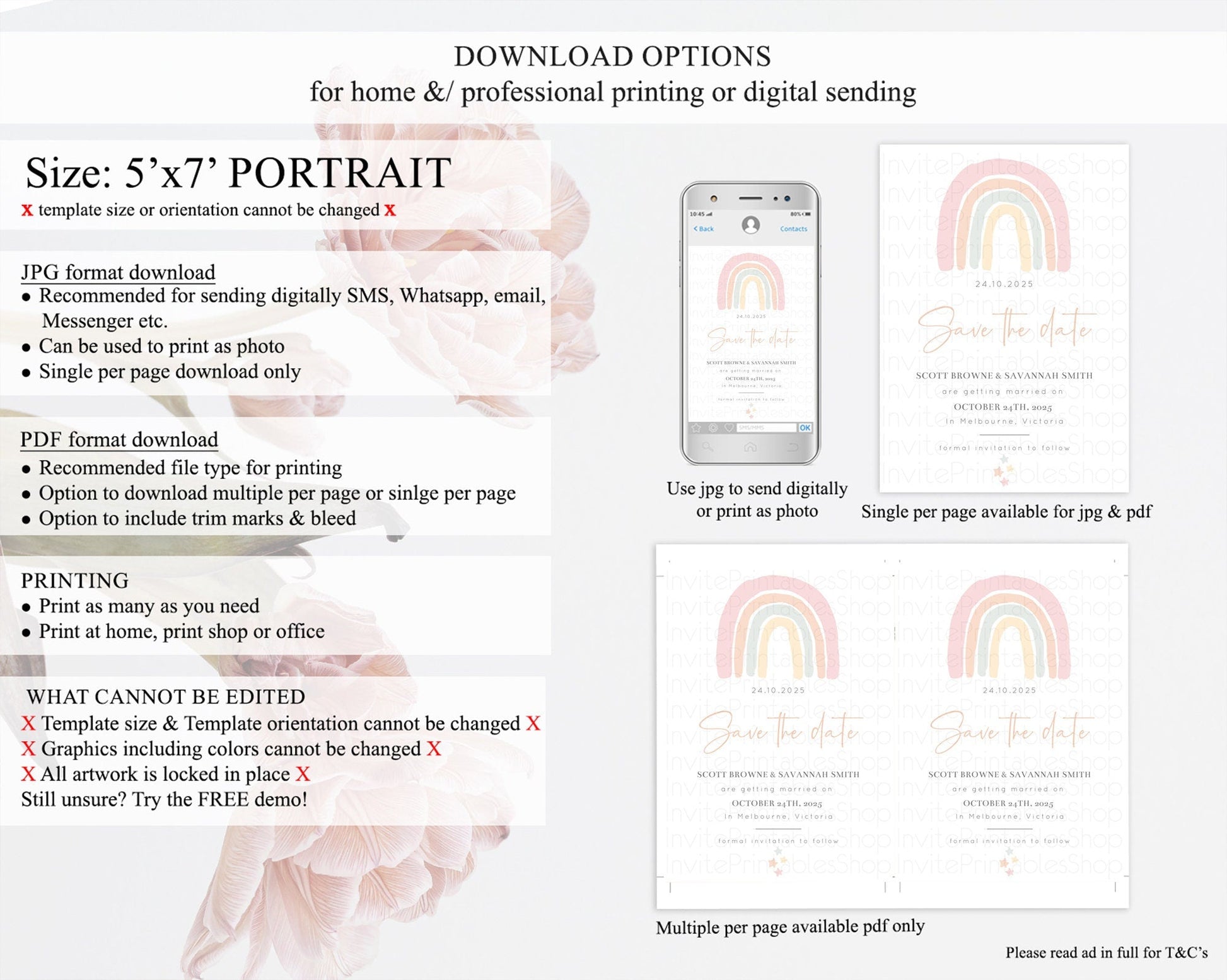 • Template size & orientation cannot be changed. Please use the demo link to confirm this product suits your needs.