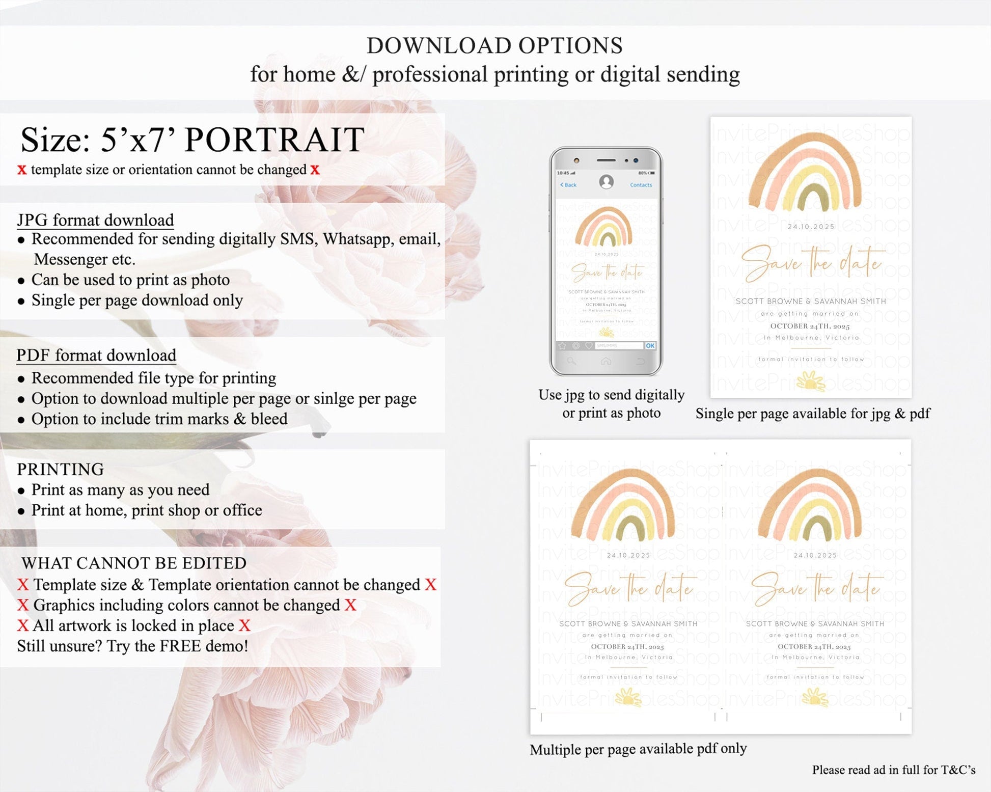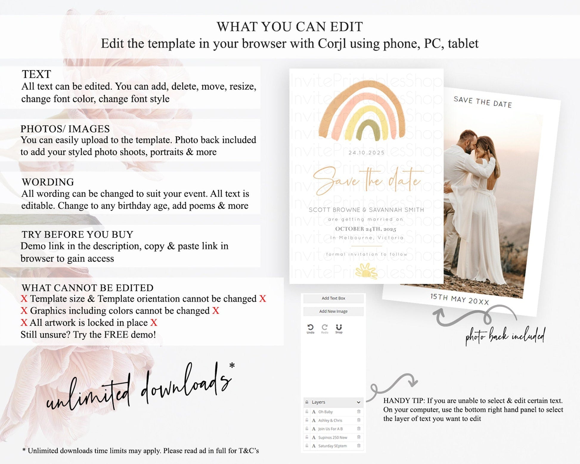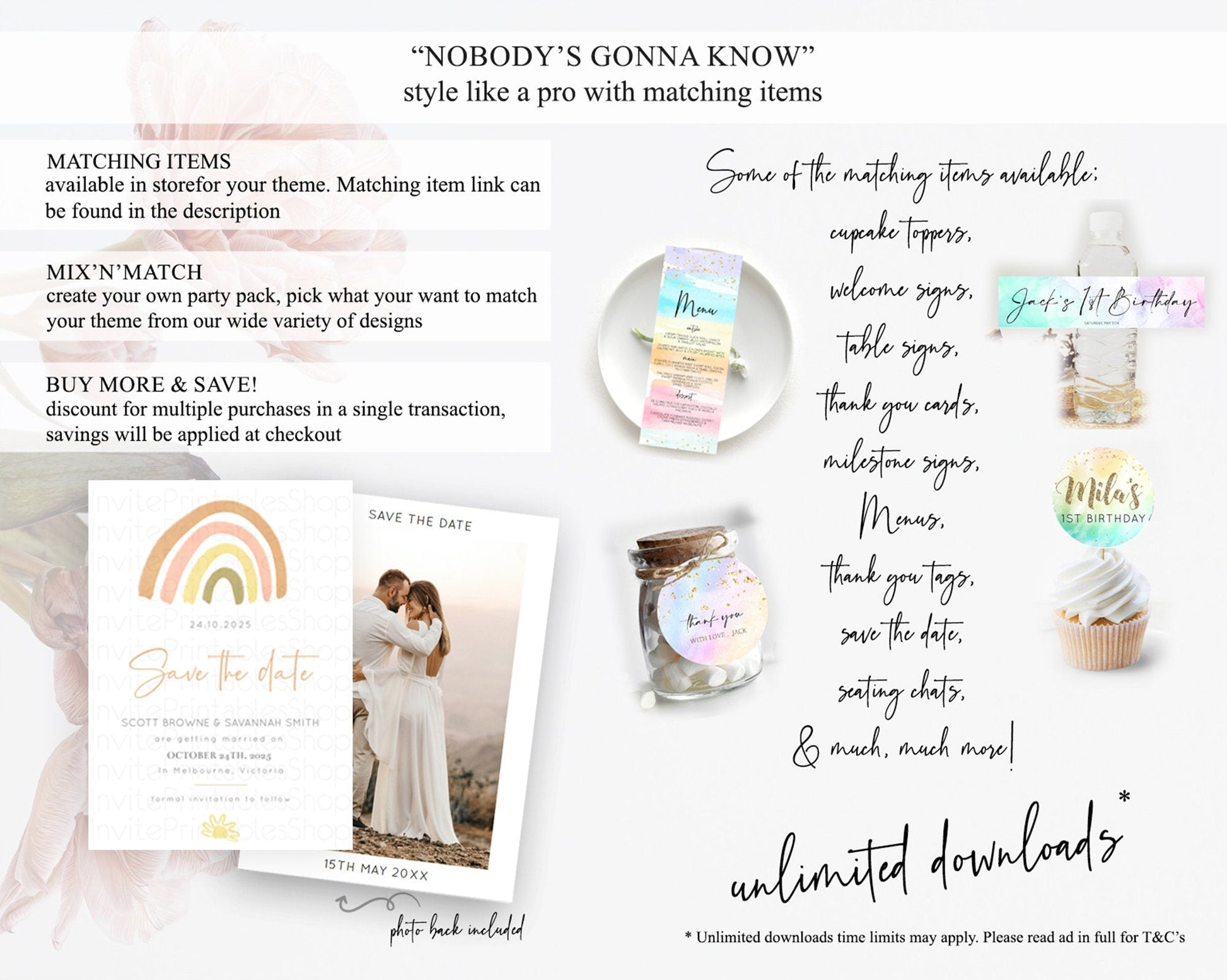 Pastel Rainbow Save The Date Template Boho Colorful Rainbow Party Rainbow Baby Theme For 1st Birthday Baptism Baby Shower Wedding D10684