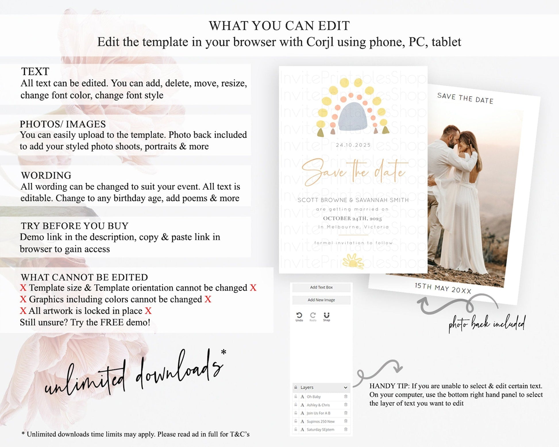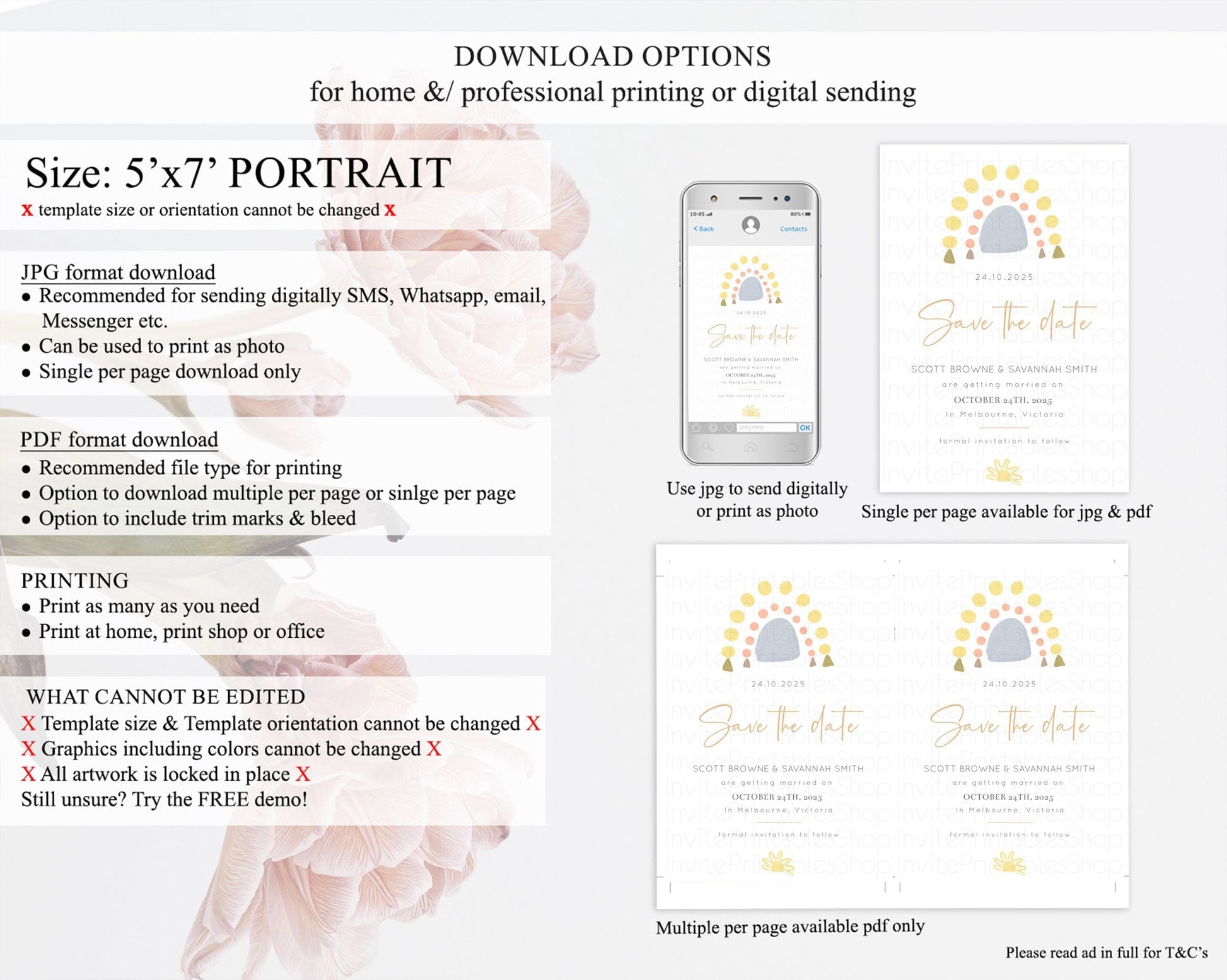 Pastel Rainbow Save The Date Template Boho Colorful Rainbow Party Rainbow Baby Theme For 1st Birthday Baptism Baby Shower Wedding D10688