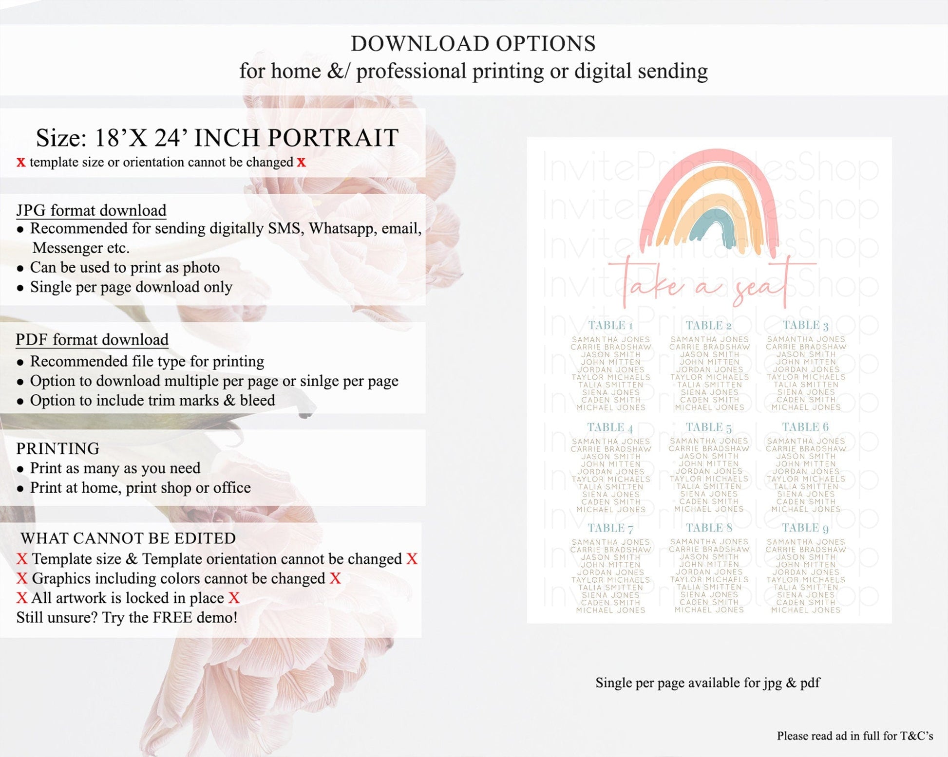 Pastel Rainbow Seating Chart Boho Rainbow Seating Chart Rainbow Seating Chart Pastel Seating Chart Boho Rainbow Seating Sign D10351