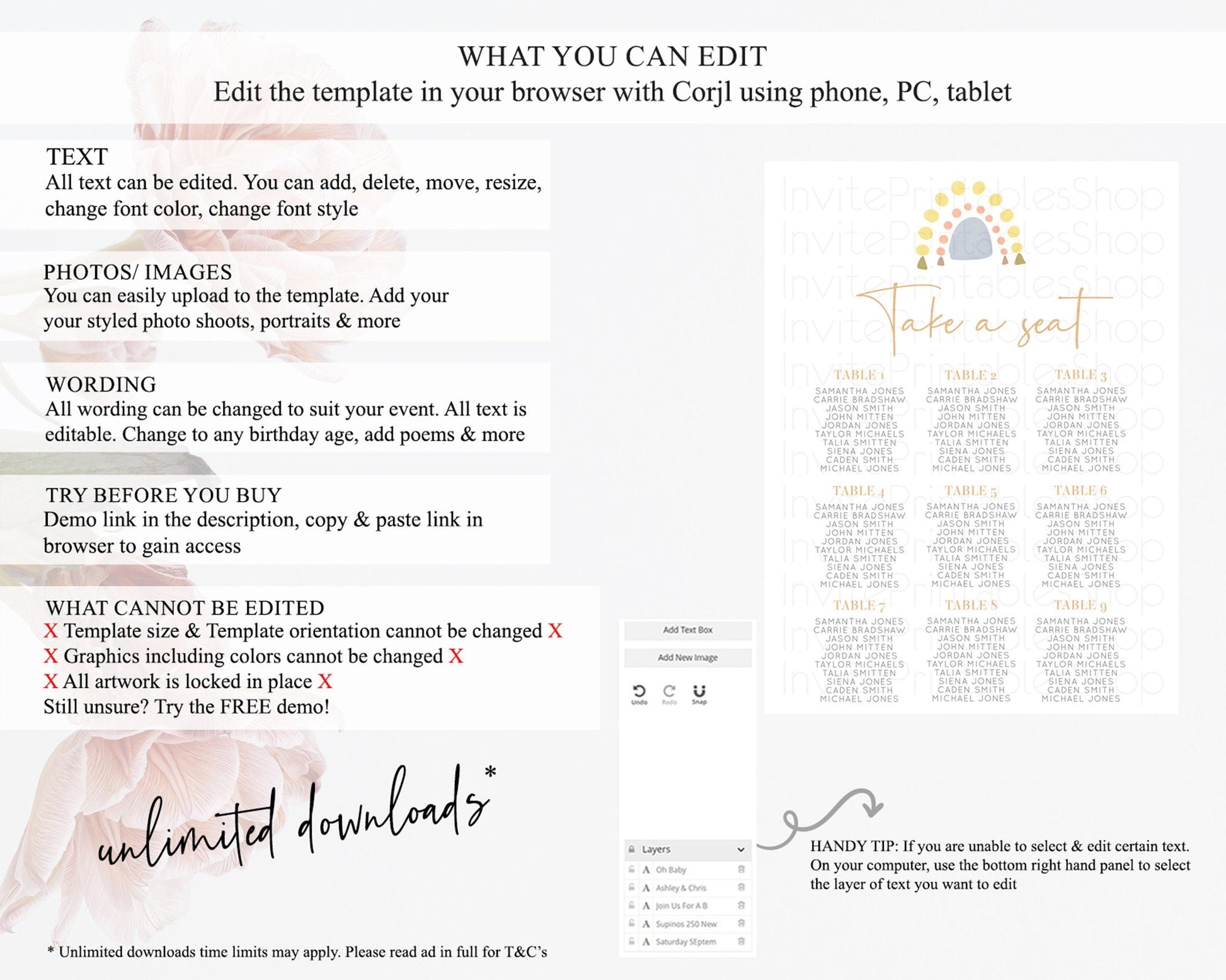 • After purchase, Corjl emails your editing link. Allow up to 15 minutes for delivery.