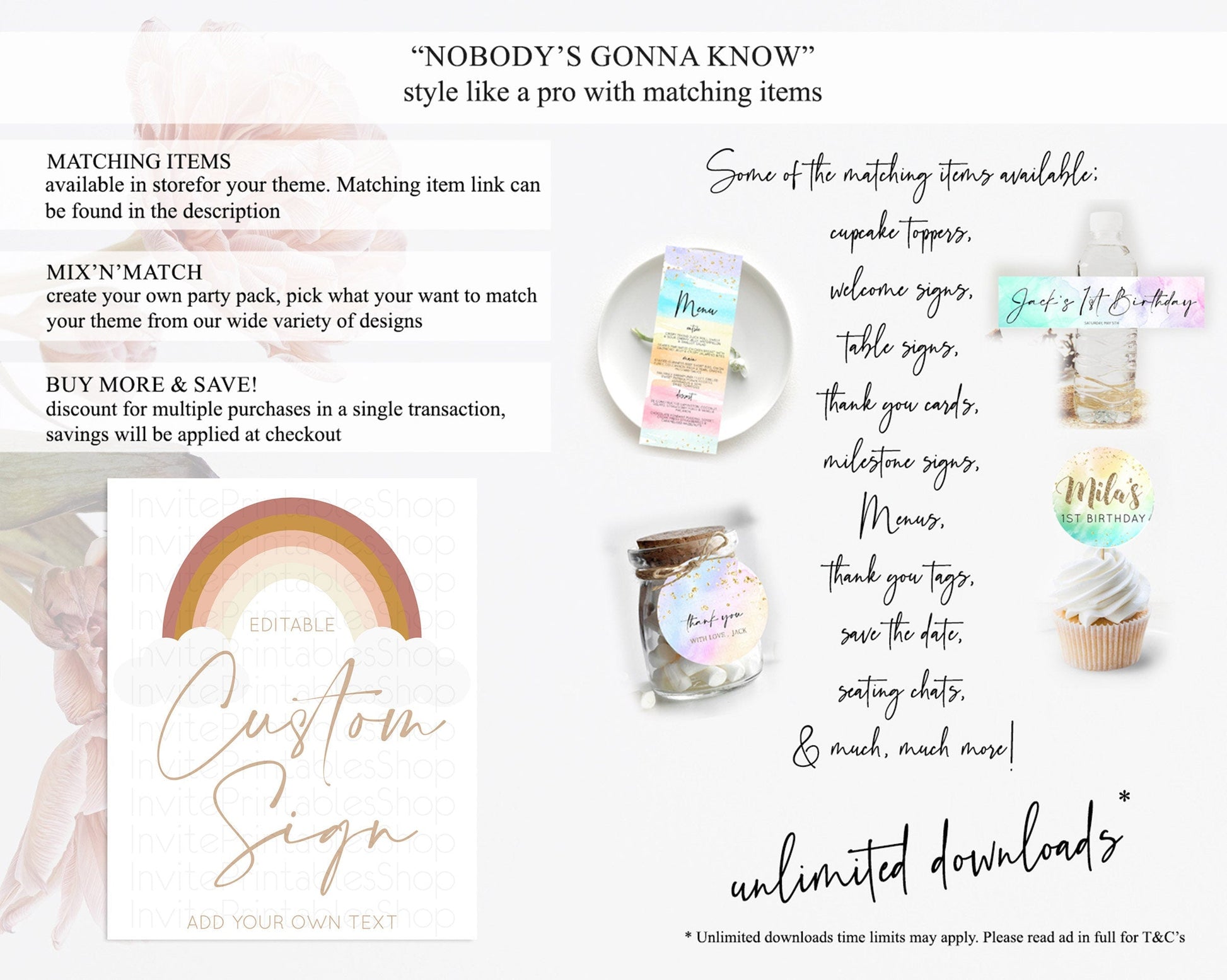 Pastel Rainbow Sign Rainbow Table Sign Decor Boho Colorful Rainbow Party Rainbow Baby Theme 1st Birthday Baptism Baby Shower Wedding D10122