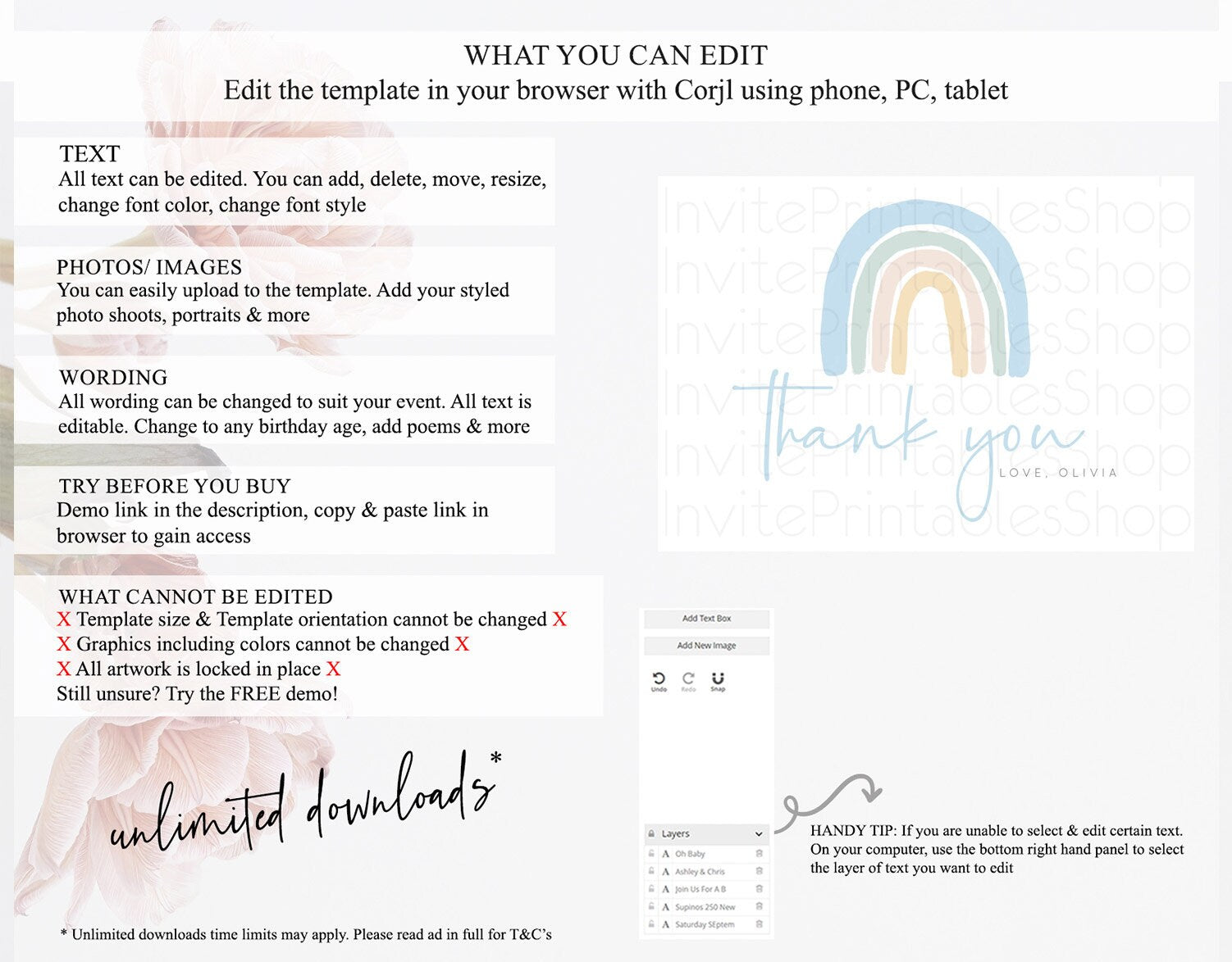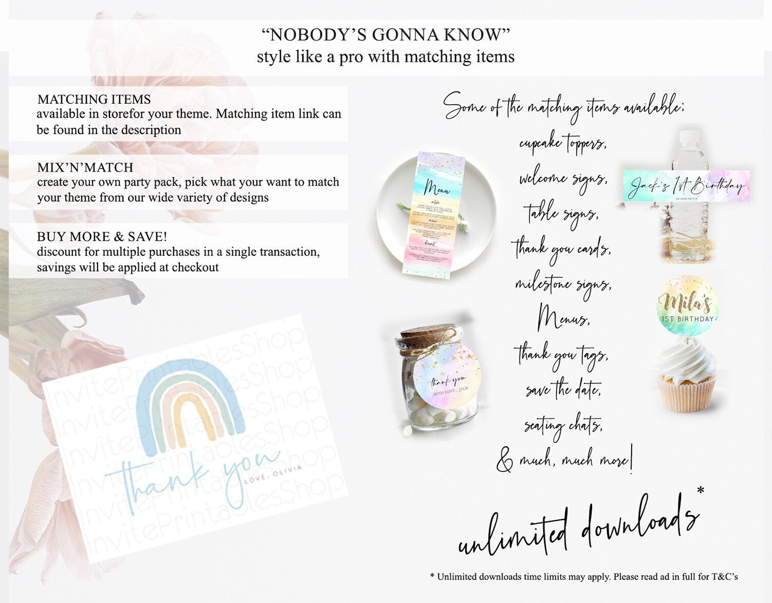 Pastel Rainbow Thank You Boho Rainbow Thank You Card Rainbow Birthday Thank You Cards Pastel Rainbow Teacher Thank You Card Template D10200