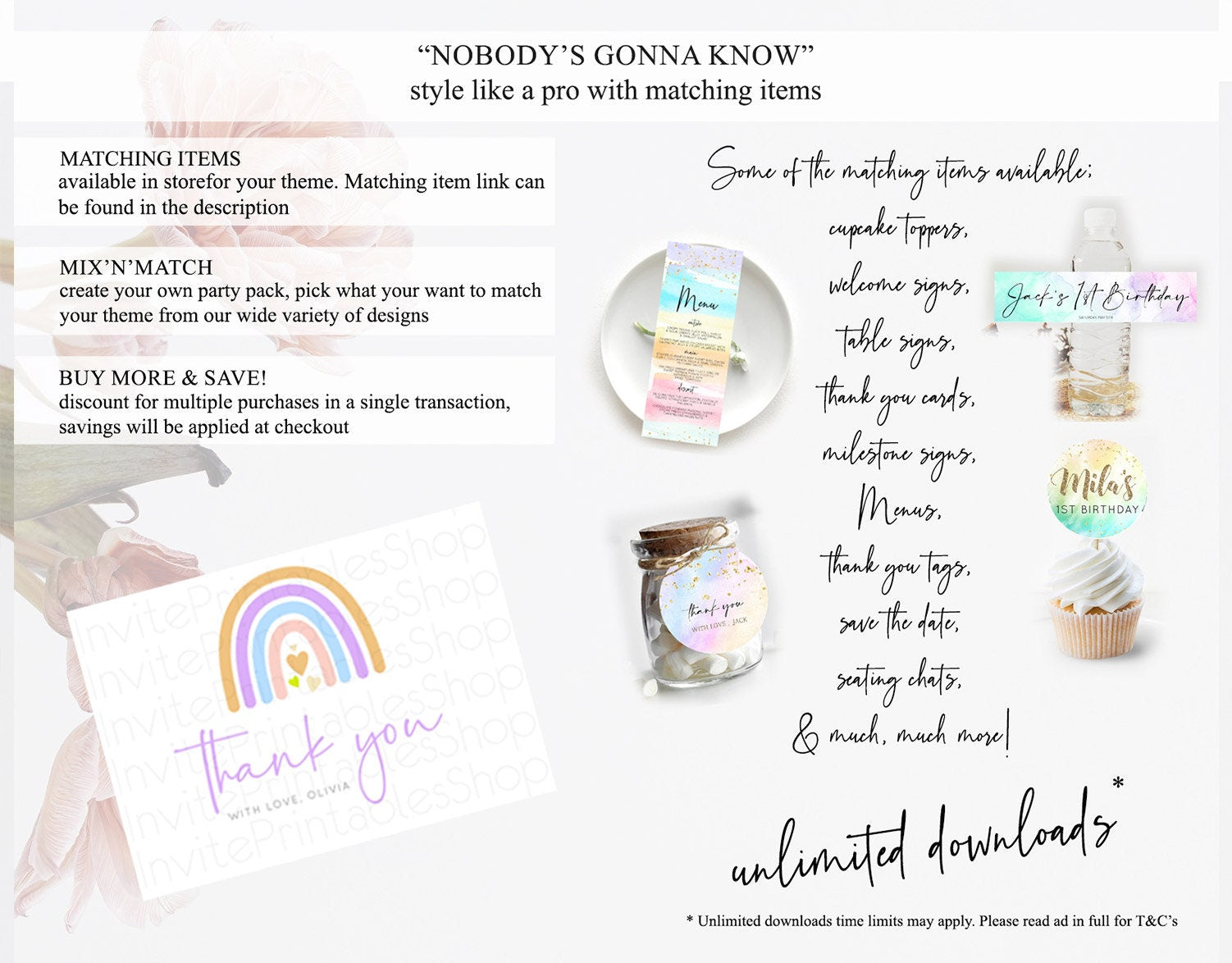 Pastel Rainbow Thank You Boho Rainbow Thank You Card Rainbow Birthday Thank You Cards Pastel Rainbow Teacher Thank You Card Template D10238
