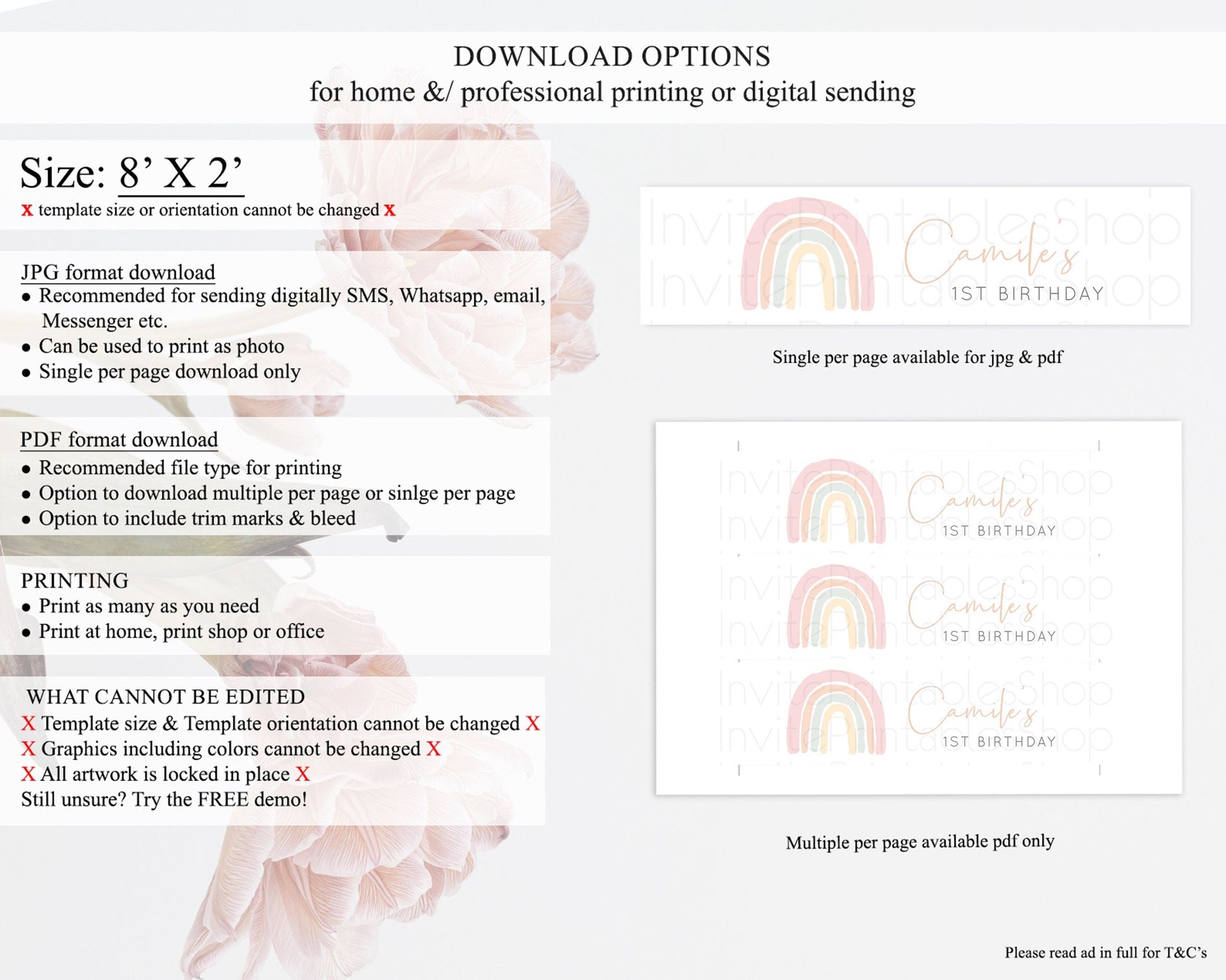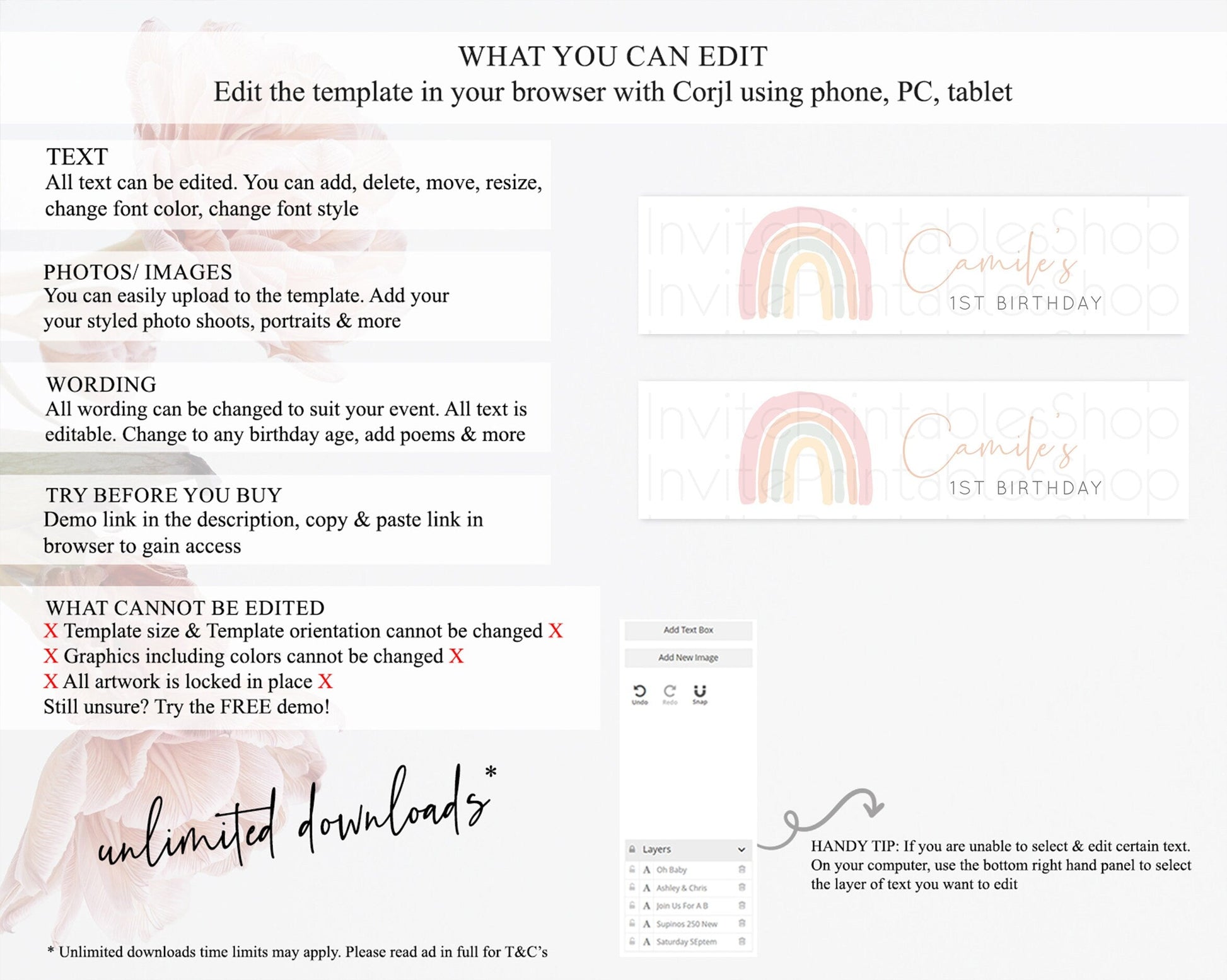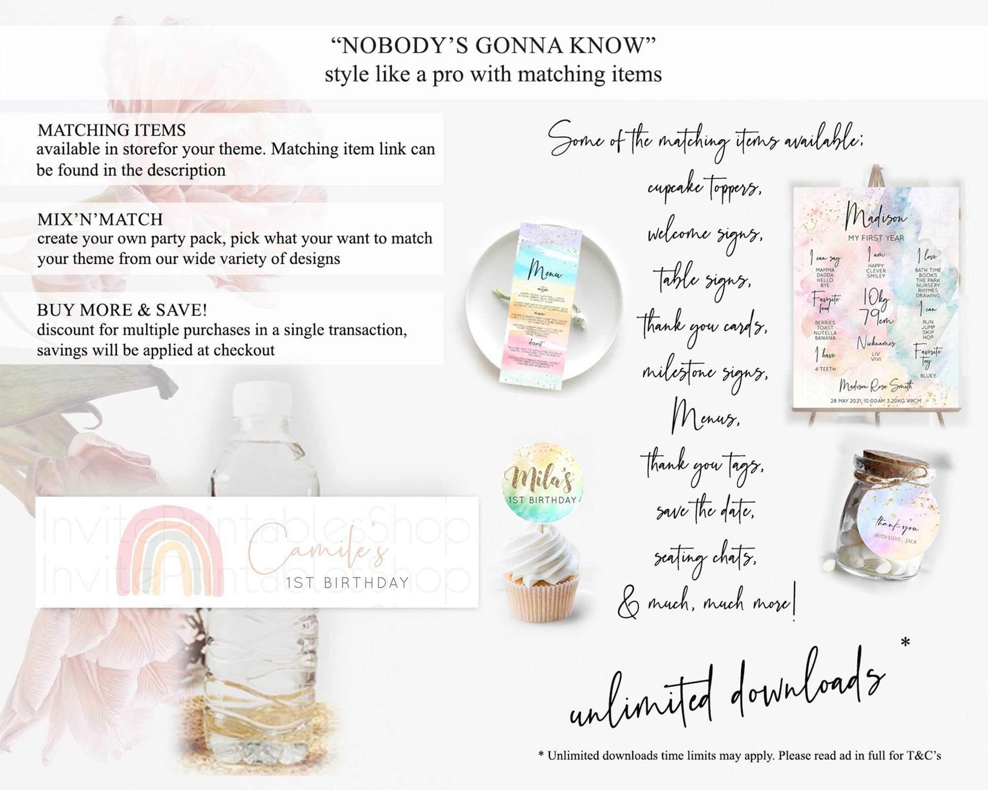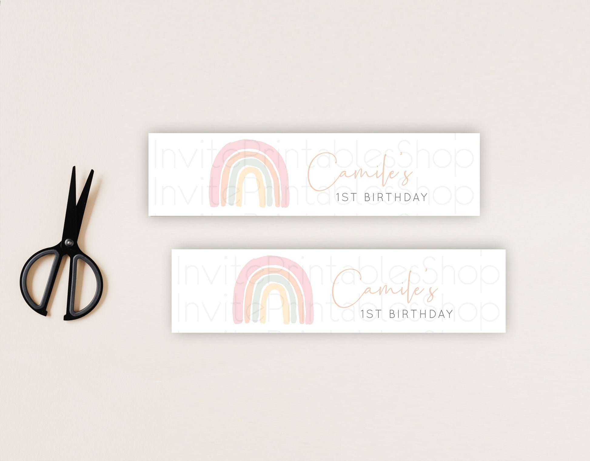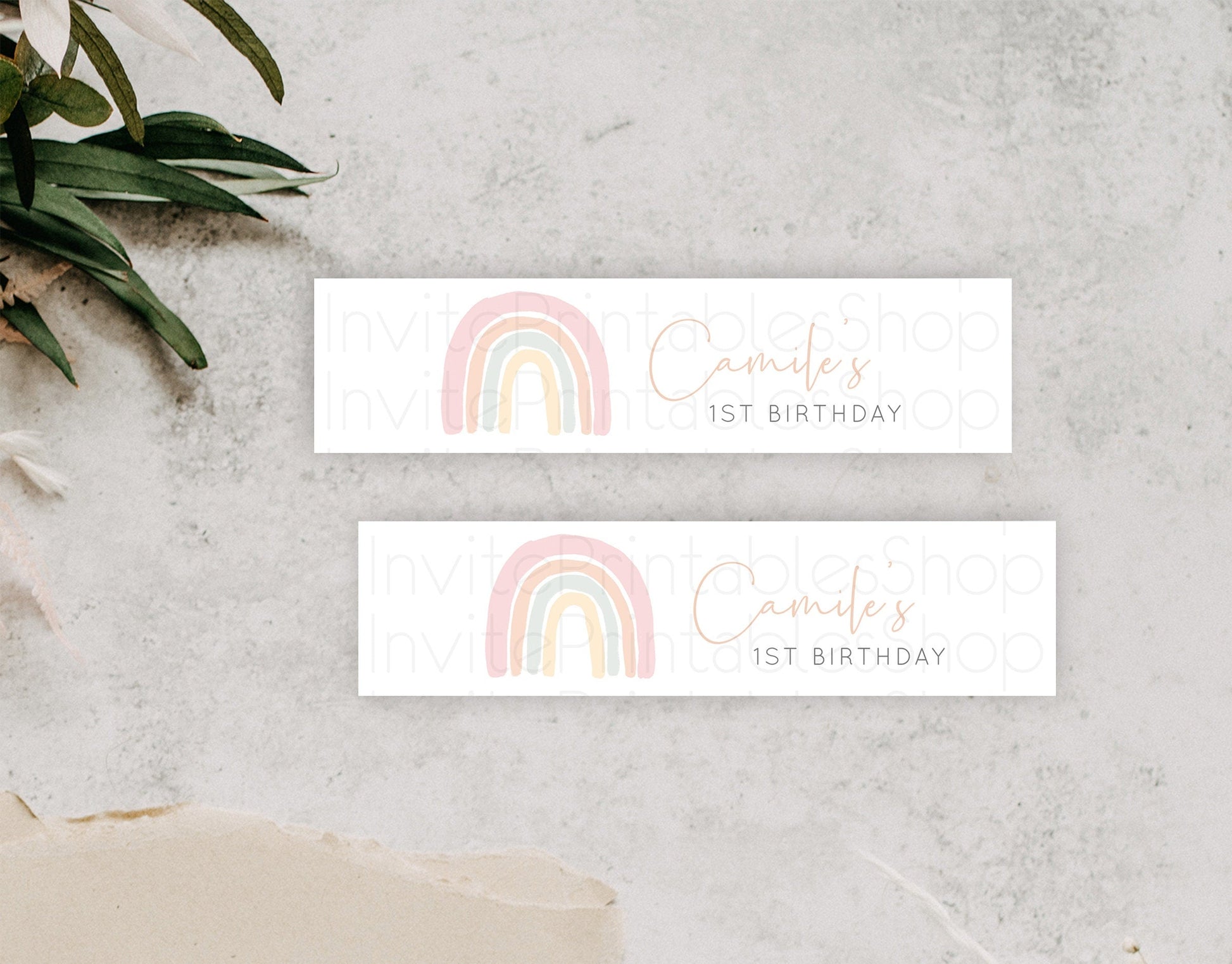 Pastel Rainbow Water Label Template Boho Colorful Rainbow Party Decor Rainbow Baby Theme 1st Birthday Baptism Baby Shower Wedding D10162