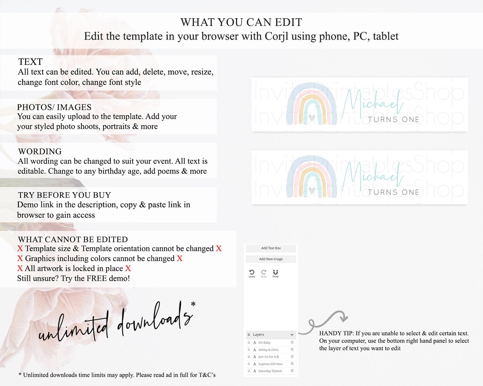 Pastel Rainbow Water Label Template Boho Colorful Rainbow Party Decor Rainbow Baby Theme 1st Birthday Baptism Baby Shower Wedding D10214