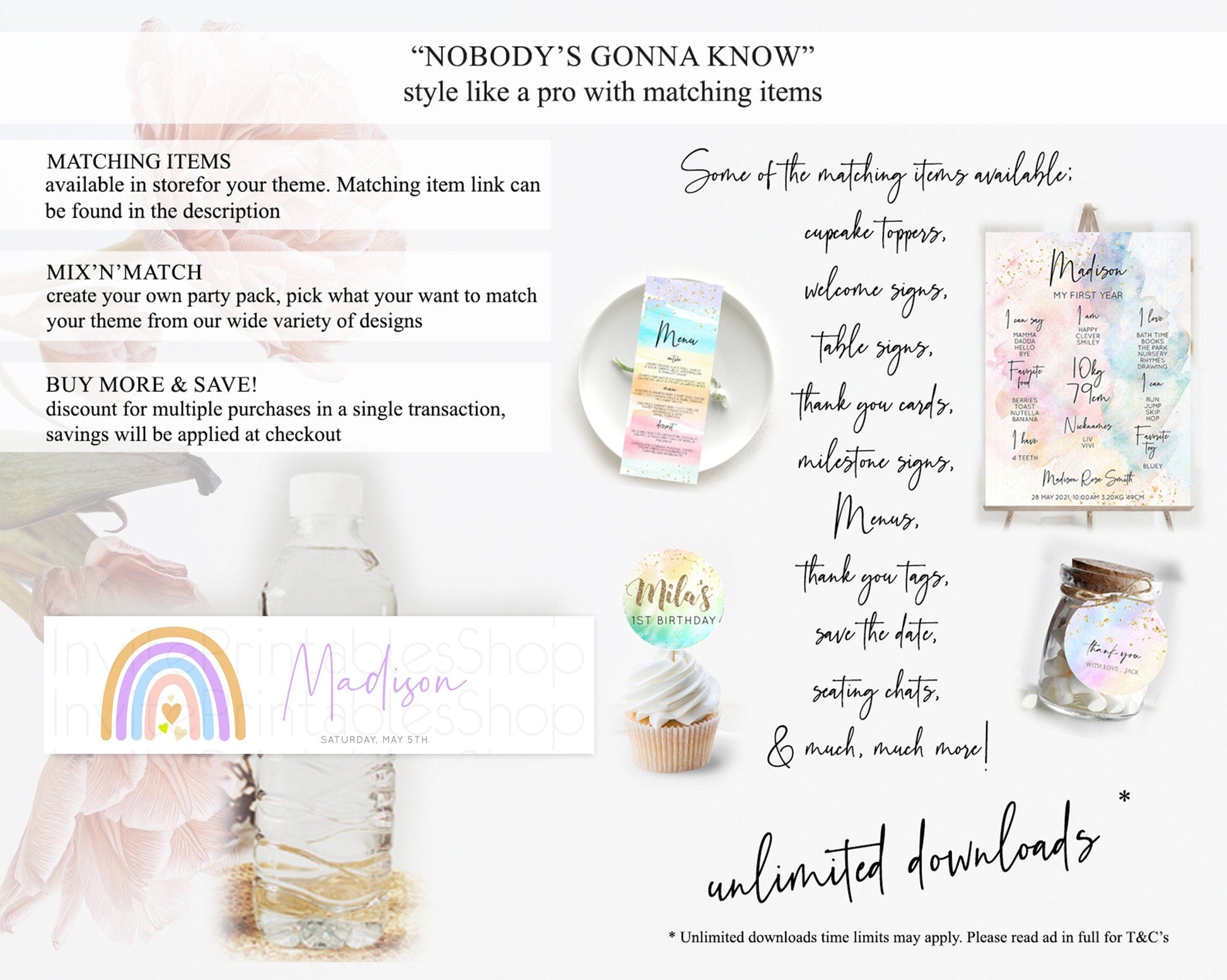 Pastel Rainbow Water Label Template Boho Colorful Rainbow Party Decor Rainbow Baby Theme 1st Birthday Baptism Baby Shower Wedding D10238