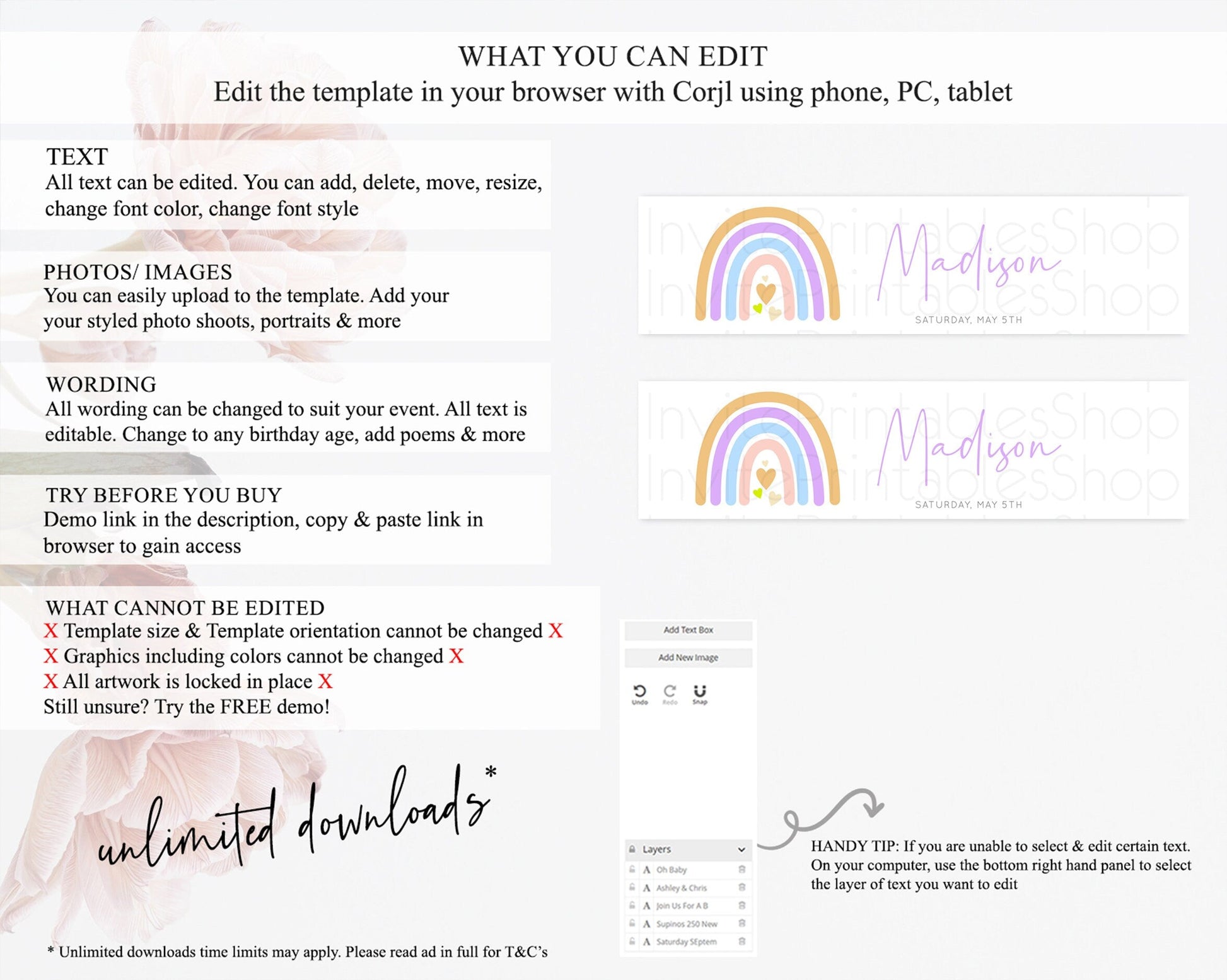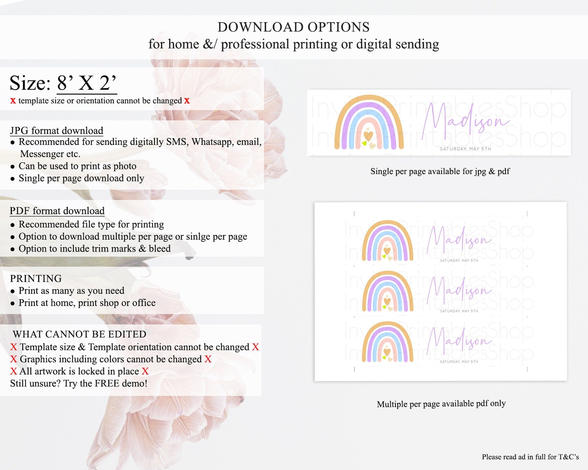 • Template size & orientation cannot be changed. Please use the demo link to confirm this product suits your needs.