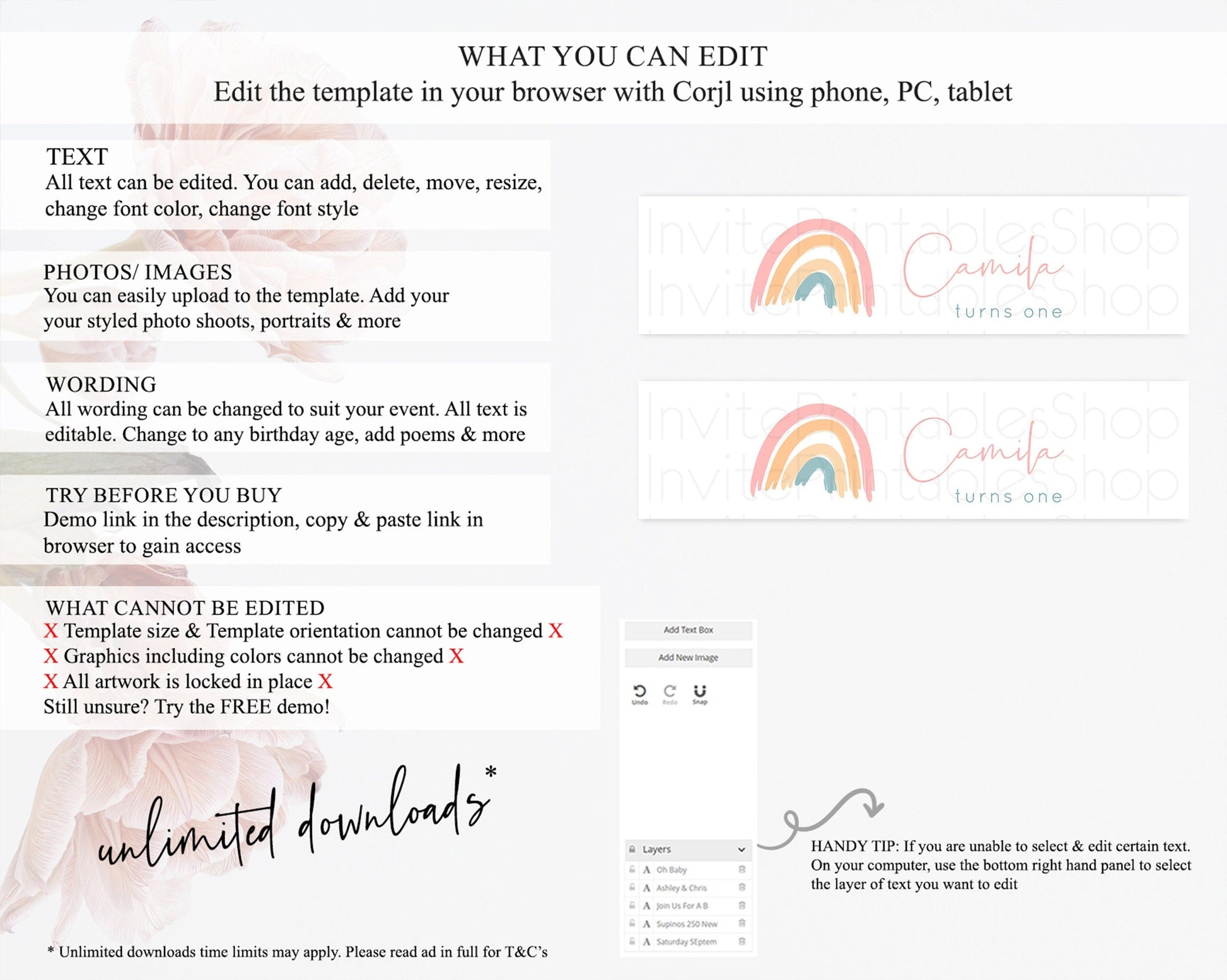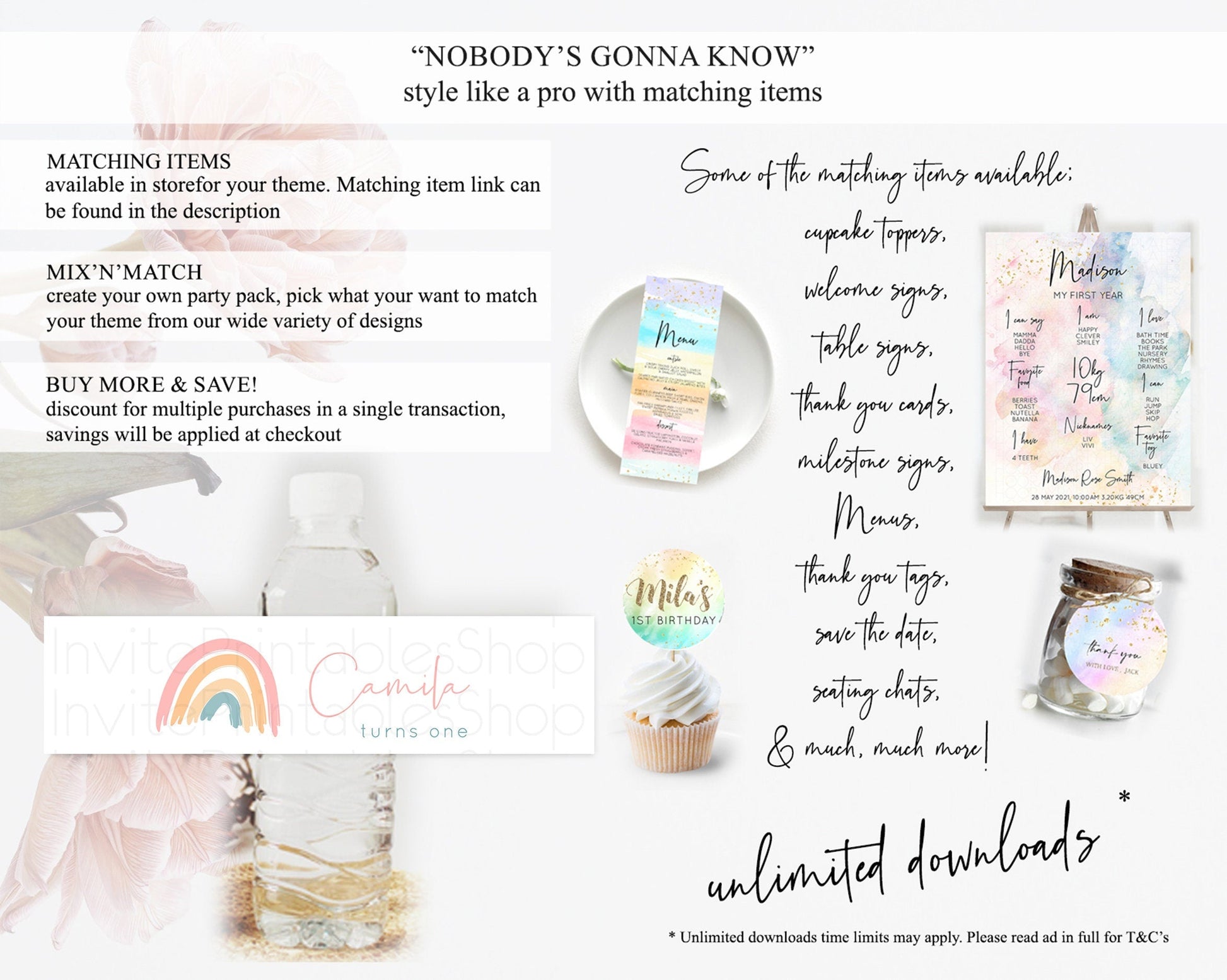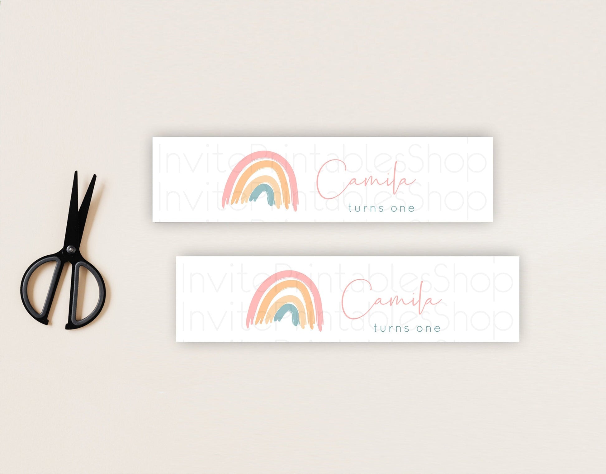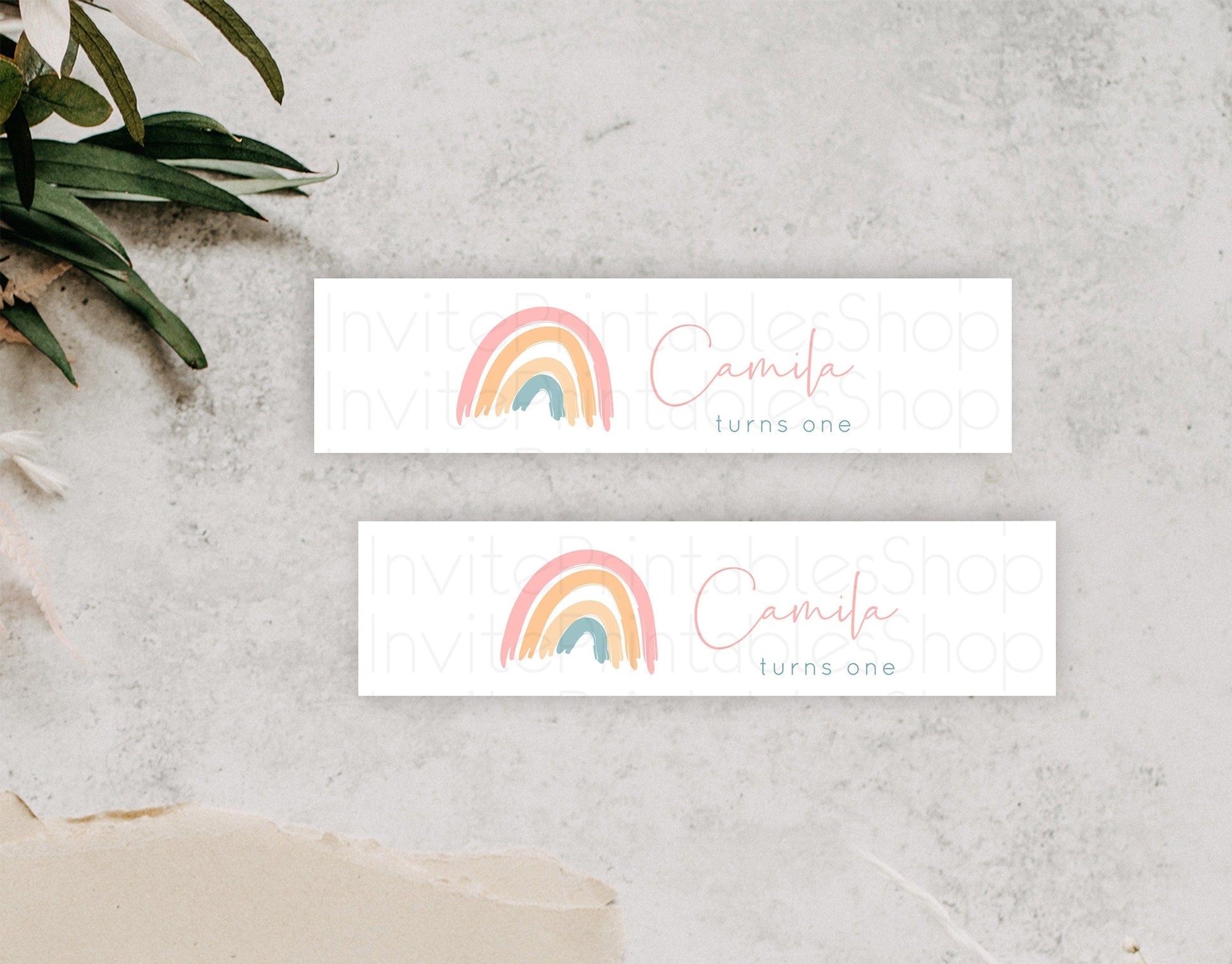 Pastel Rainbow Water Label Template Boho Colorful Rainbow Party Decor Rainbow Baby Theme 1st Birthday Baptism Baby Shower Wedding D10351