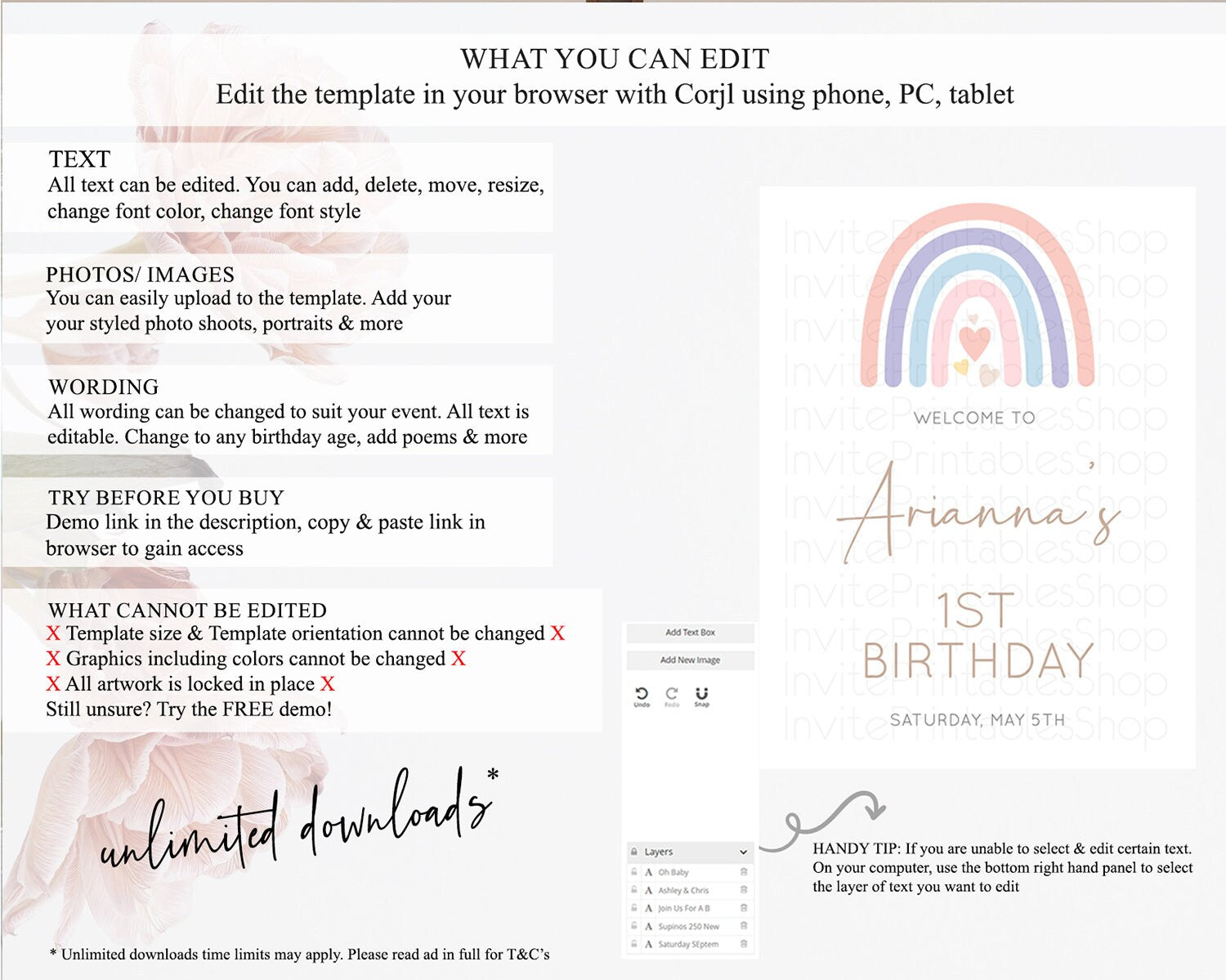 • After purchase, Corjl emails your editing link. Allow up to 15 minutes for delivery.